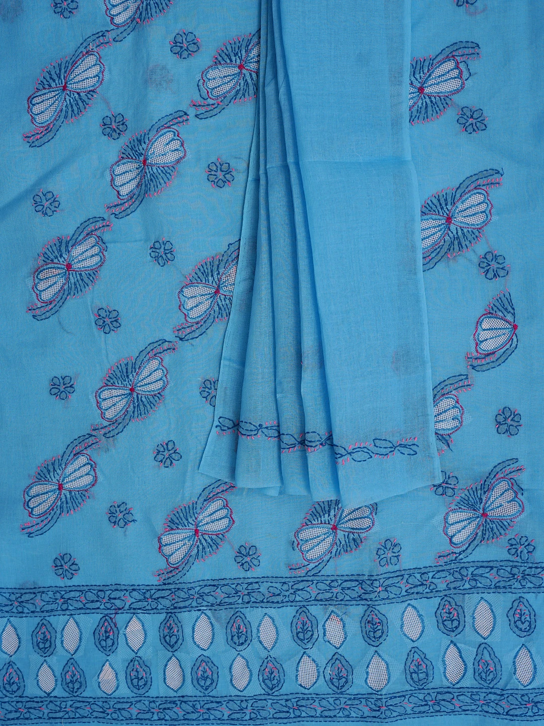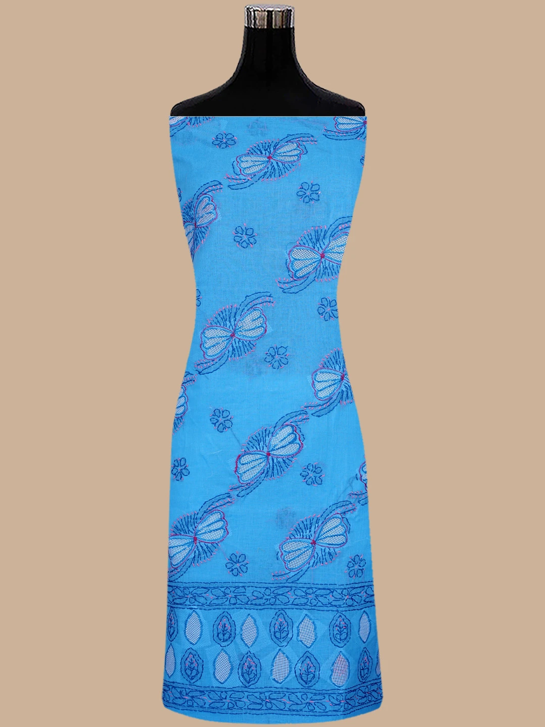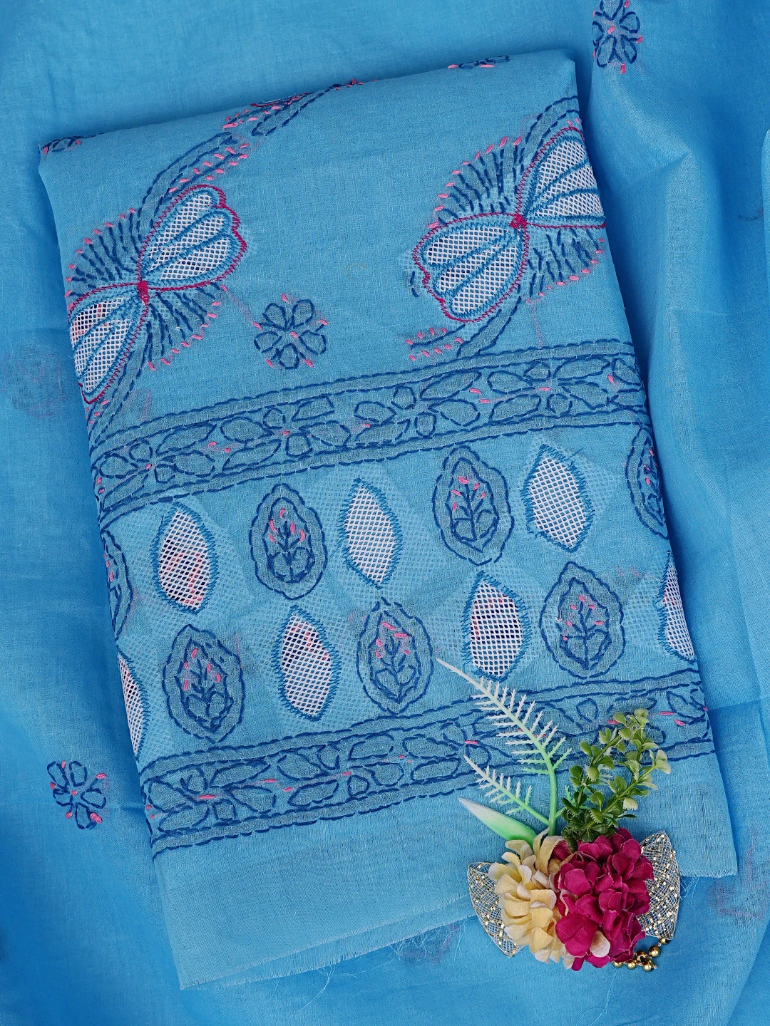 Ada Hand Embroidered Aero Blue Cotton Lucknowi Chikankari Unstitched Suit Piece 01A853538