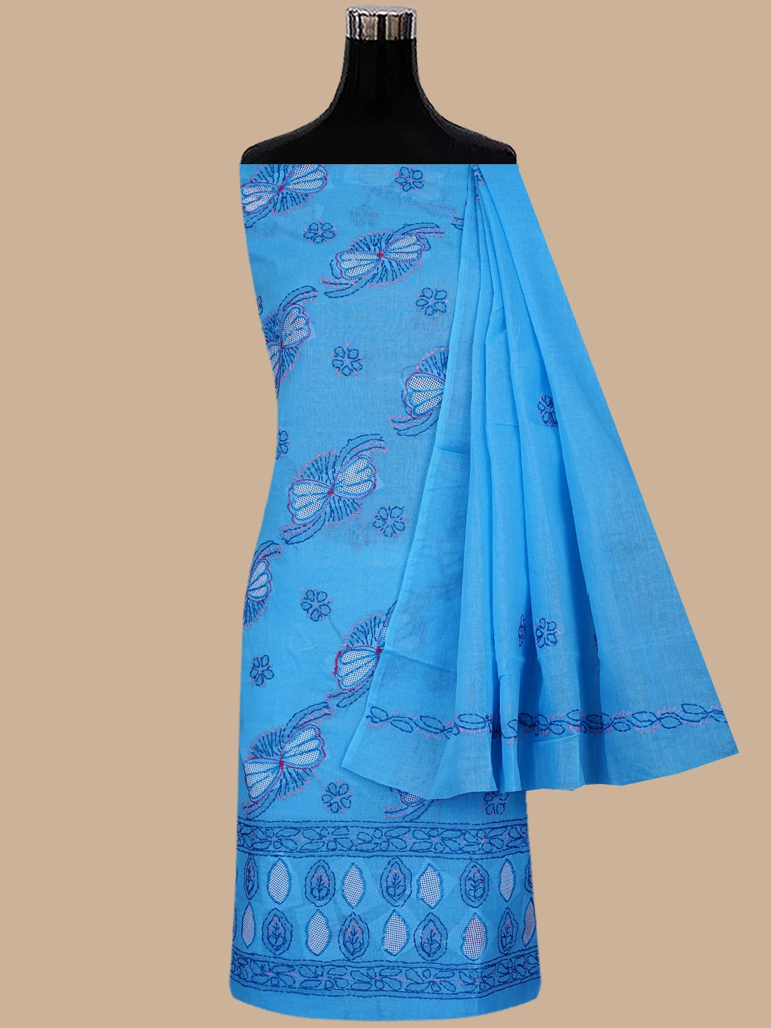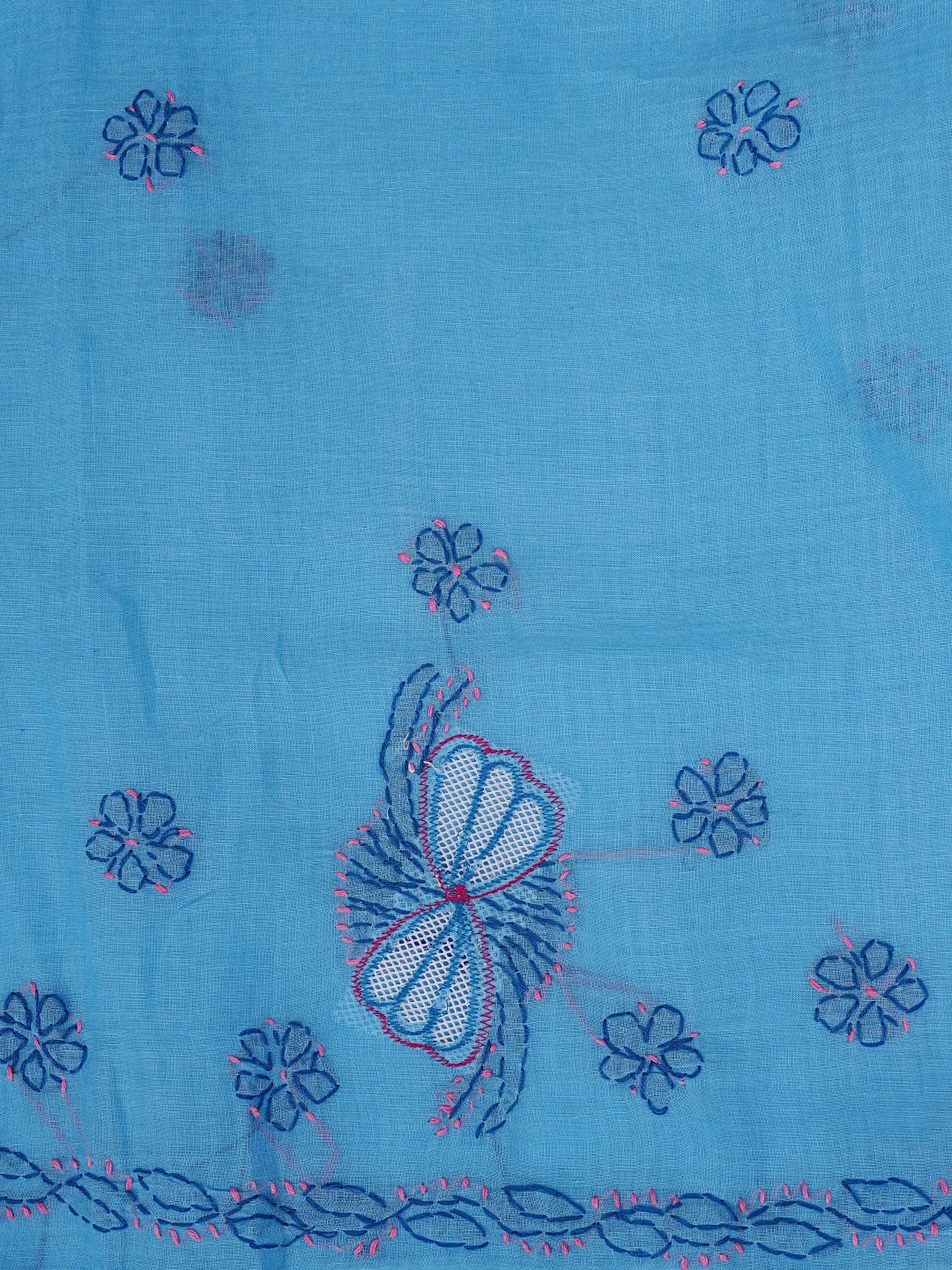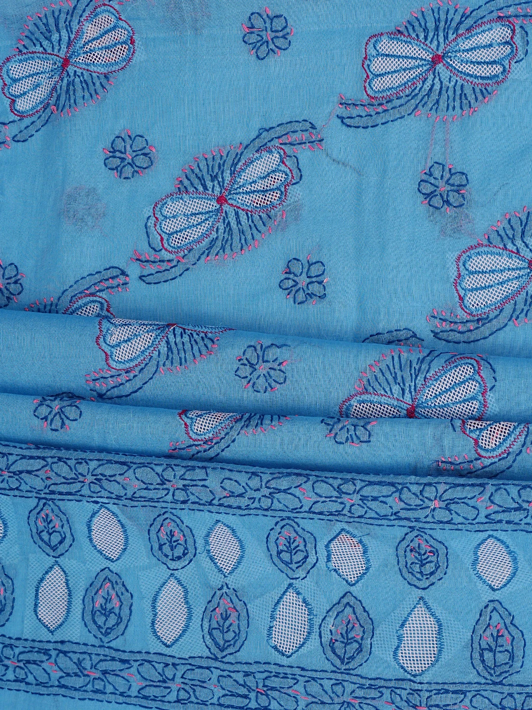 Ada Hand Embroidered Aero Blue Cotton Lucknowi Chikankari Unstitched Suit Piece 01A853538