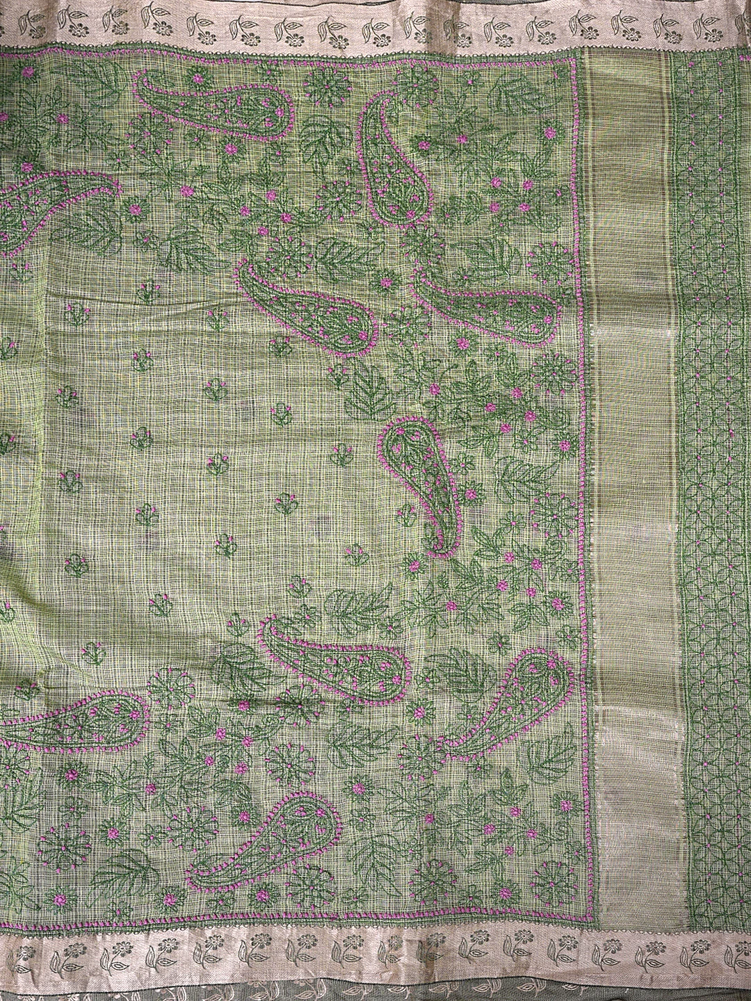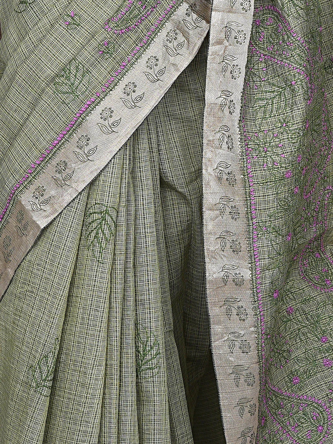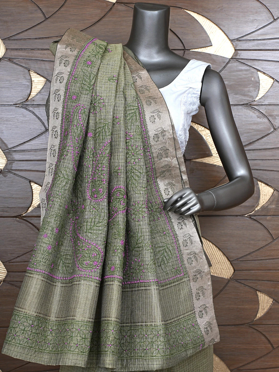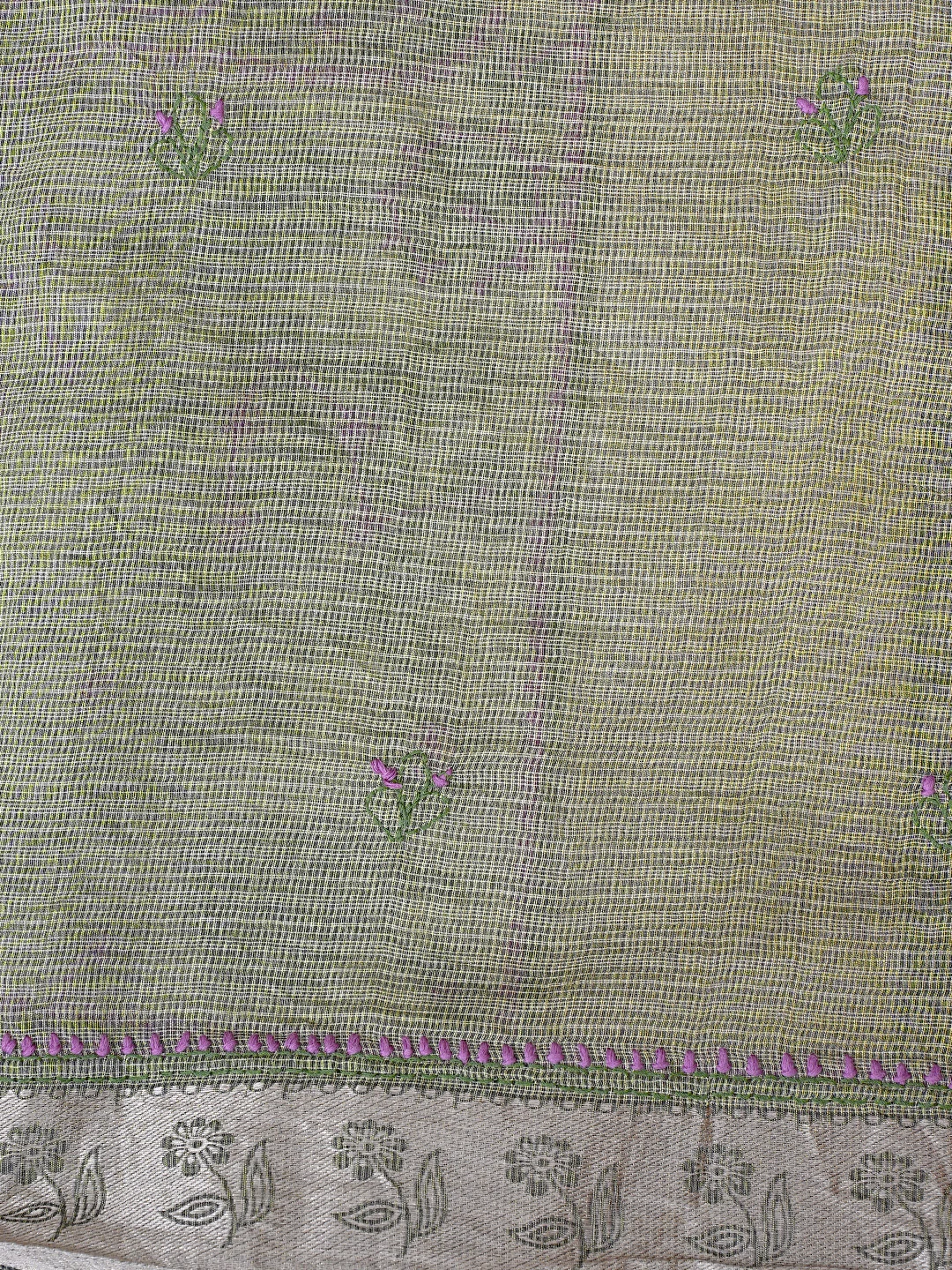 Ada Hand Embroidered Army Green Chanderi Lucknowi Chikankari Saree With Blouse 01A884515
