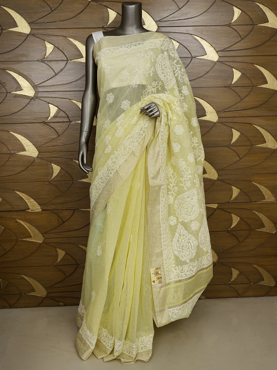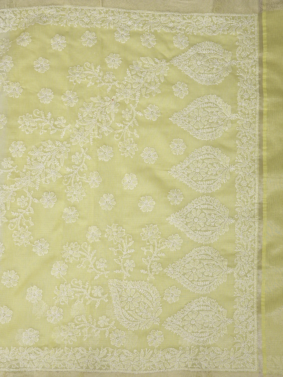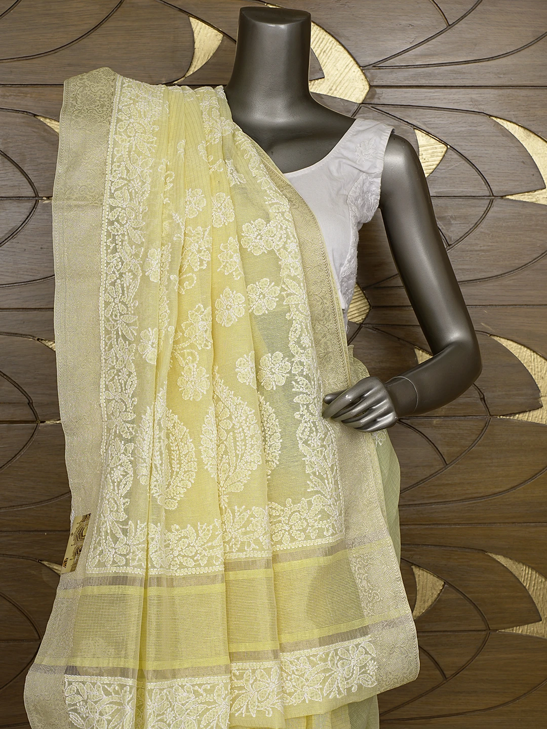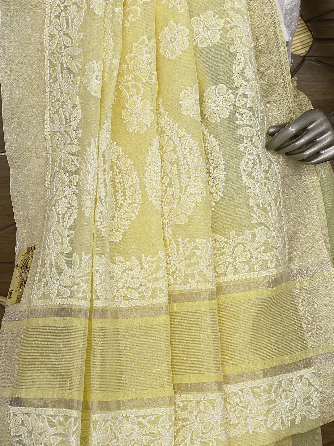 Ada Hand Embroidered Arylide Yellow Chanderi Lucknowi Chikankari Saree With Blouse 01A876342