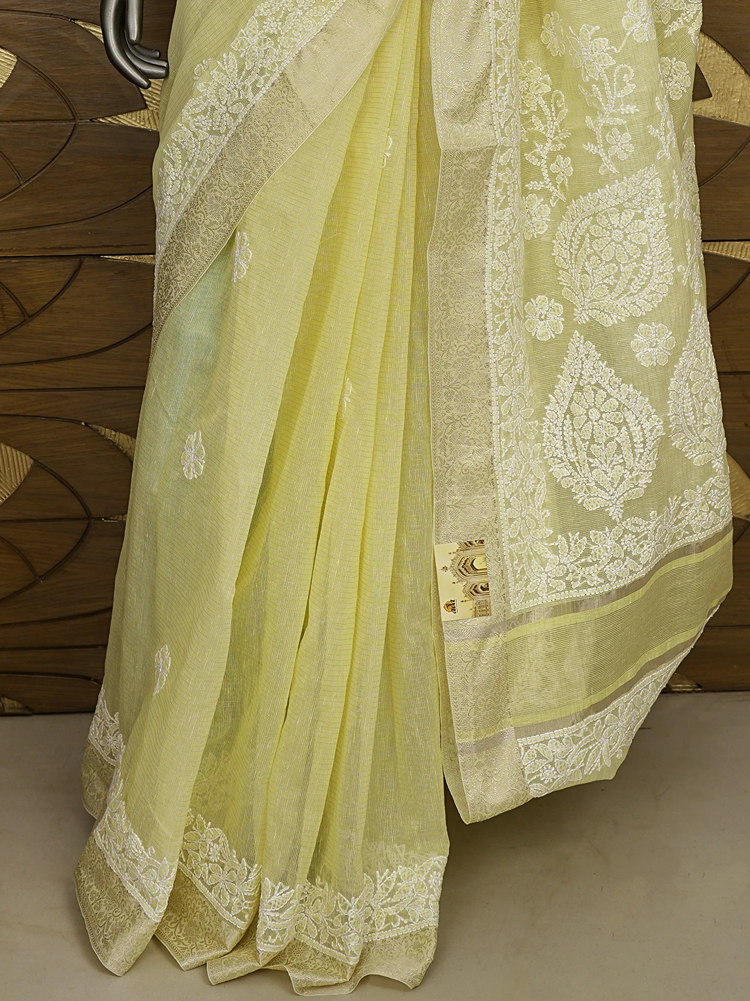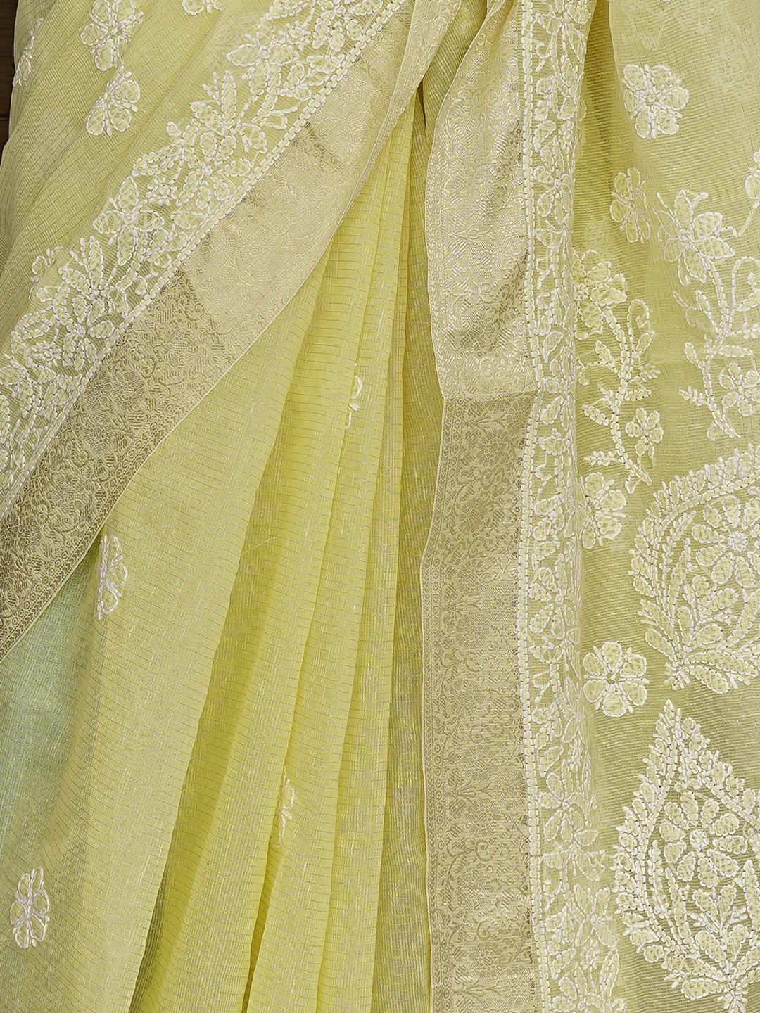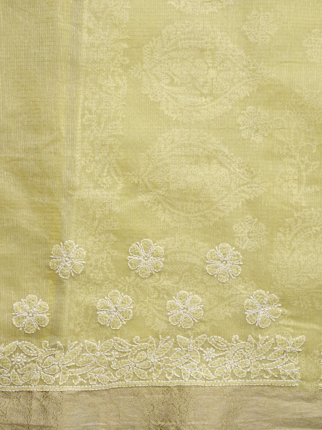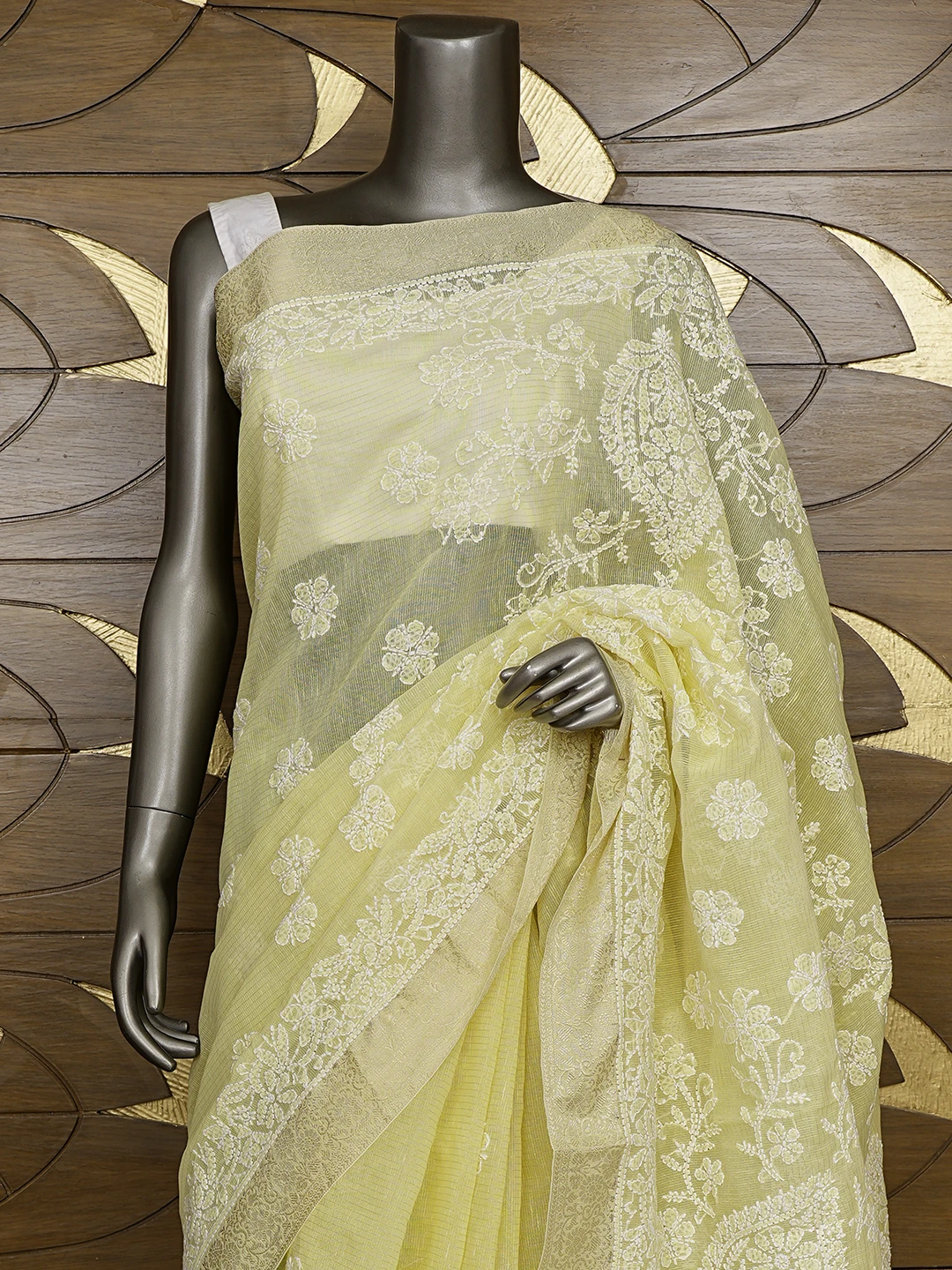 Ada Hand Embroidered Arylide Yellow Chanderi Lucknowi Chikankari Saree With Blouse 01A876342