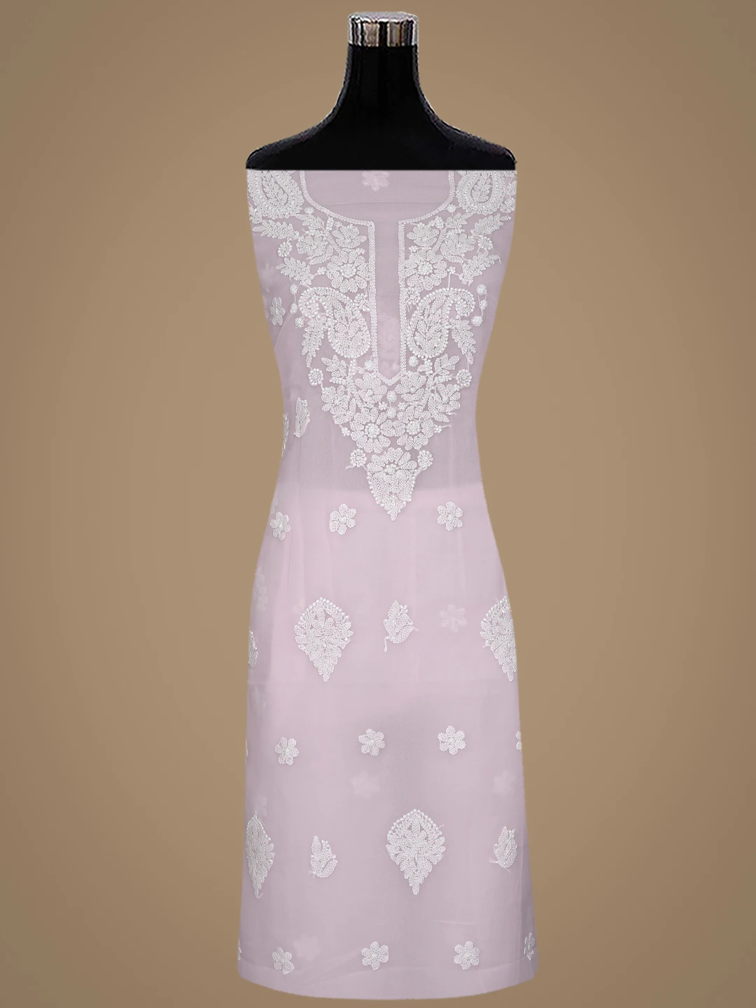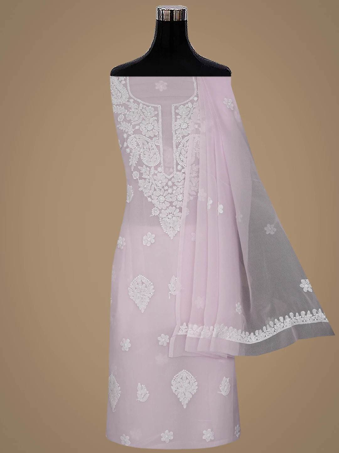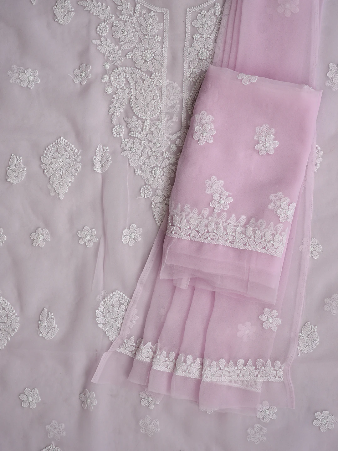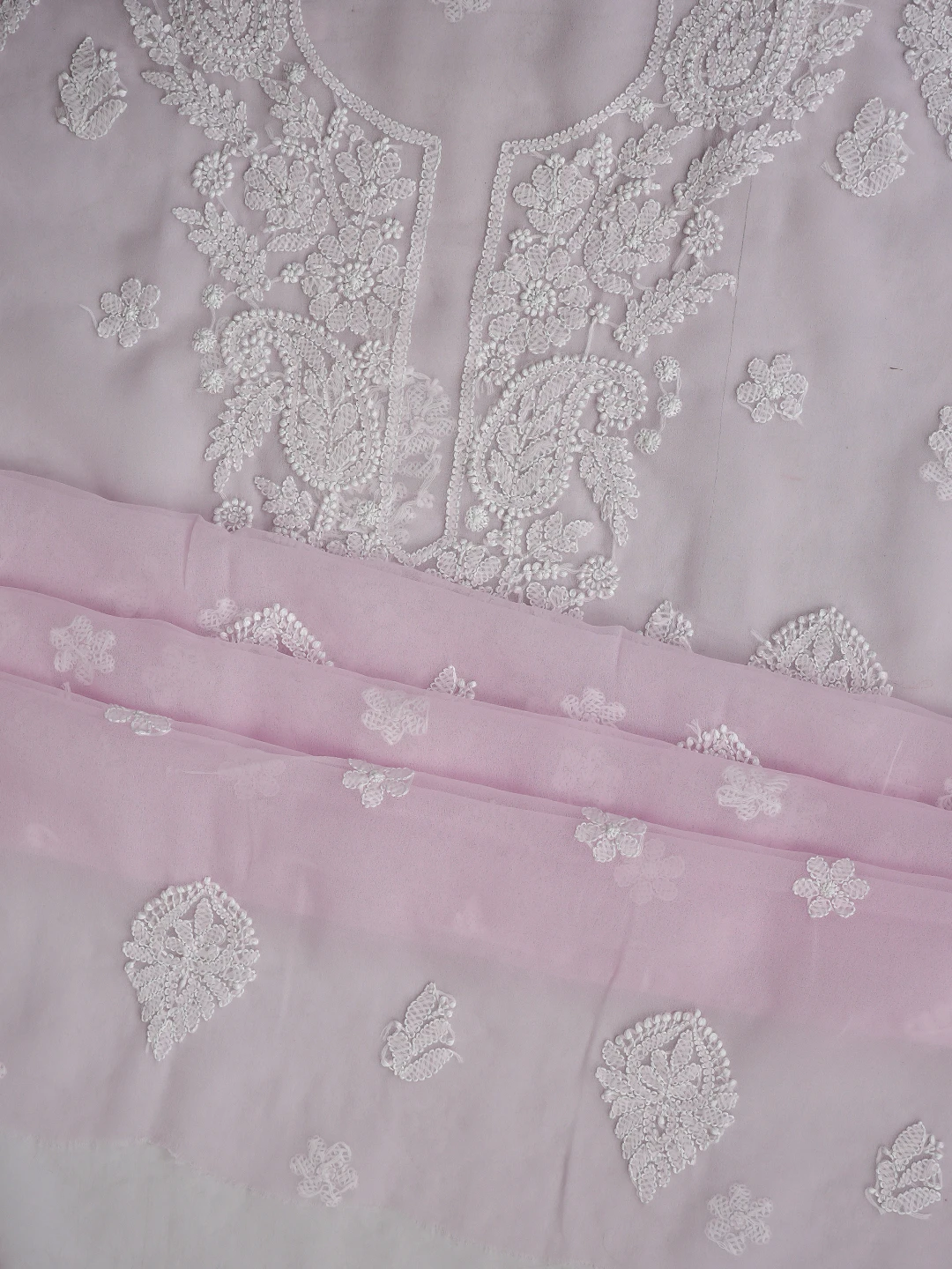 Ada Hand Embroidered Baby Pink Georgette Lucknowi Chikankari Unstitched Suit Piece 01A867424