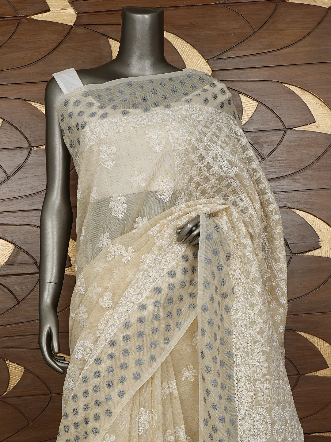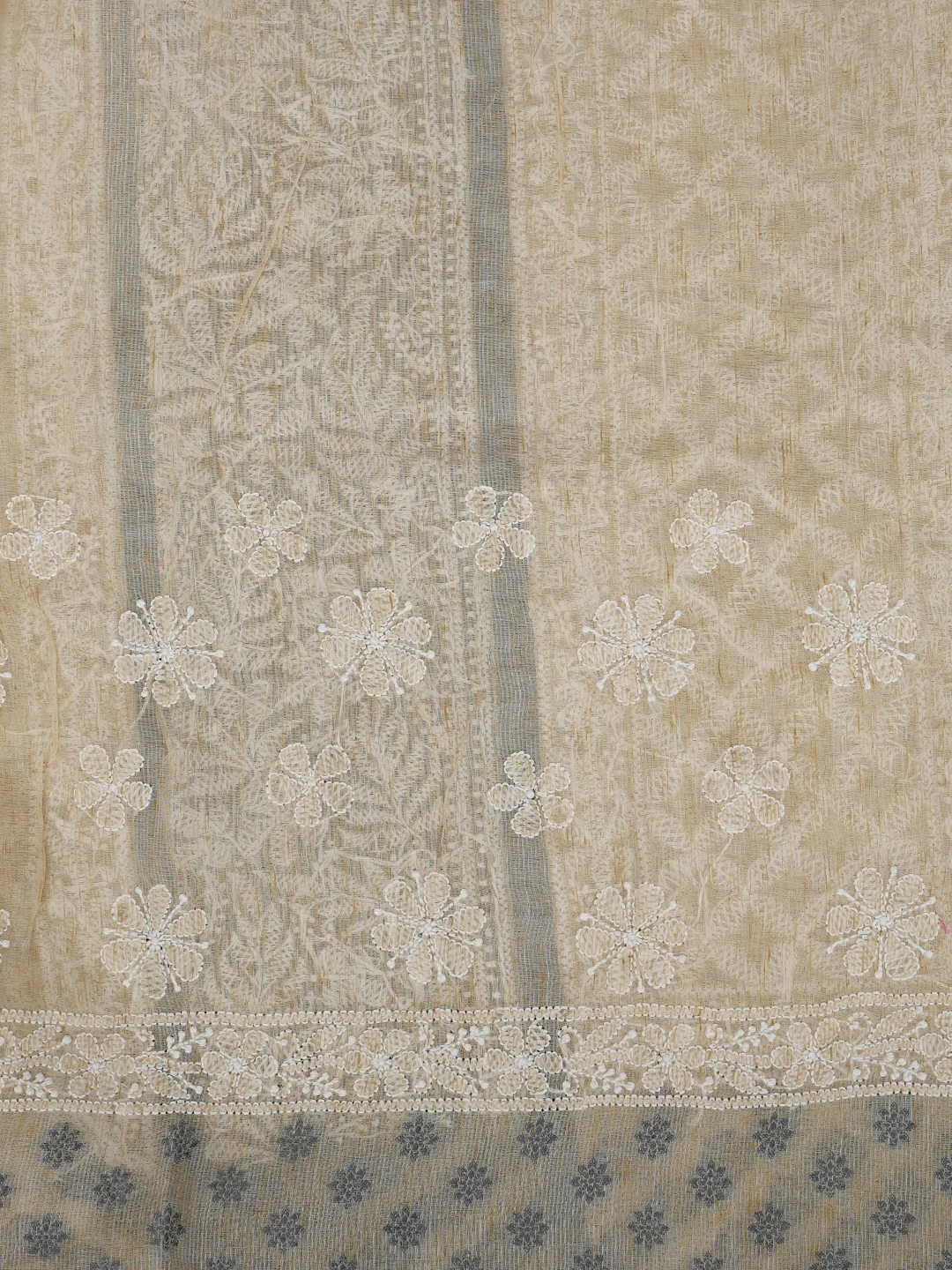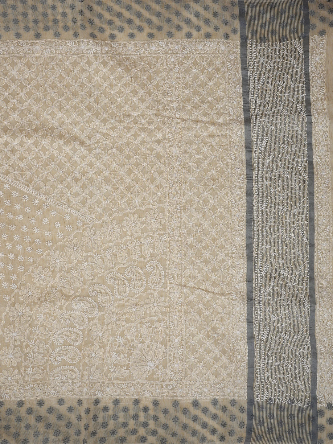 Ada Hand Embroidered Beige Chanderi Lucknowi Chikankari Saree With Blouse 01A879561