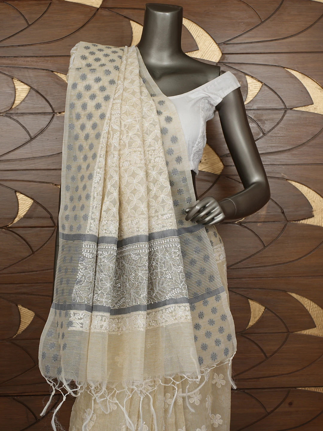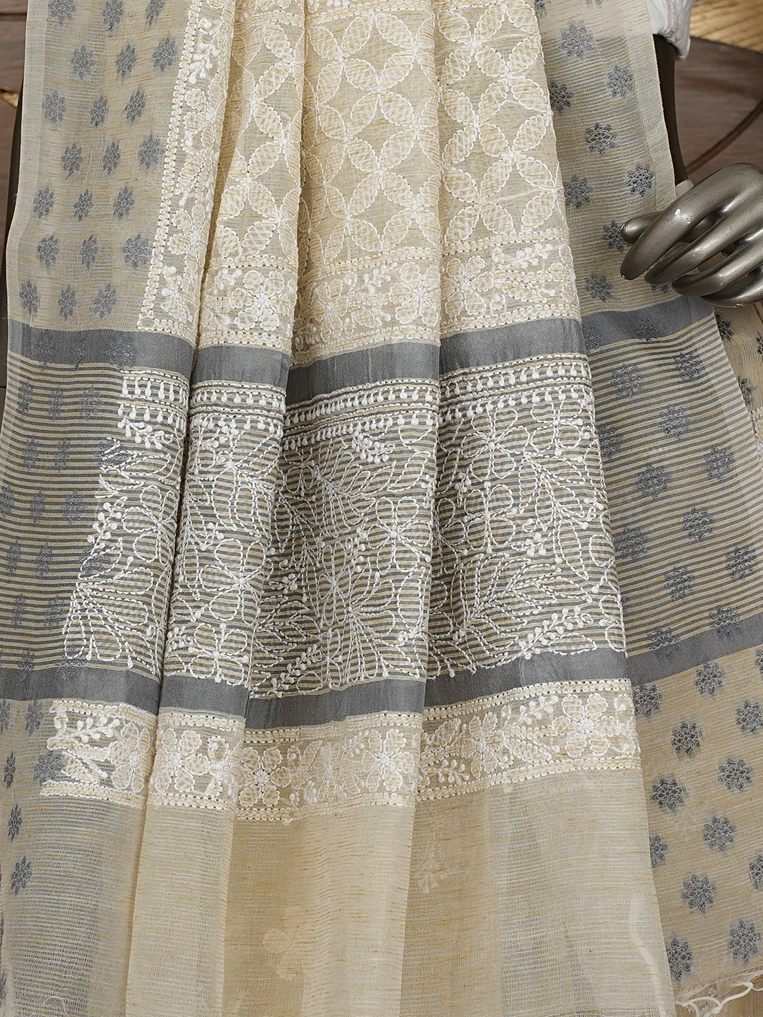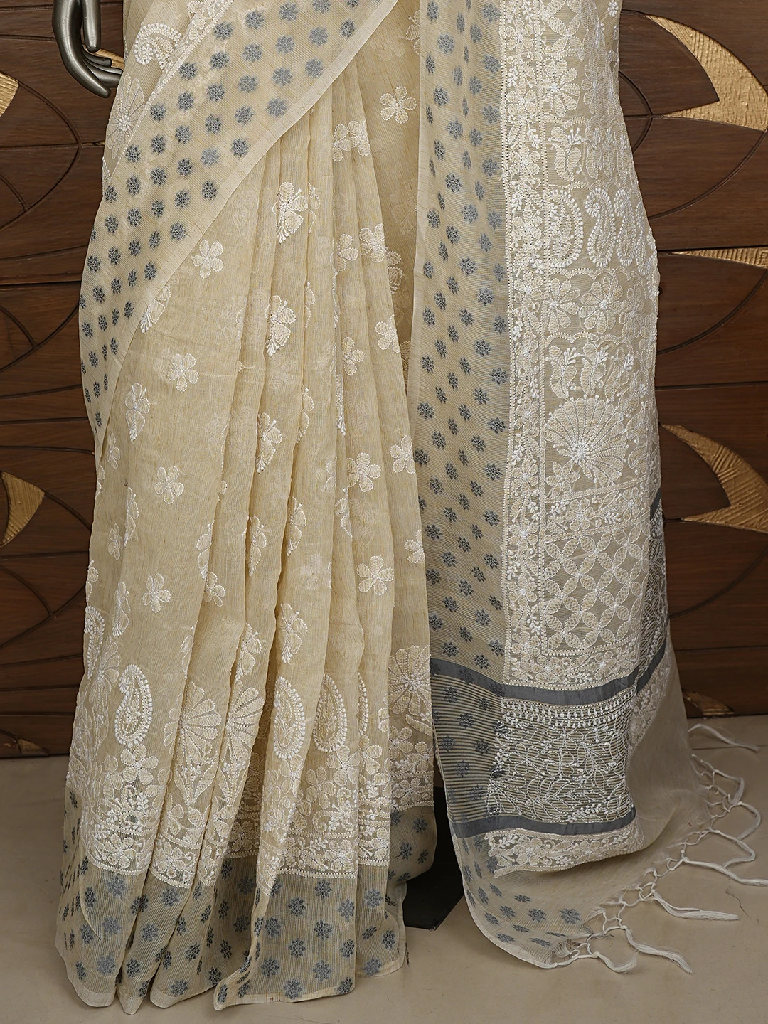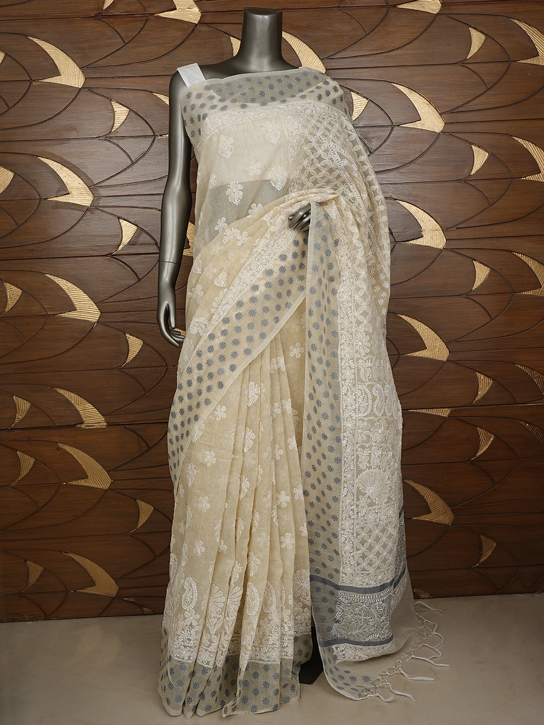 Ada Hand Embroidered Beige Chanderi Lucknowi Chikankari Saree With Blouse 01A879561
