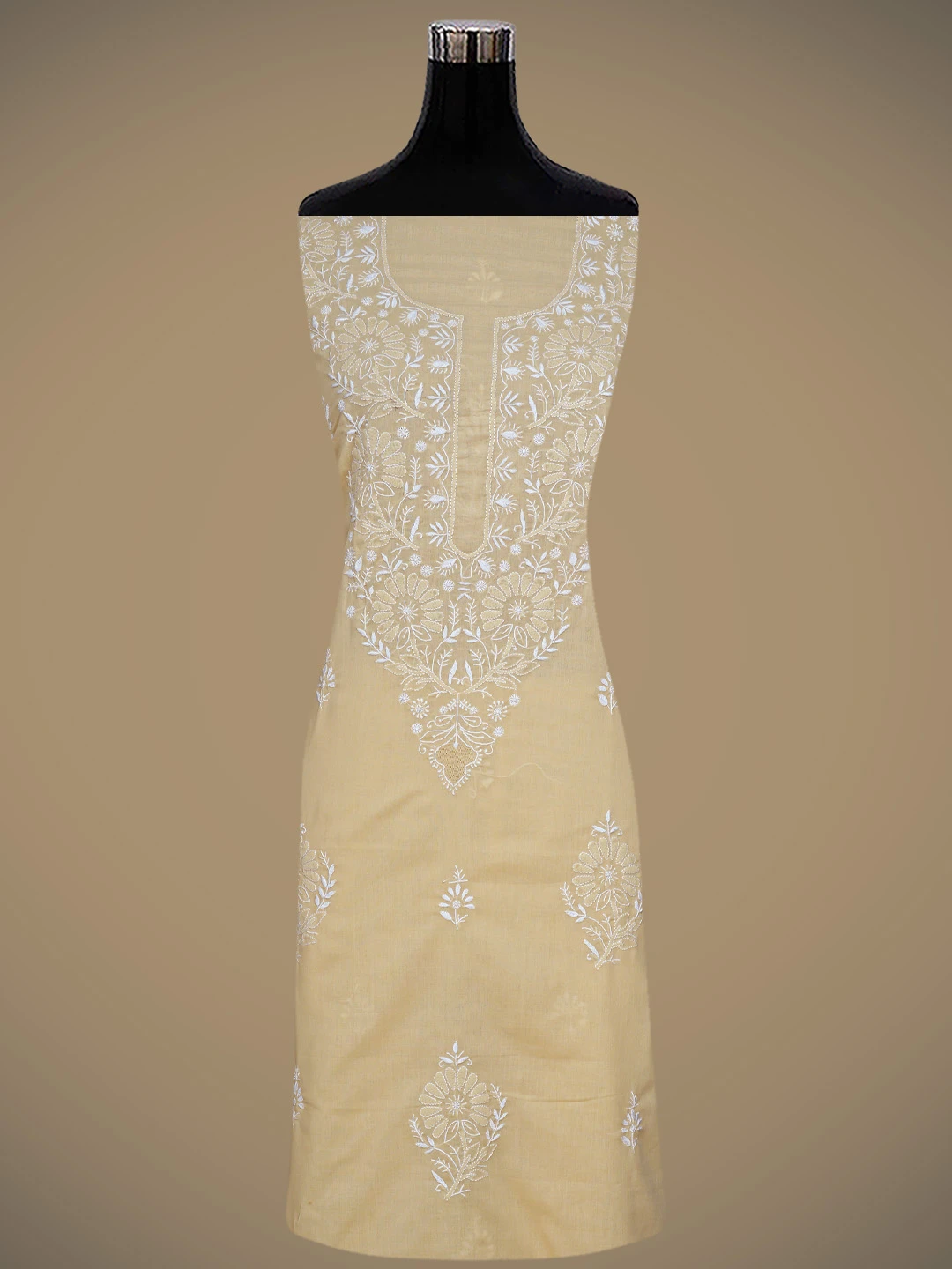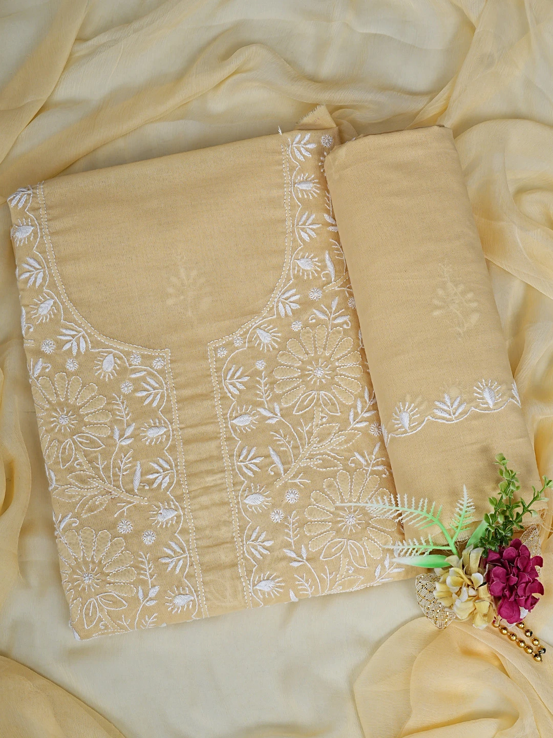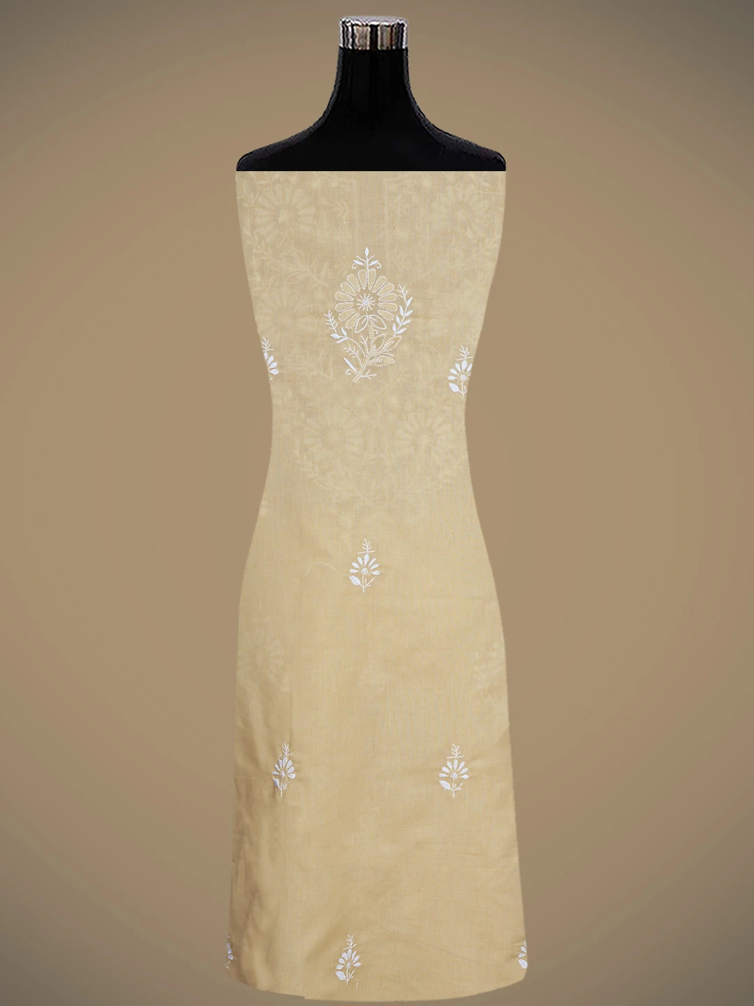 Ada Hand Embroidered Beige Cotton Lucknowi Chikankari Unstitched Suit Piece 01A762943