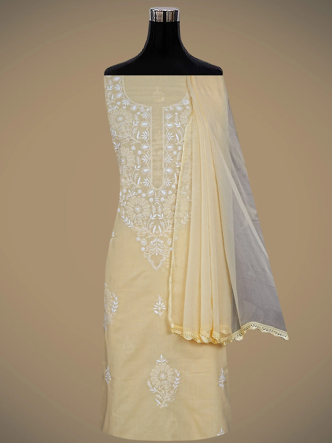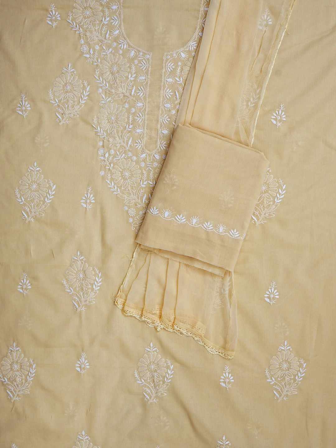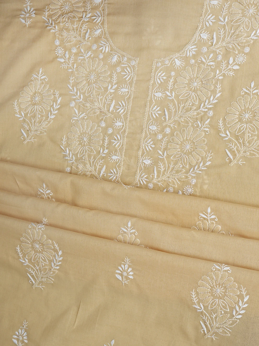 Ada Hand Embroidered Beige Cotton Lucknowi Chikankari Unstitched Suit Piece 01A762943