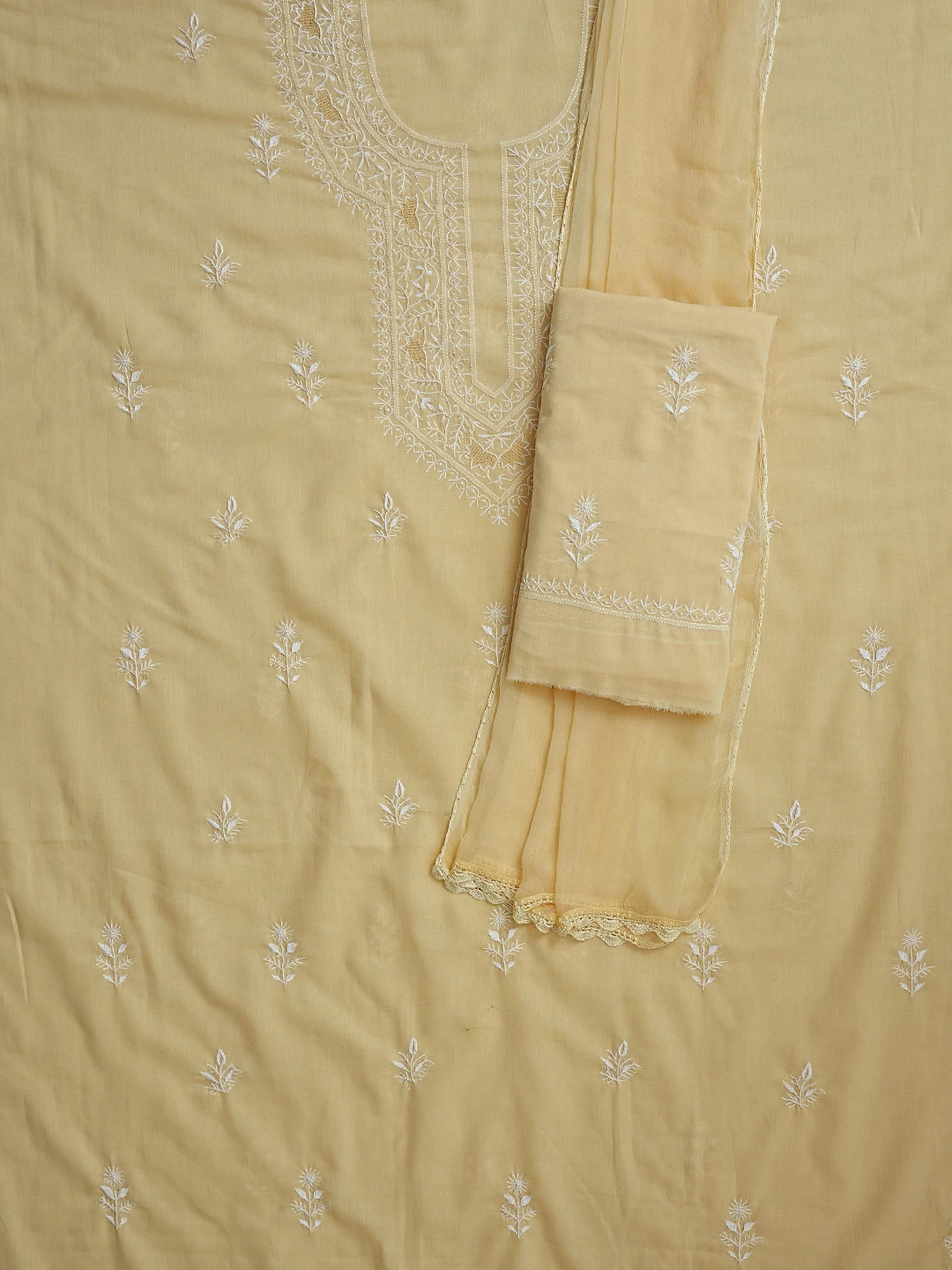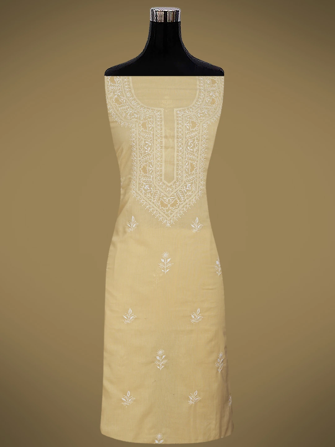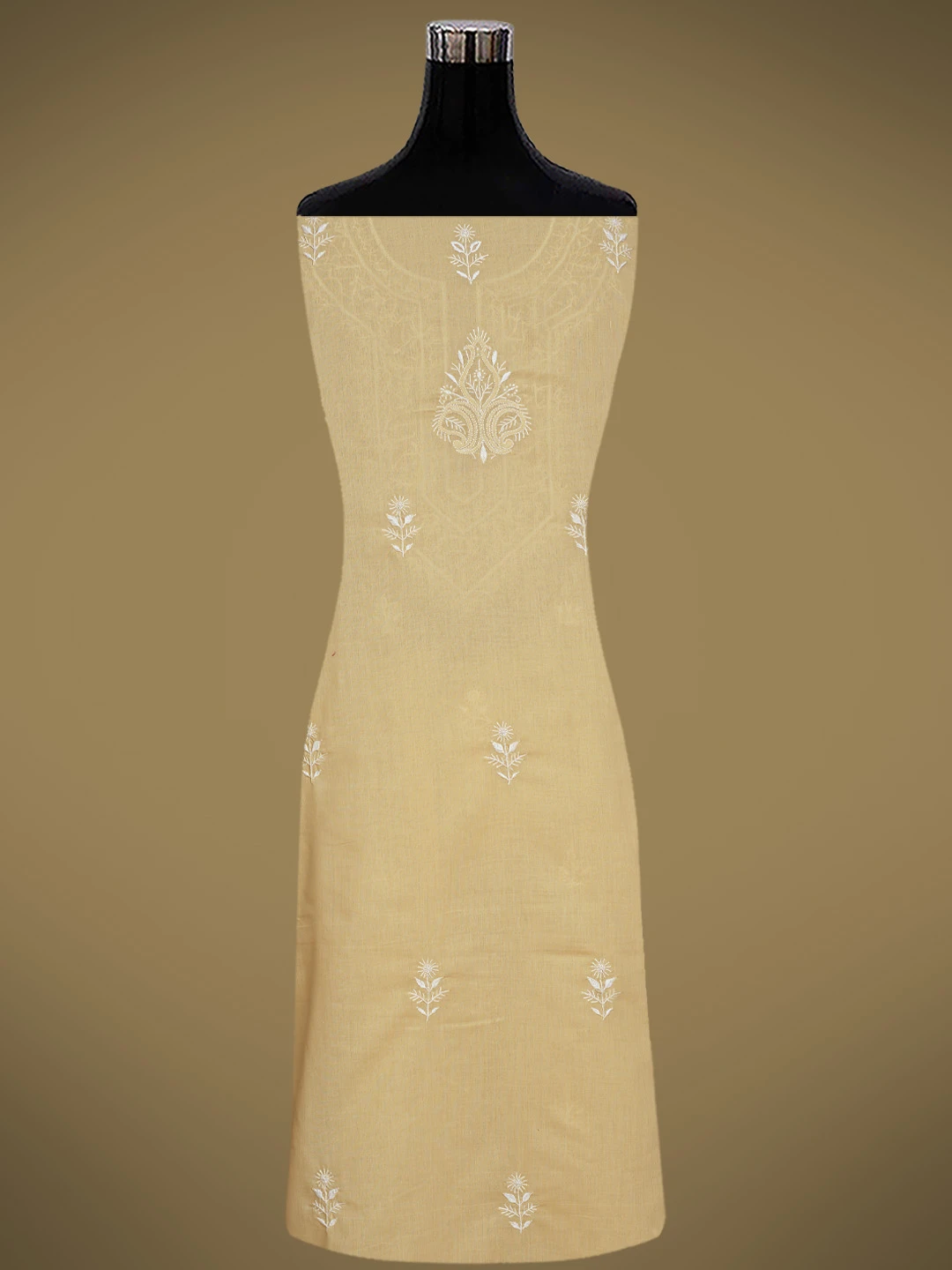 Ada Hand Embroidered Beige Cotton Lucknowi Chikankari Unstitched Suit Piece 01A762991