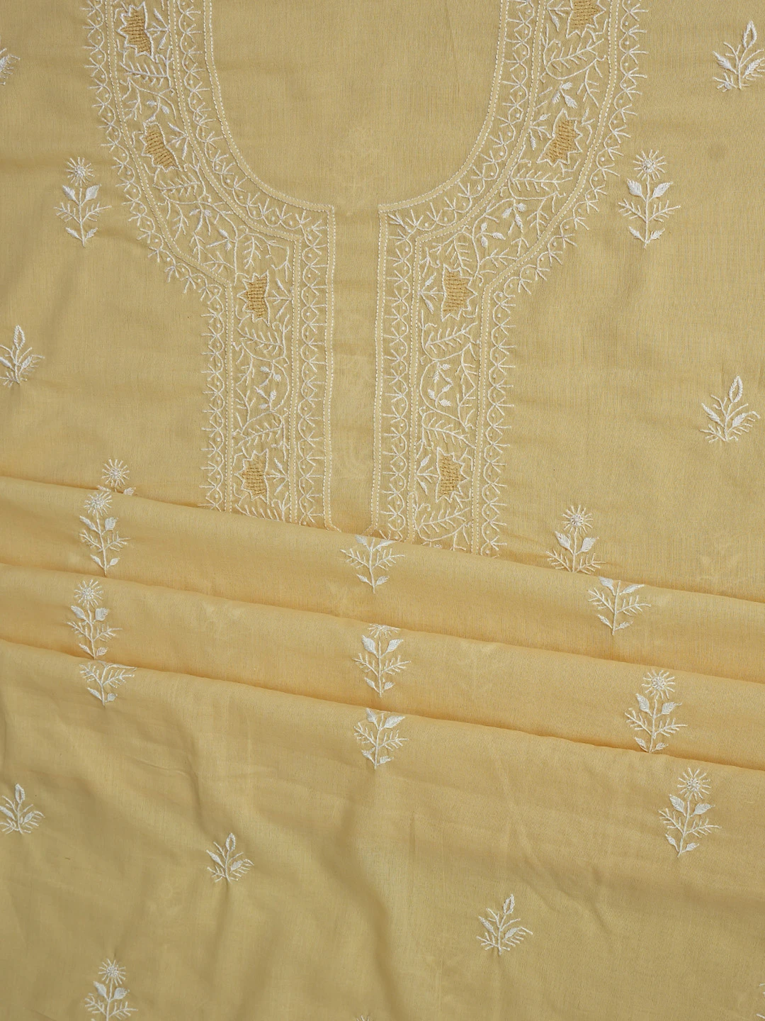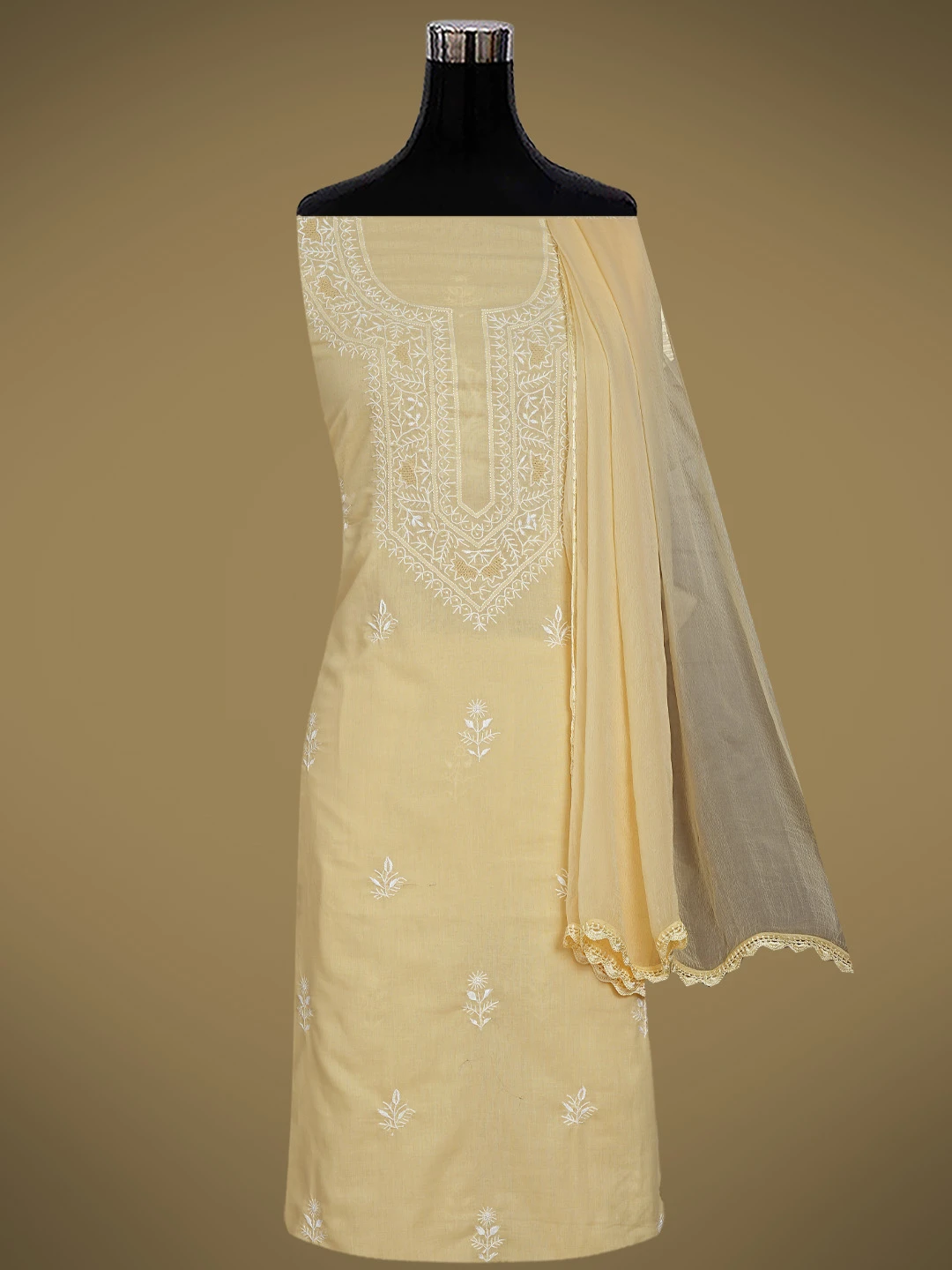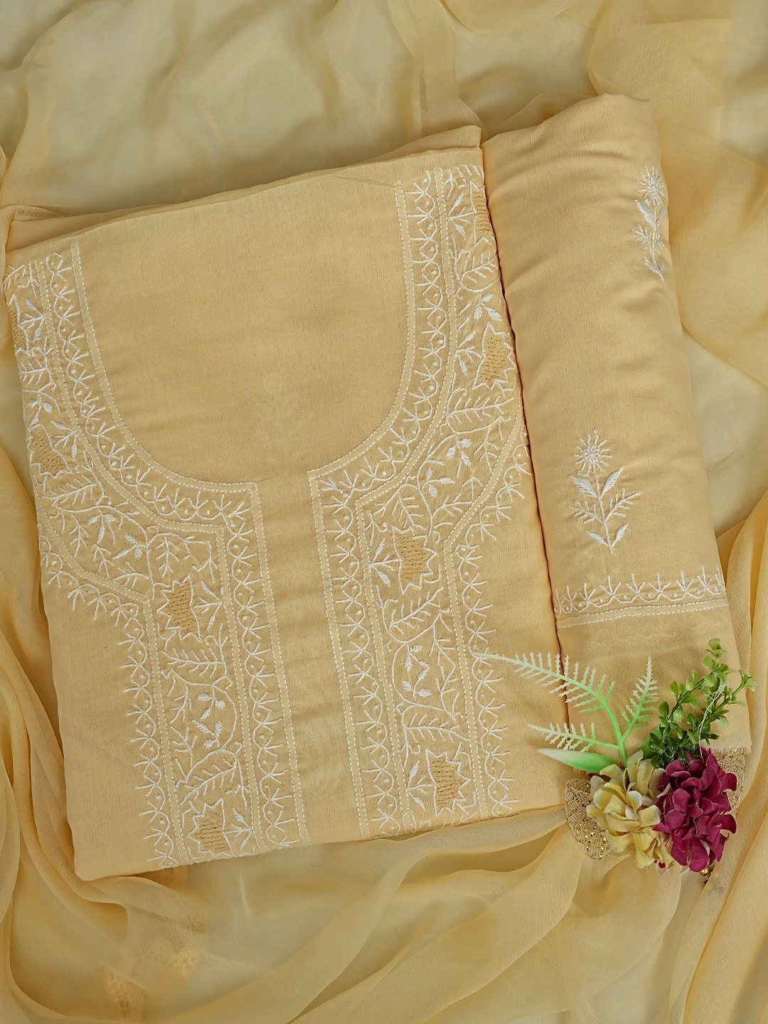 Ada Hand Embroidered Beige Cotton Lucknowi Chikankari Unstitched Suit Piece 01A762991