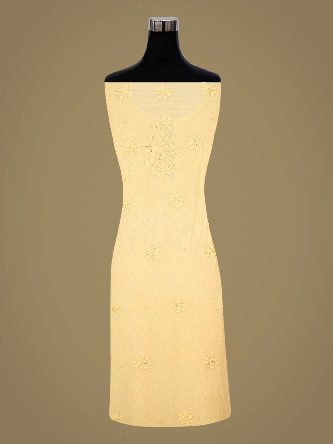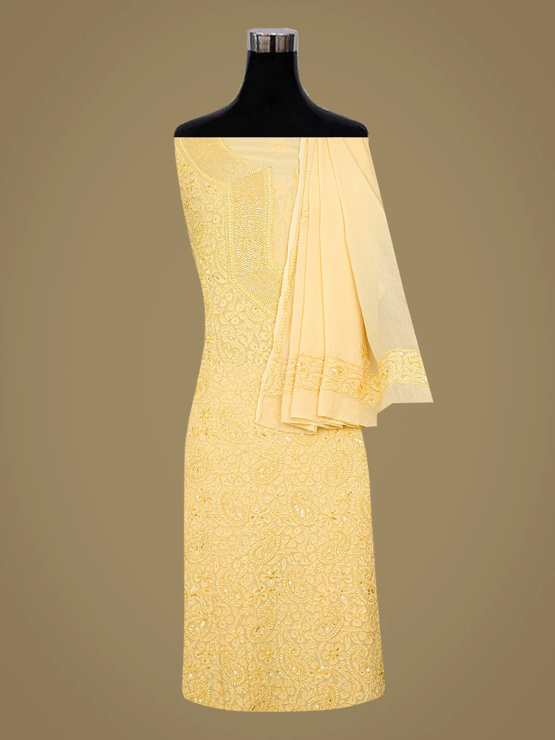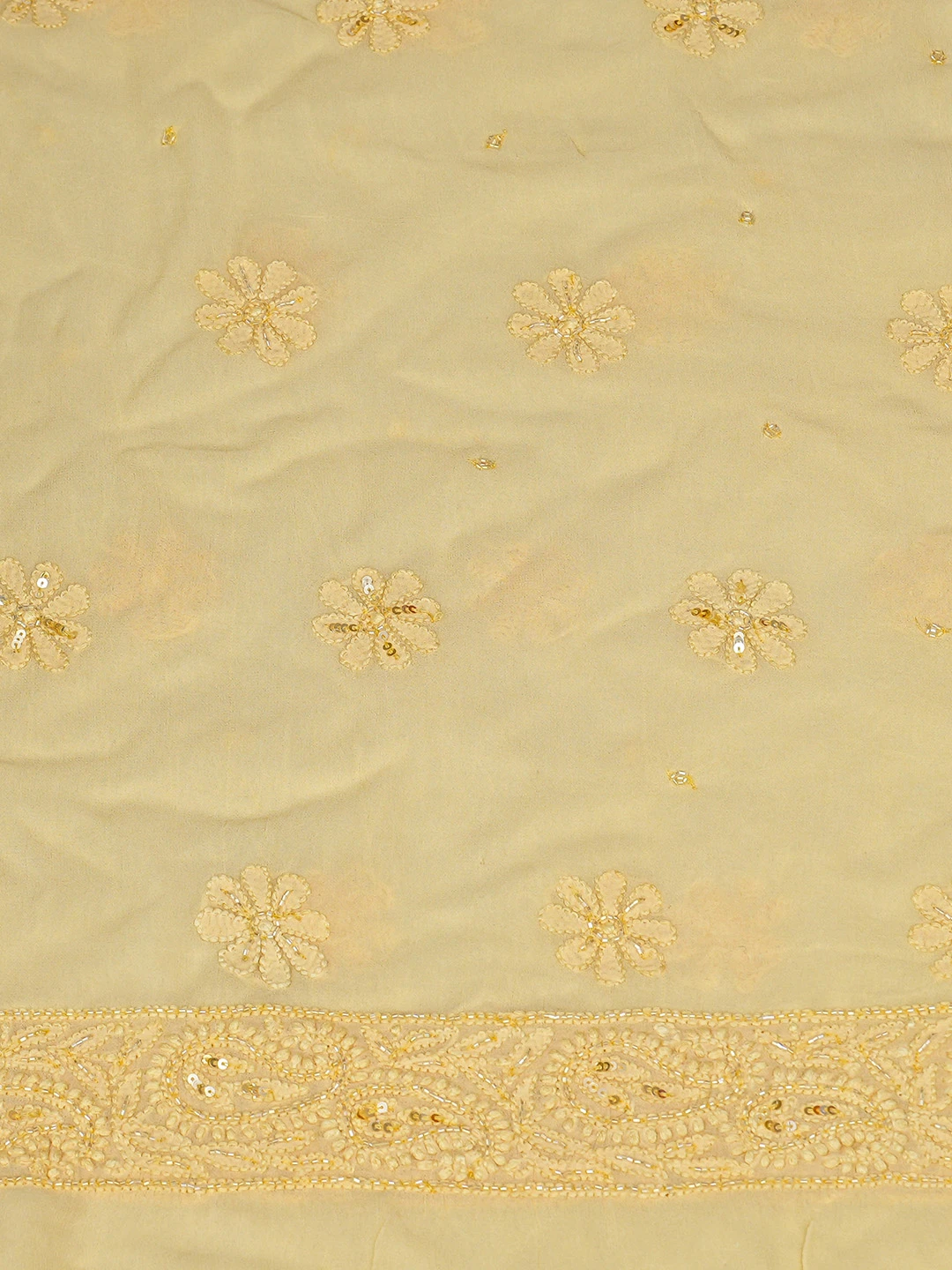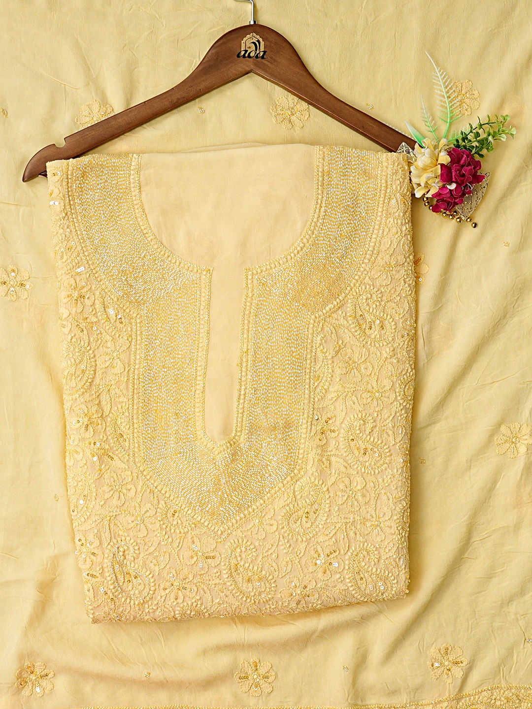 Ada Hand Embroidered Beige Viscose Georgette Lucknowi Chikankari Unstitched Kurta Dupatta Set With Cutdana Work 01A799995