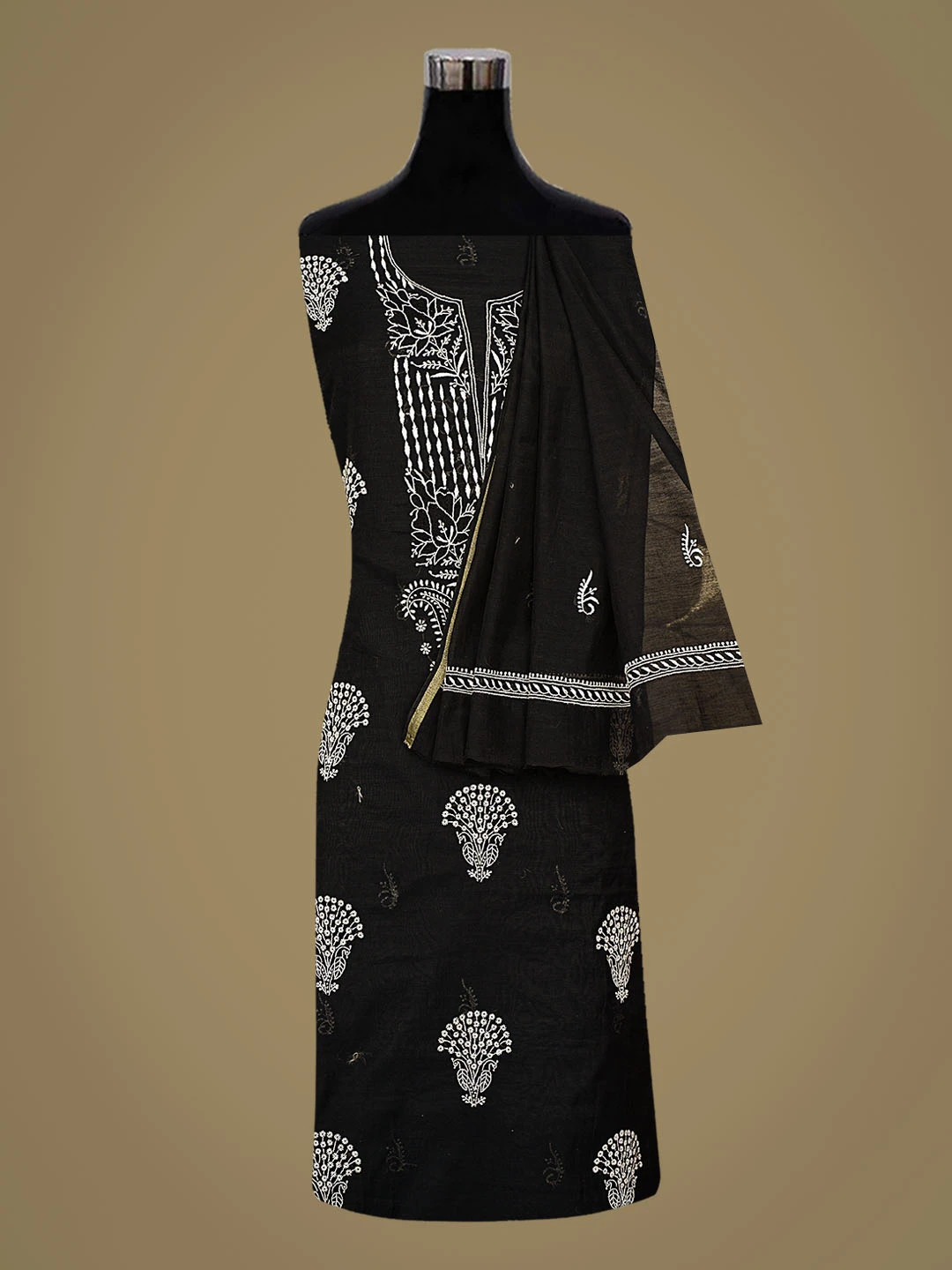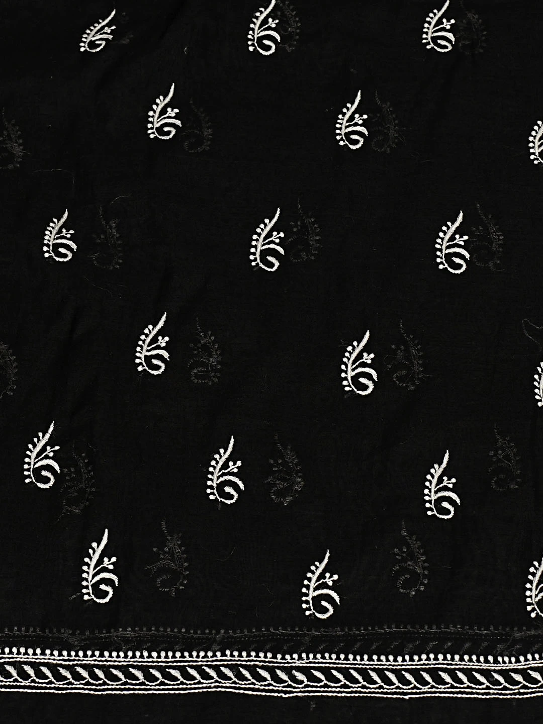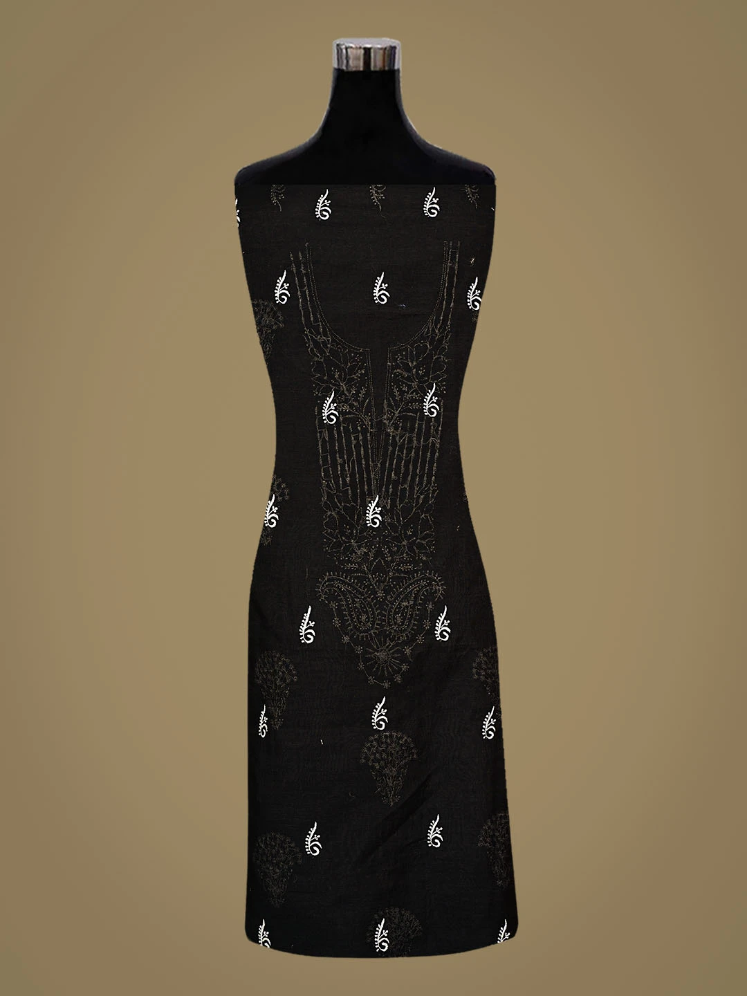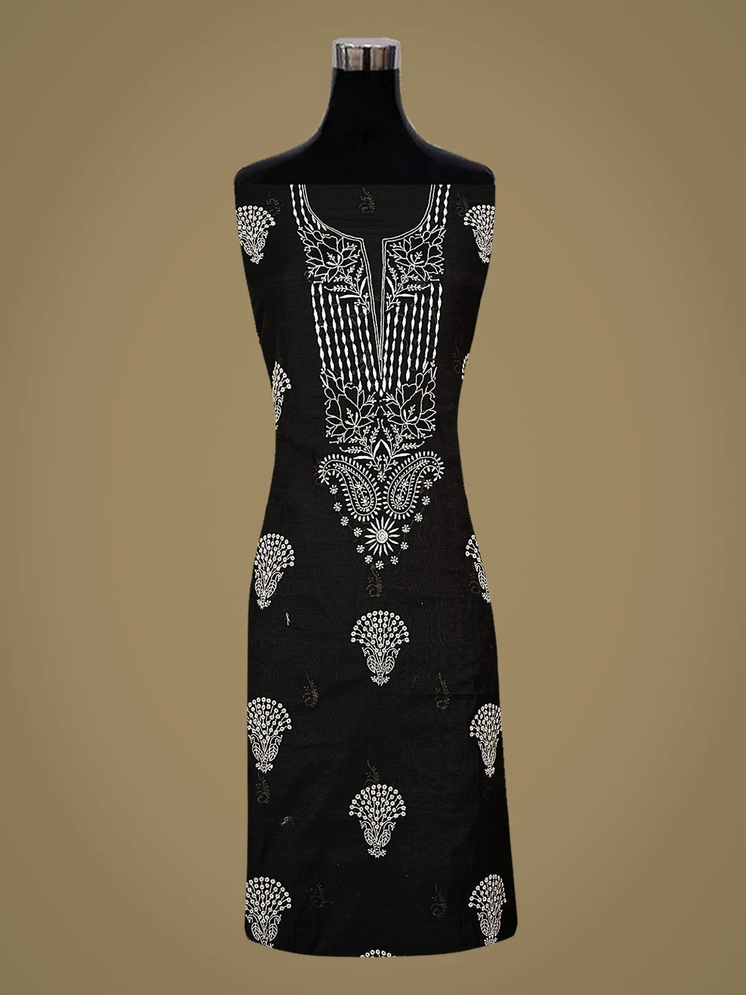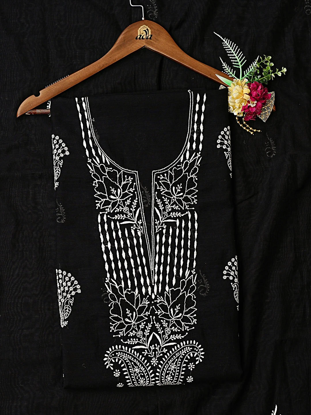 Ada Hand Embroidered Black Chanderi Lucknowi Chikankari Unstitched Kurta Dupatta Set 01A350804