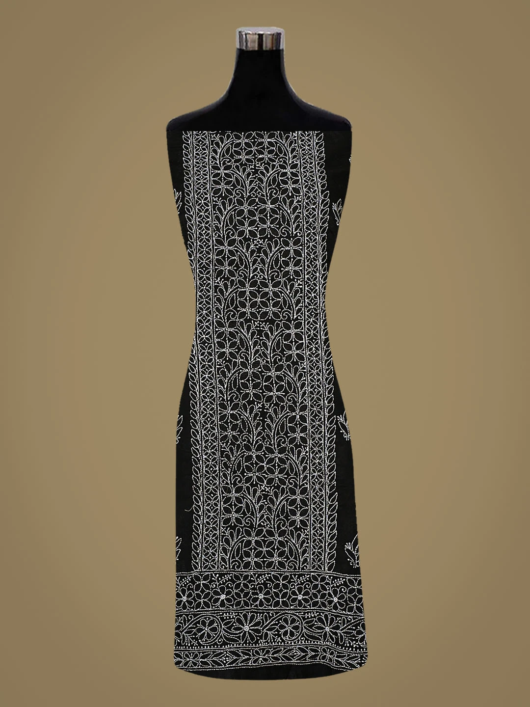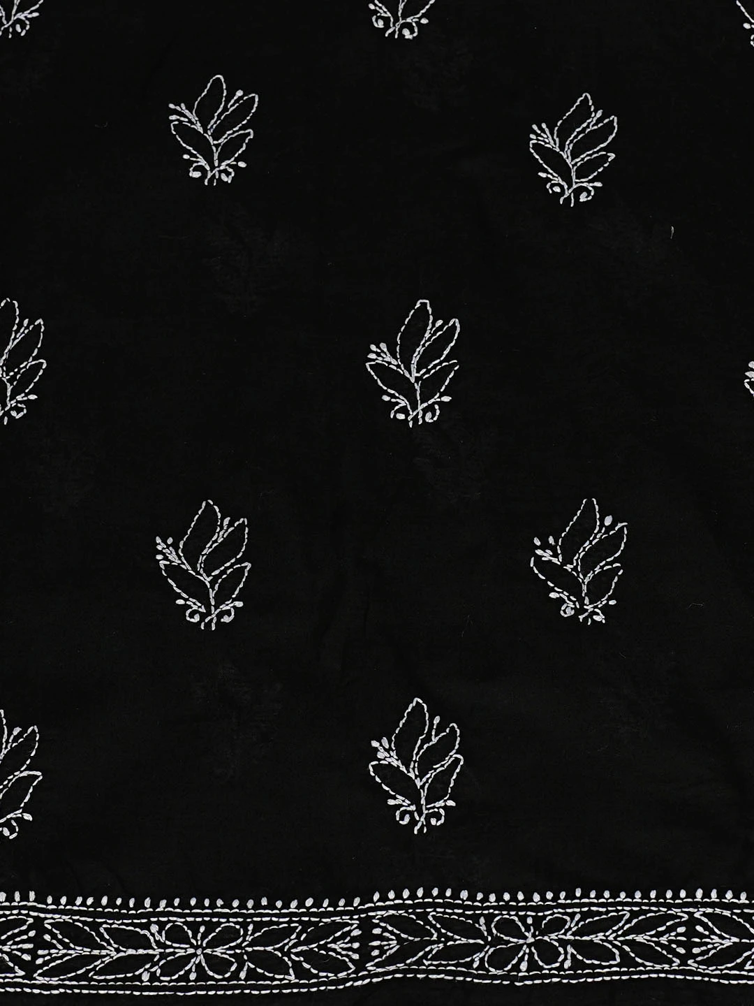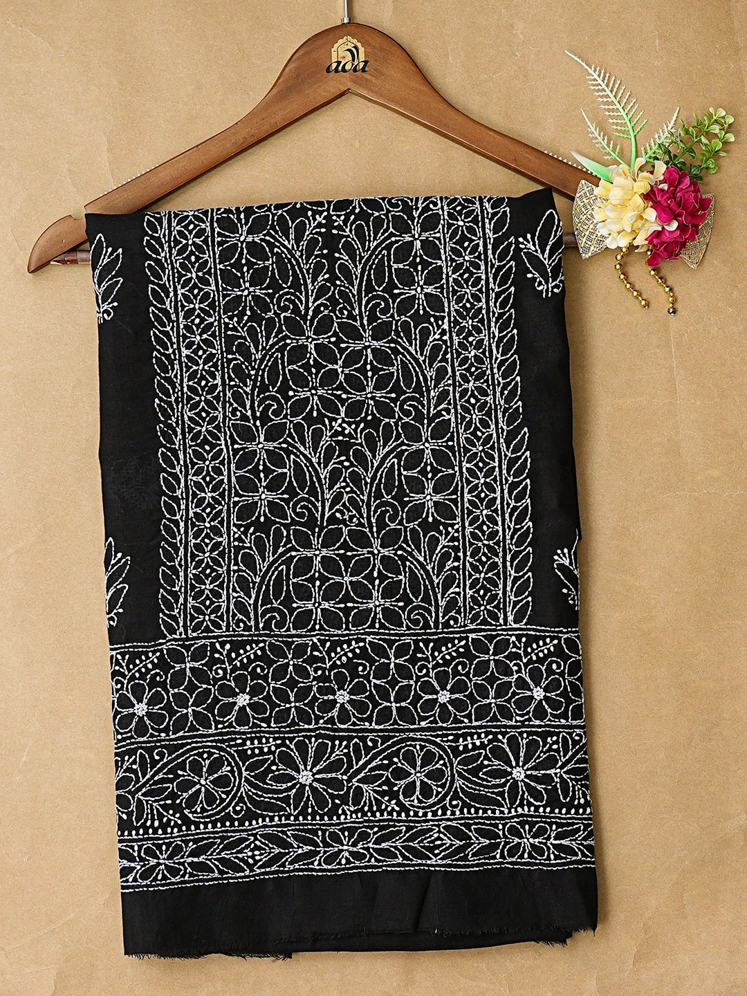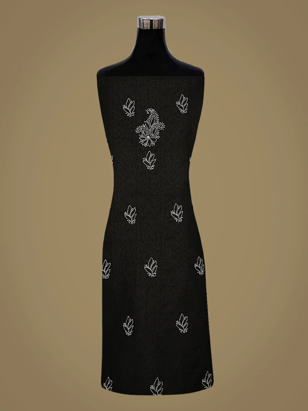 Ada Hand Embroidered Black Cotton Lucknowi Chikankari Unstitched Kurta Piece 01A863934