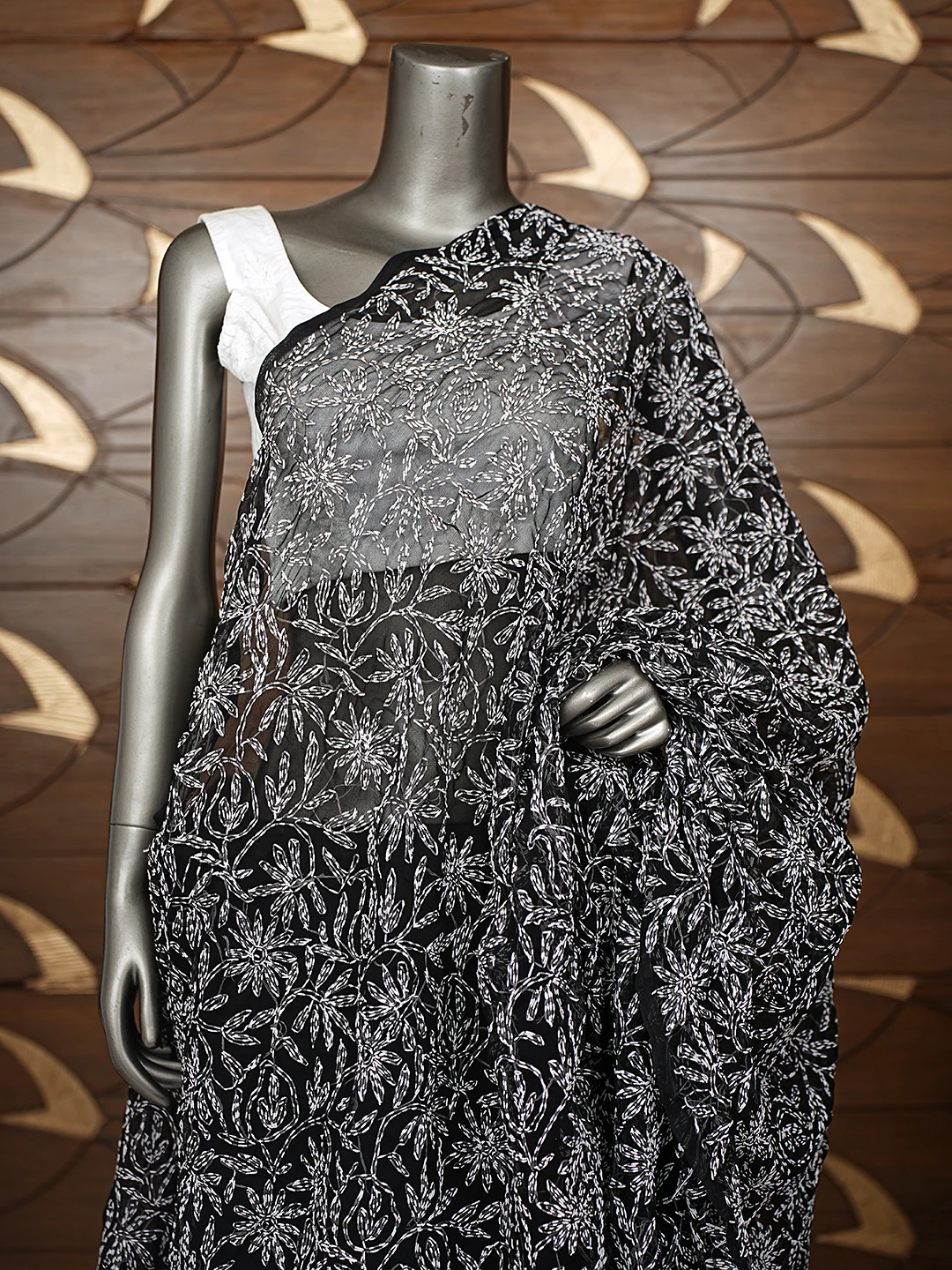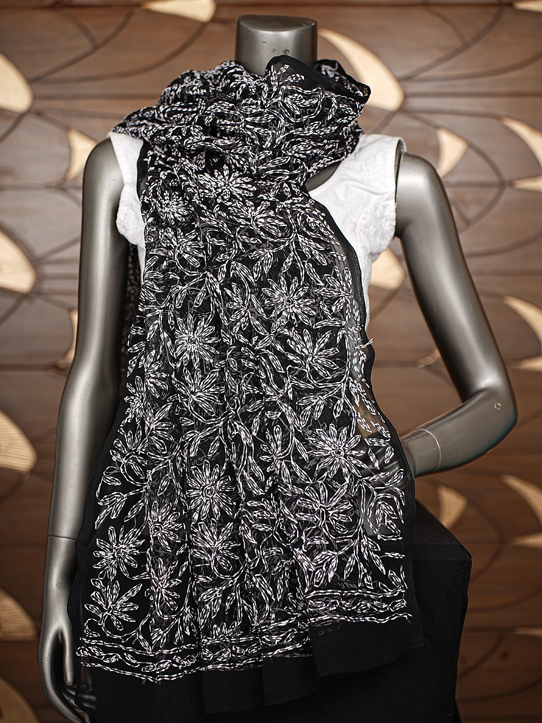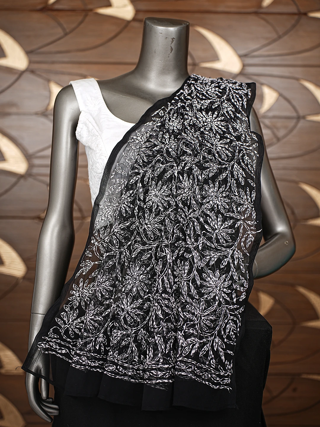 Ada Hand Embroidered Black Georgette Lucknowi Chikankari Dupatta 01A859627