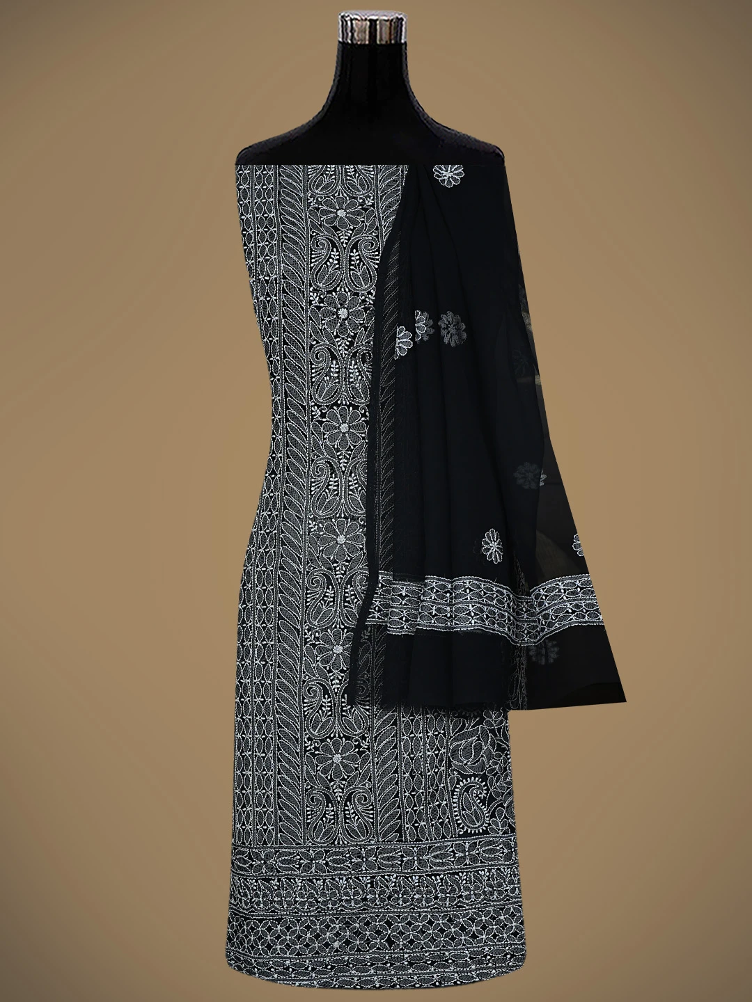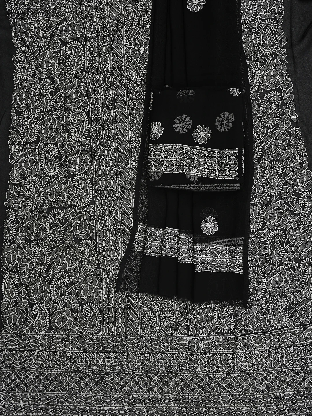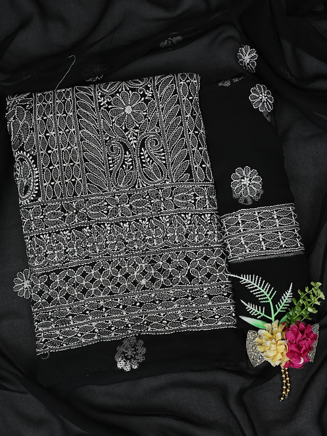 Ada Hand Embroidered Black Georgette Lucknowi Chikankari Unstitched Suit Piece 01A835645