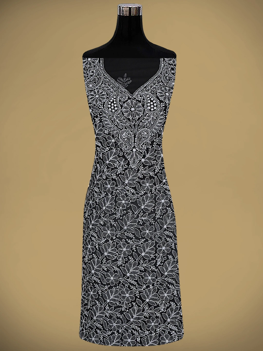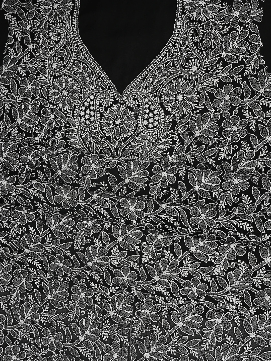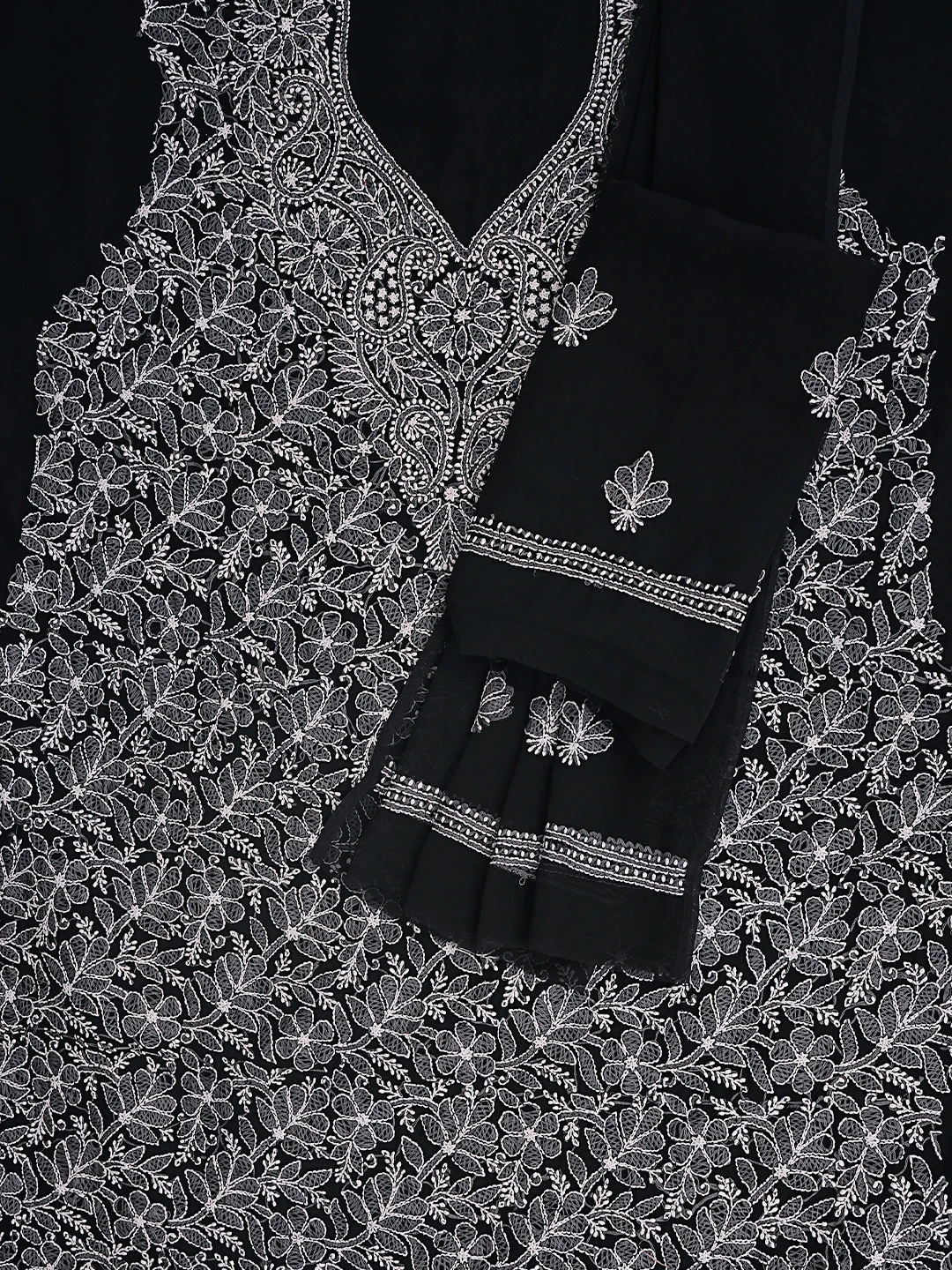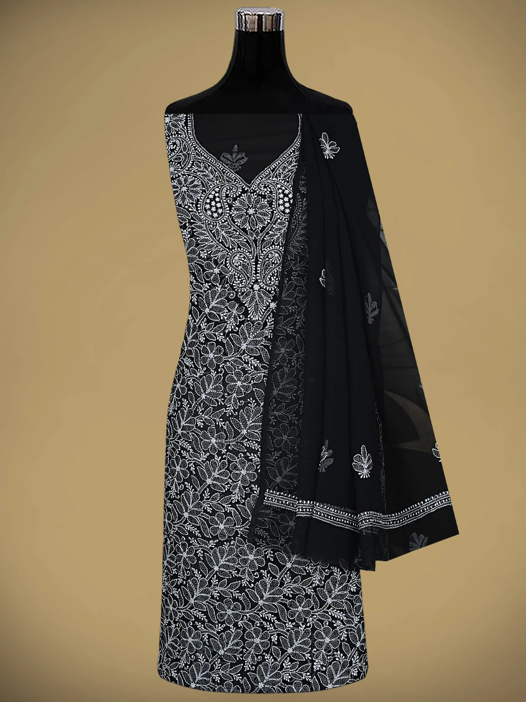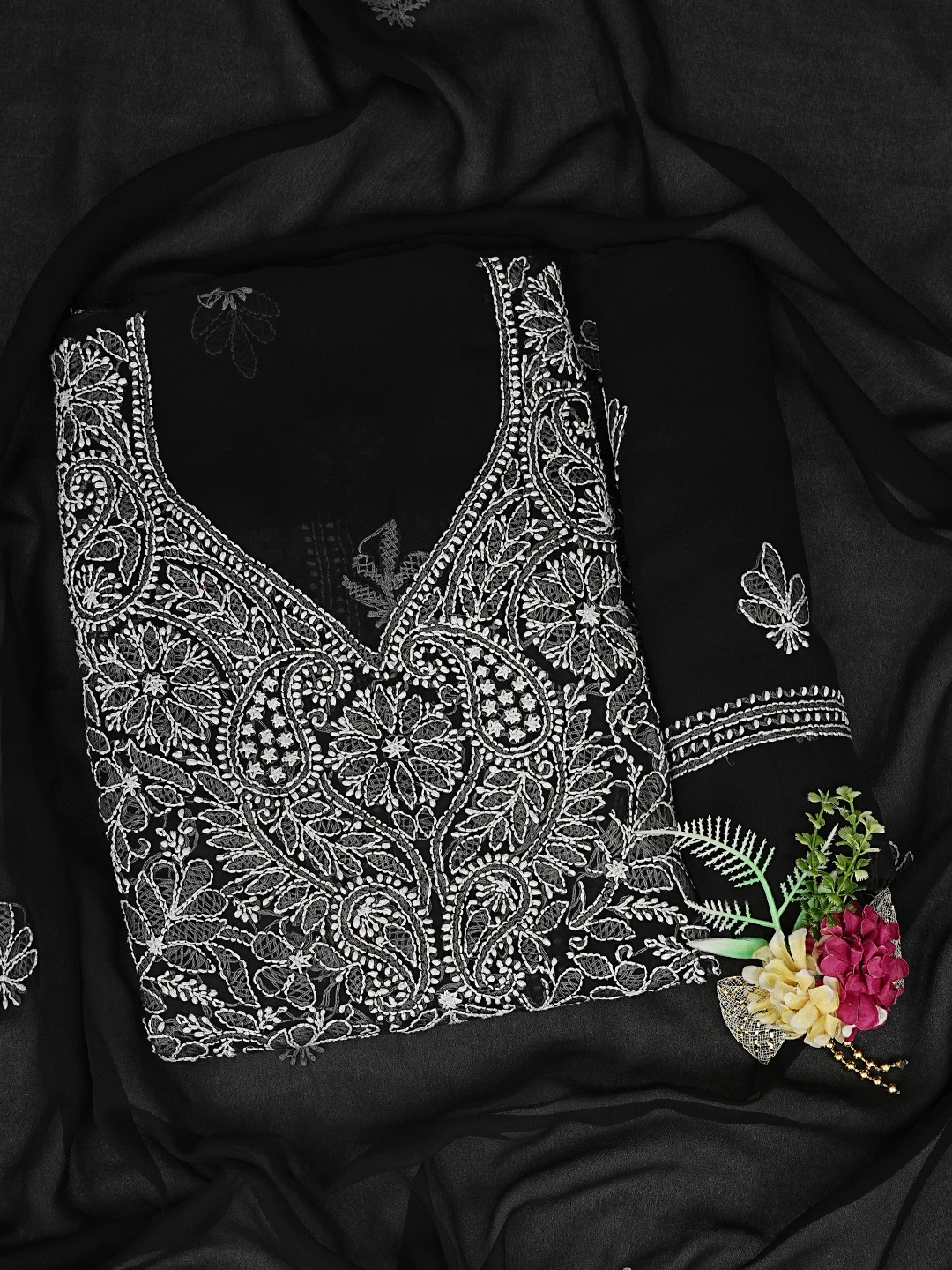 Ada Hand Embroidered Black Georgette Lucknowi Chikankari Unstitched Suit Piece 01A873544