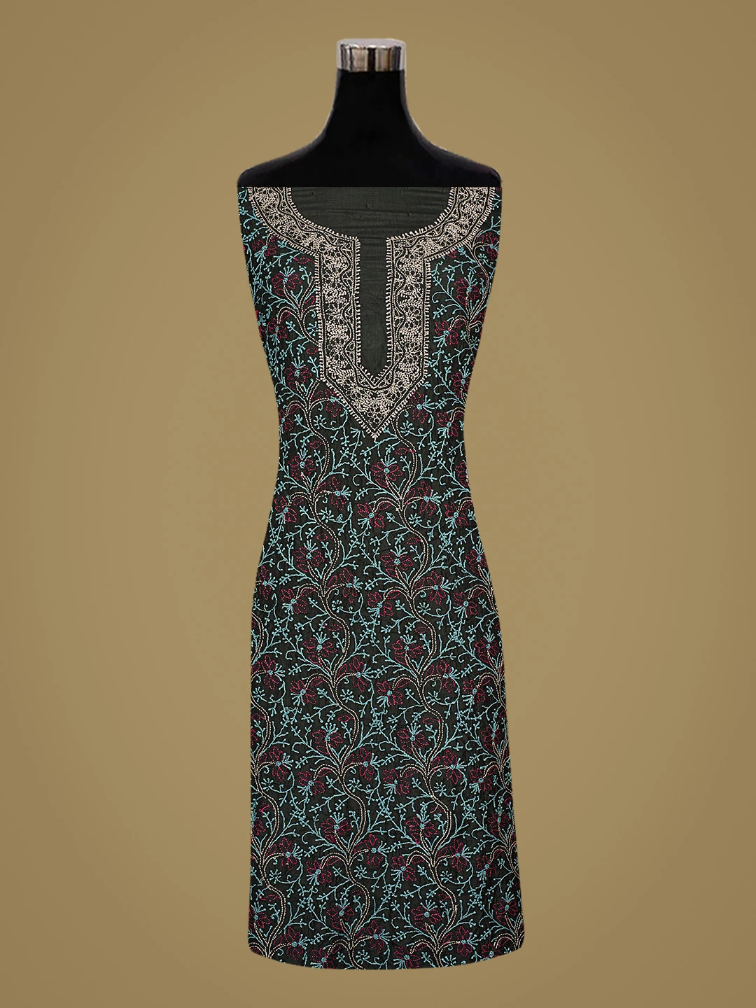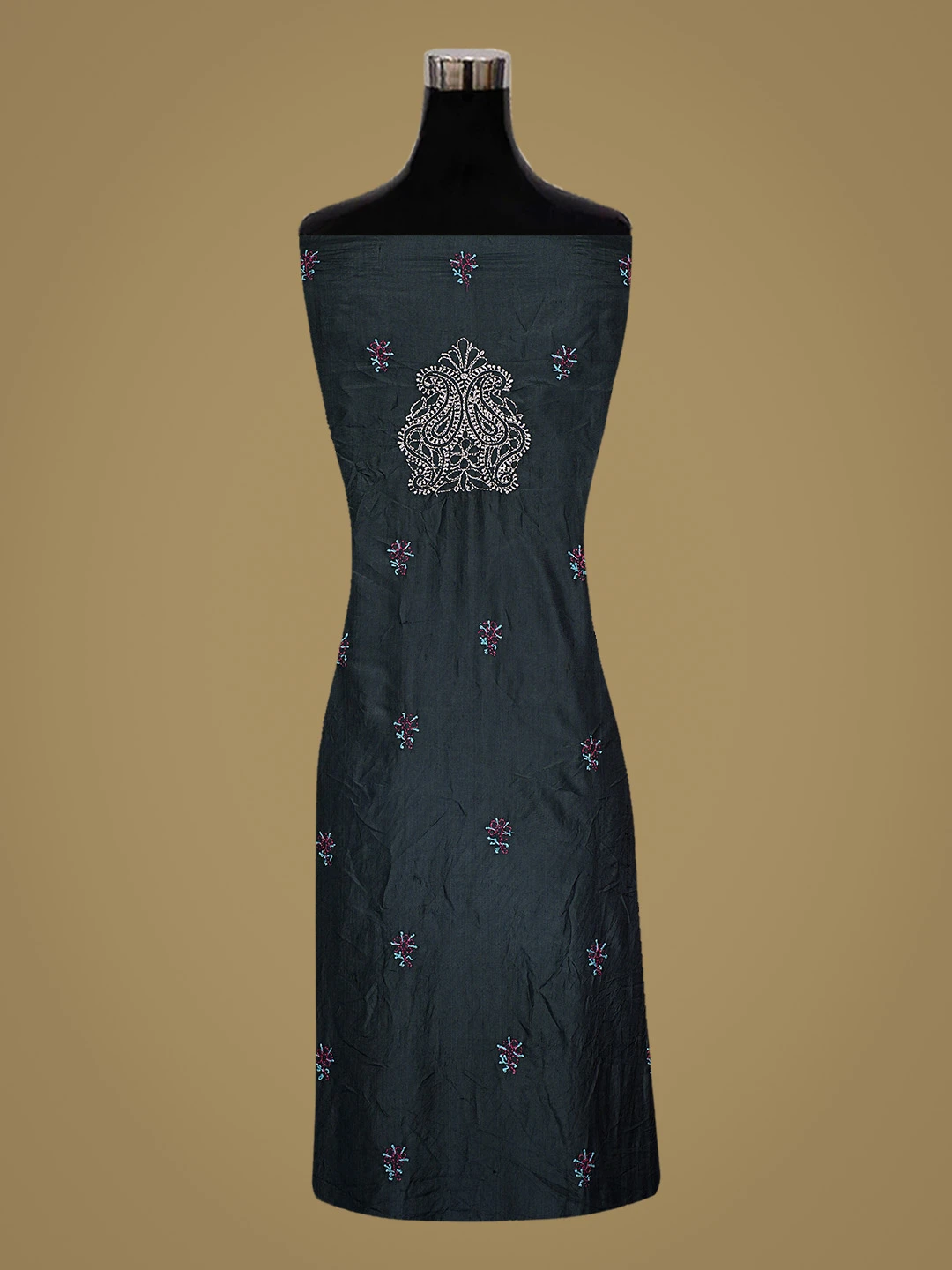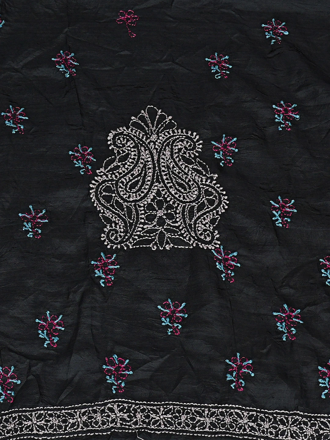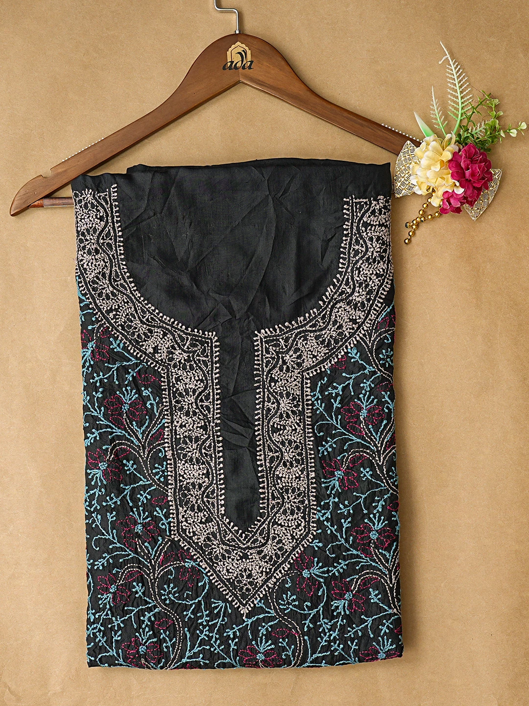 Ada Hand Embroidered Black Silk Lucknowi Chikankari Unstitched Kurta Piece 01A815982