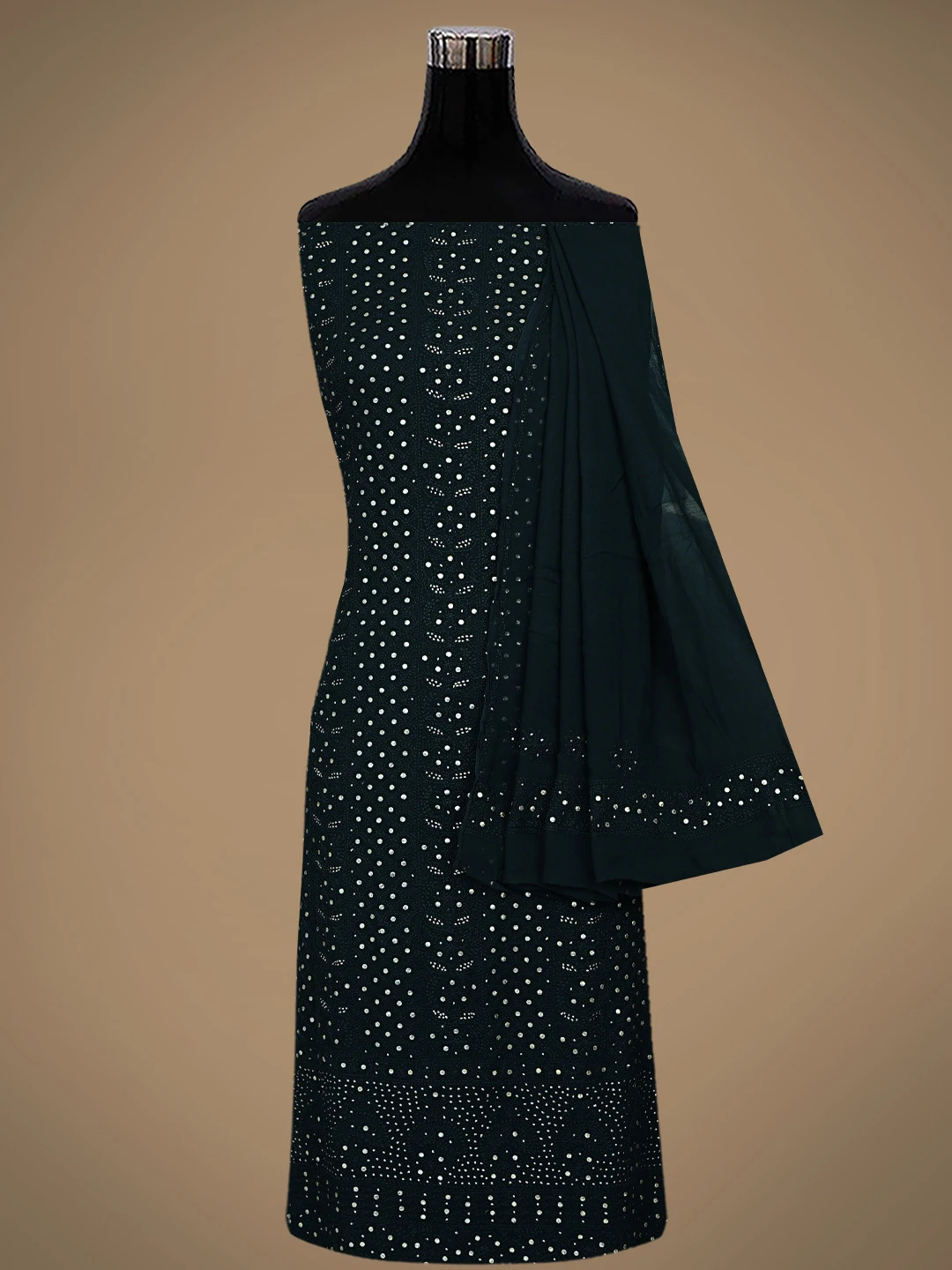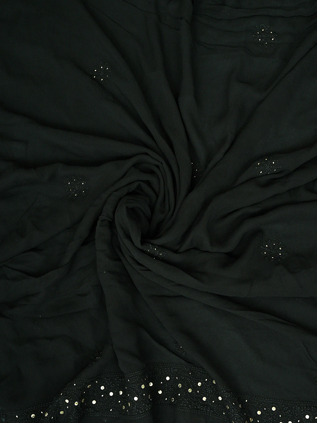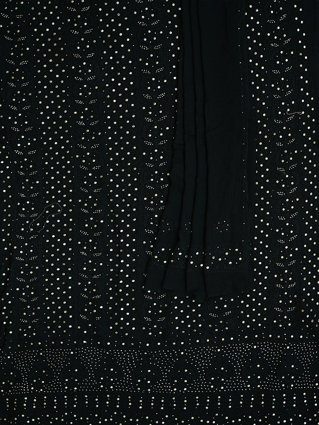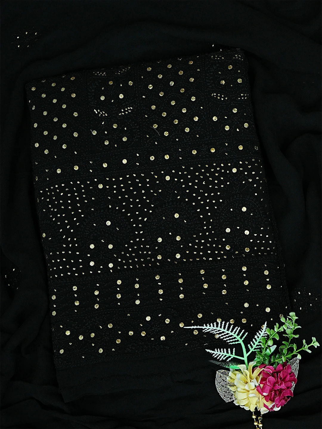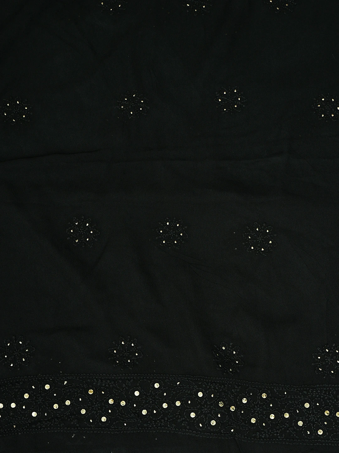 Ada Hand Embroidered Black Viscose Georgette Lucknowi Chikankari Unstitched Kurta Dupatta Set With Muqaish Work 01A802251