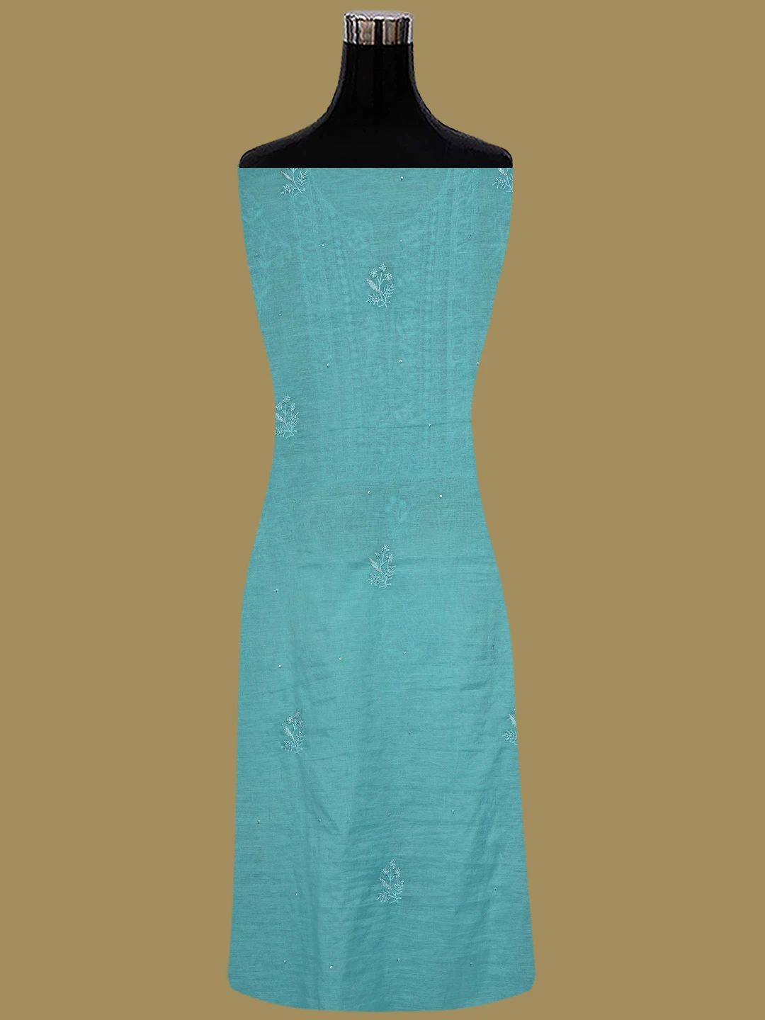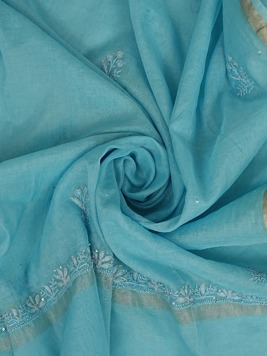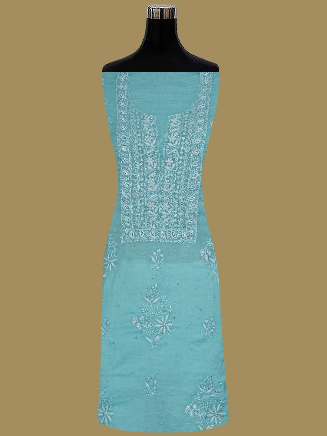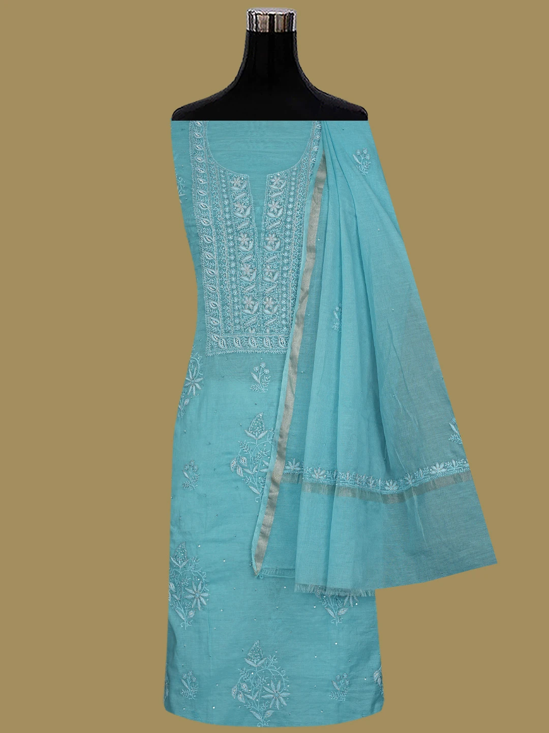 Ada Hand Embroidered Blue Chanderi Lucknowi Chikankari Unstitched Kurta Dupatta Set With Cutdana Work 01A605344