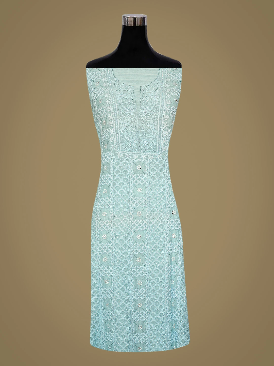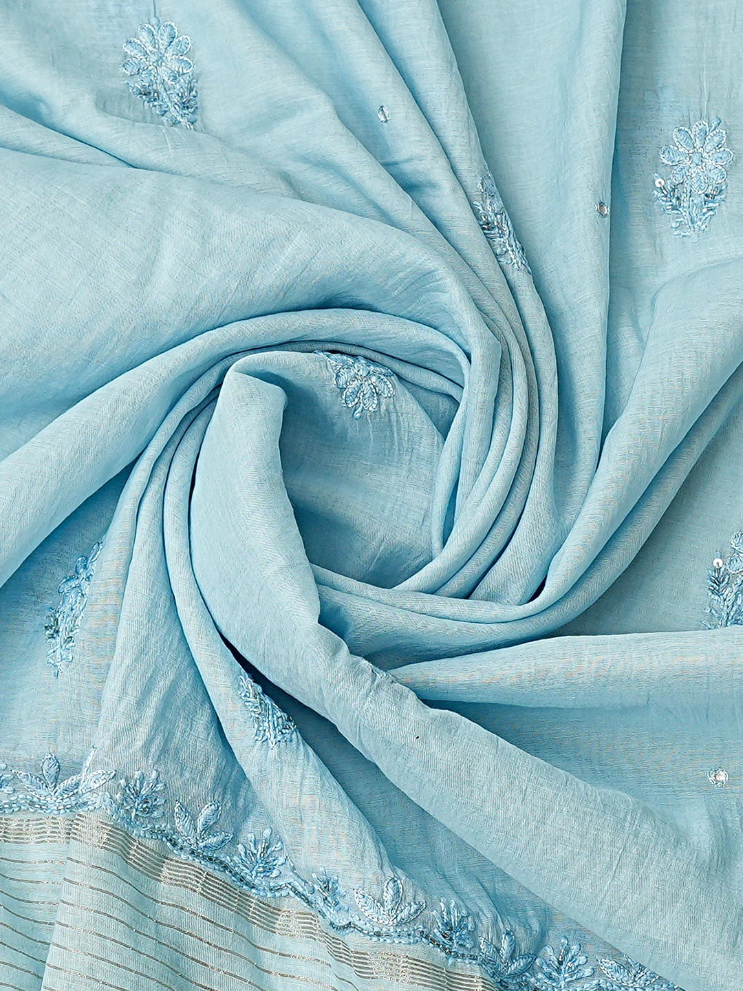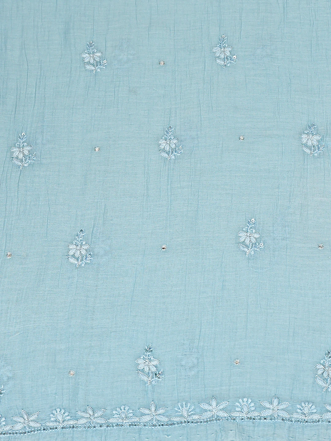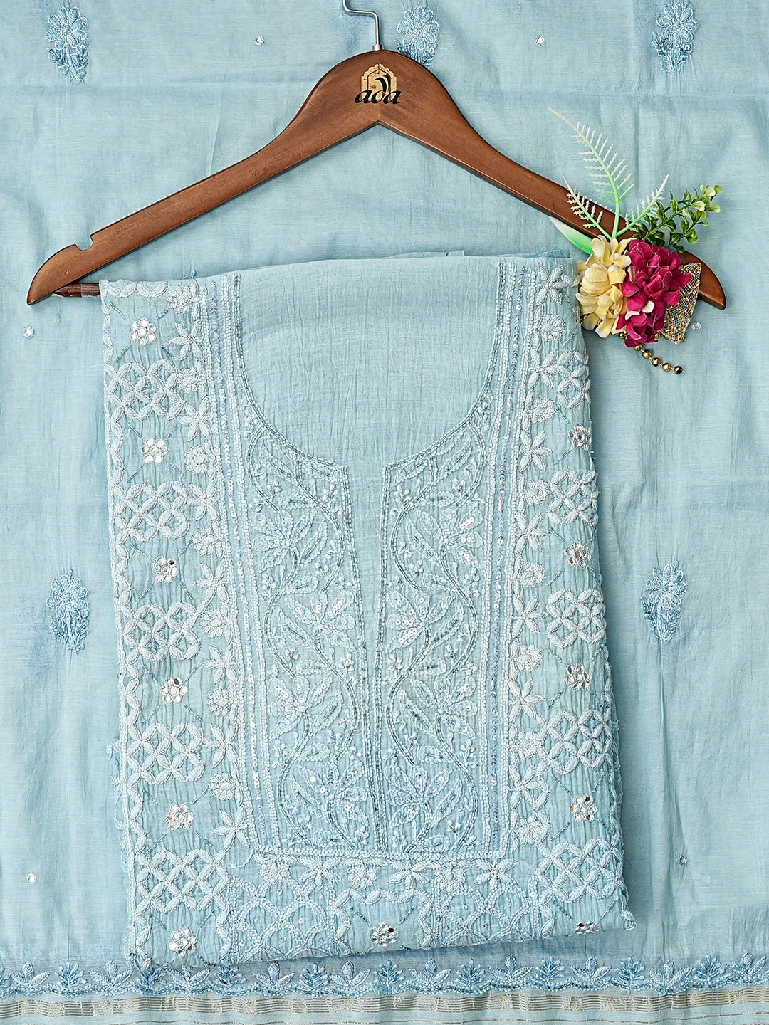 Ada Hand Embroidered Blue Chanderi Lucknowi Chikankari Unstitched Kurta Dupatta Set With Cutdana Work 01A741506