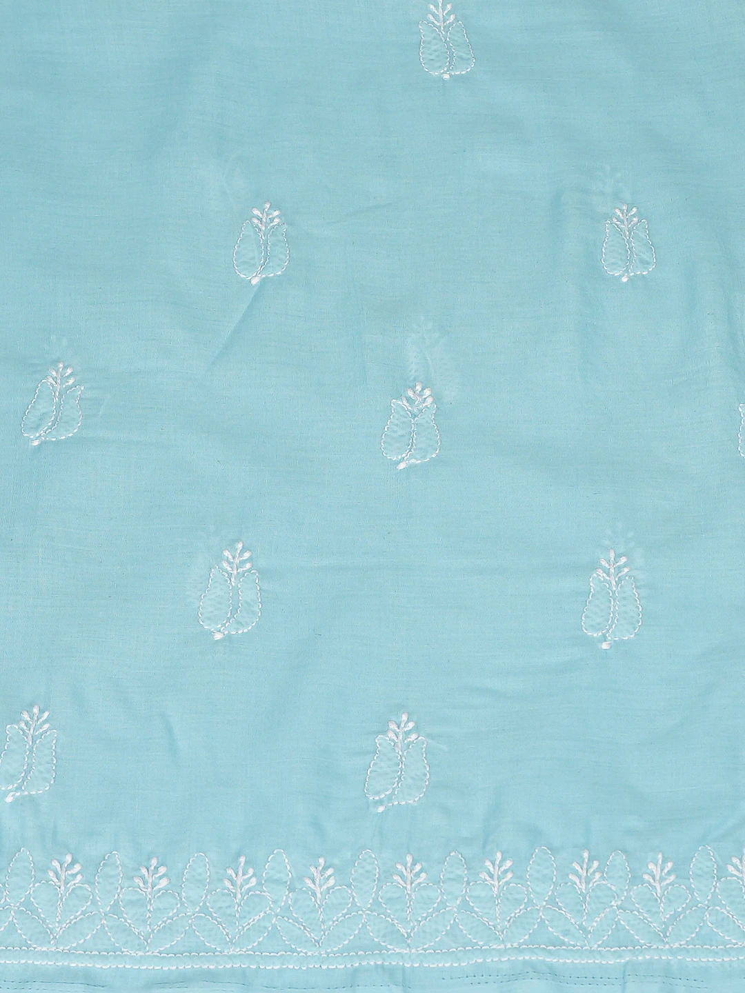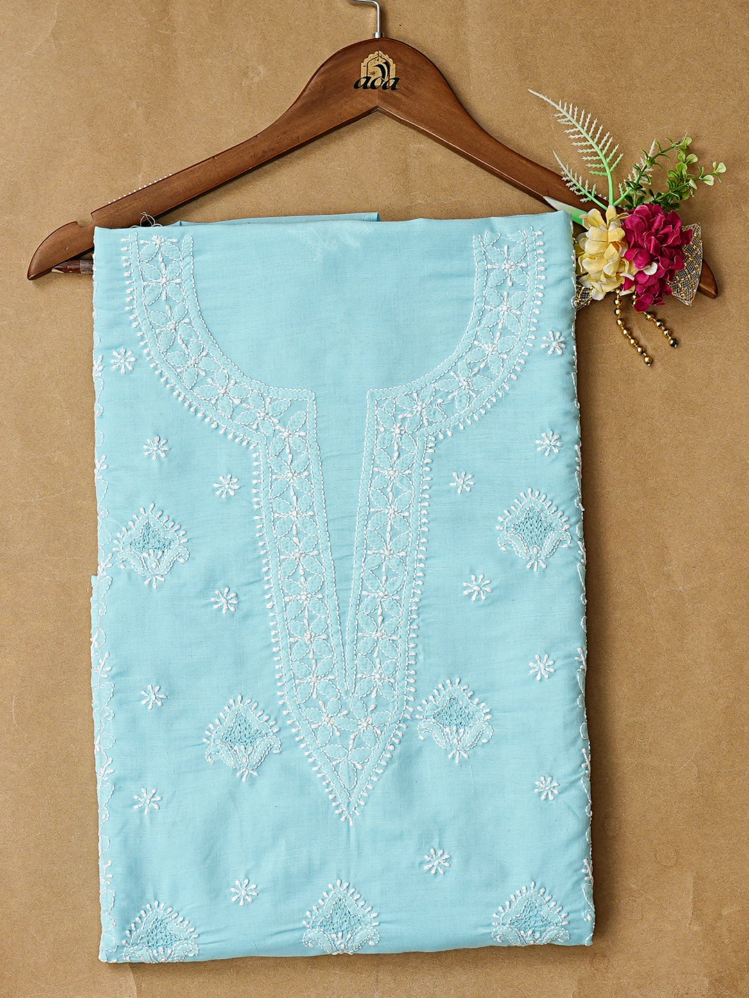 Ada Hand Embroidered Blue Cotton Lucknowi Chikankari Unstitched Kurta Piece 01A772859