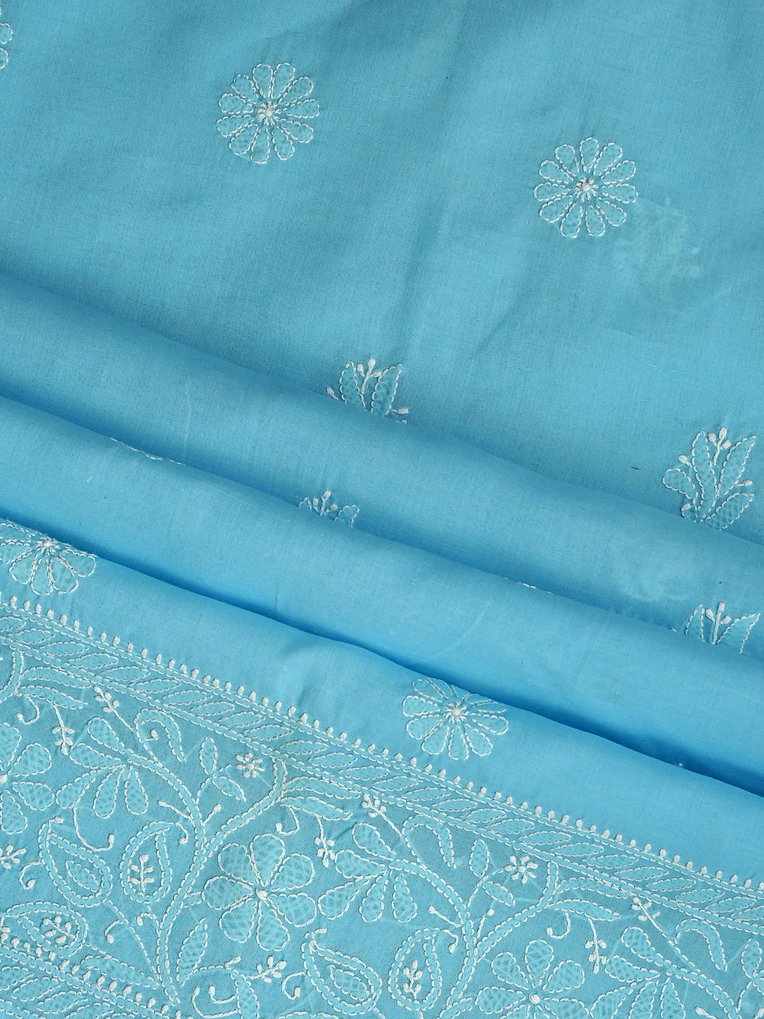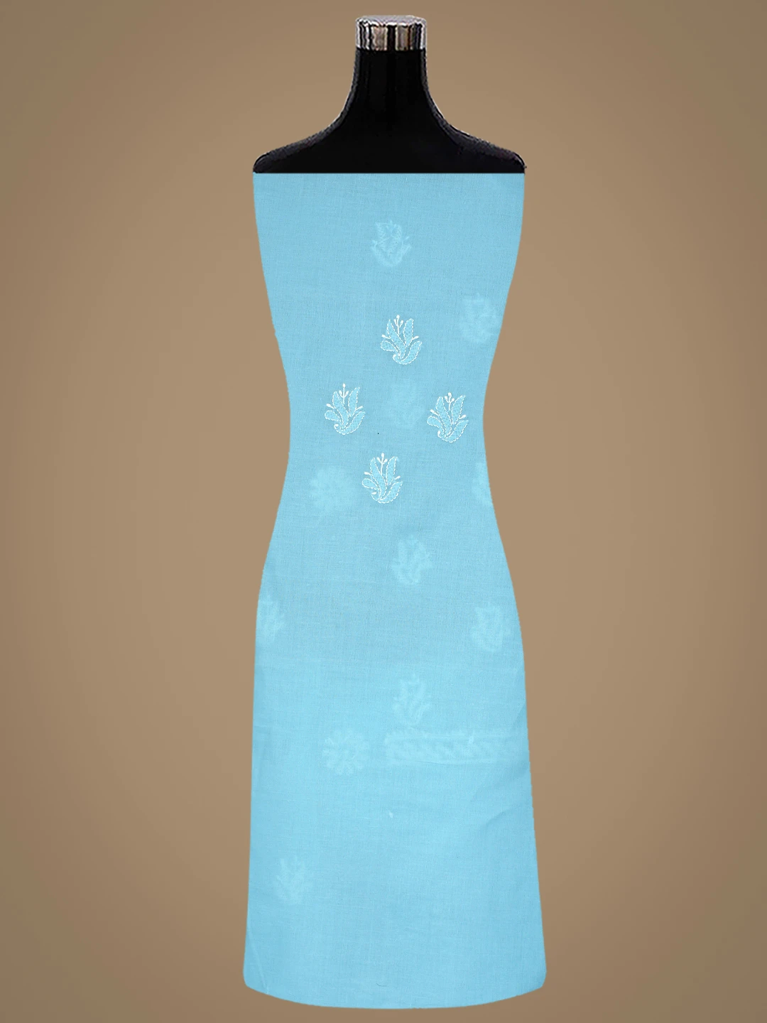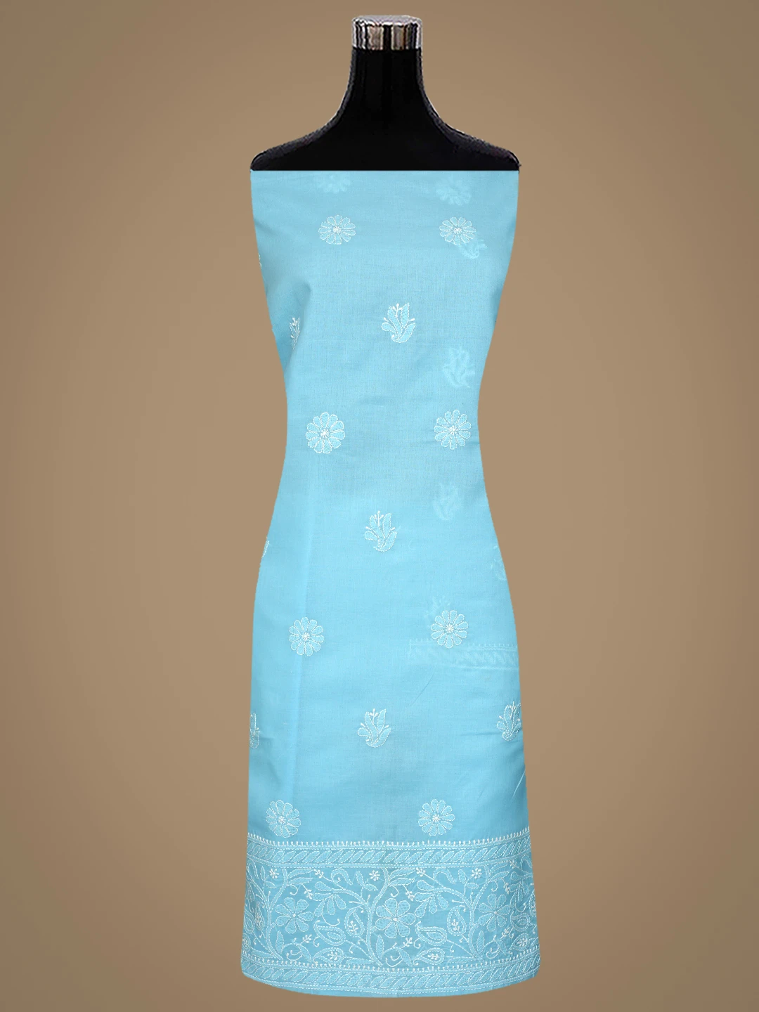 Ada Hand Embroidered Blue Cotton Lucknowi Chikankari Unstitched Suit Piece 01A818701