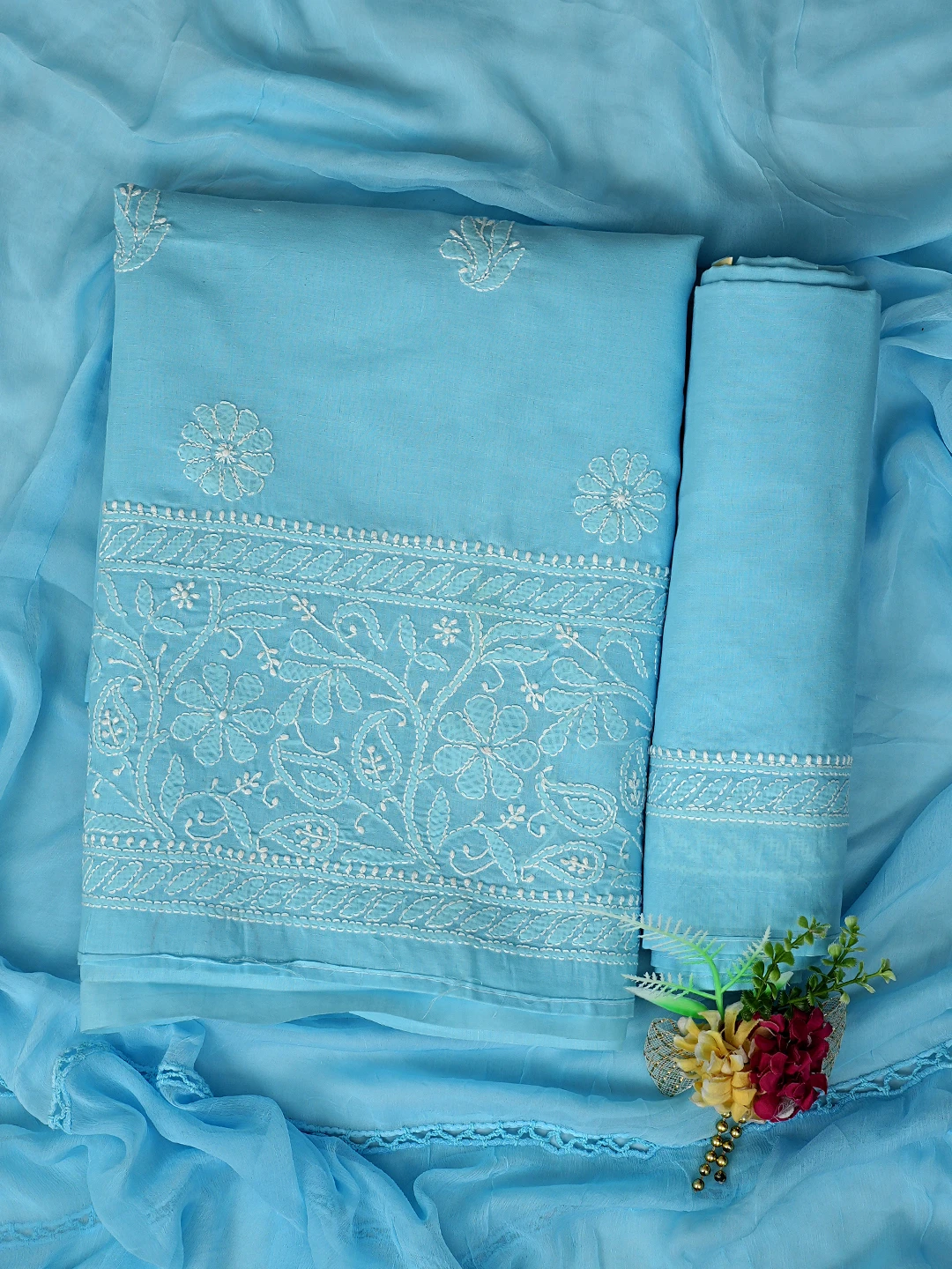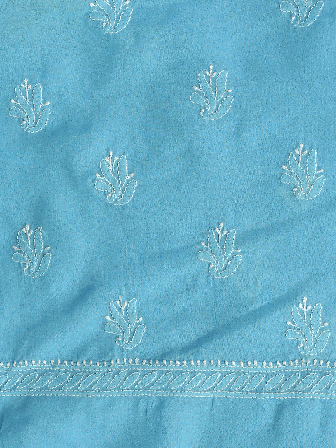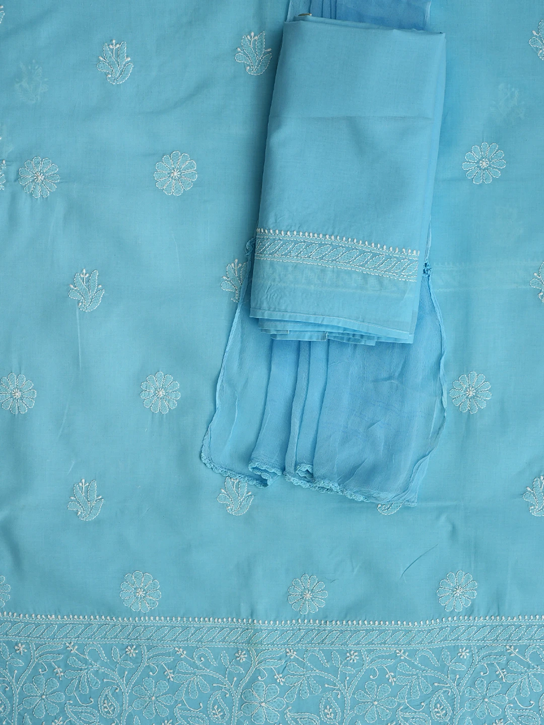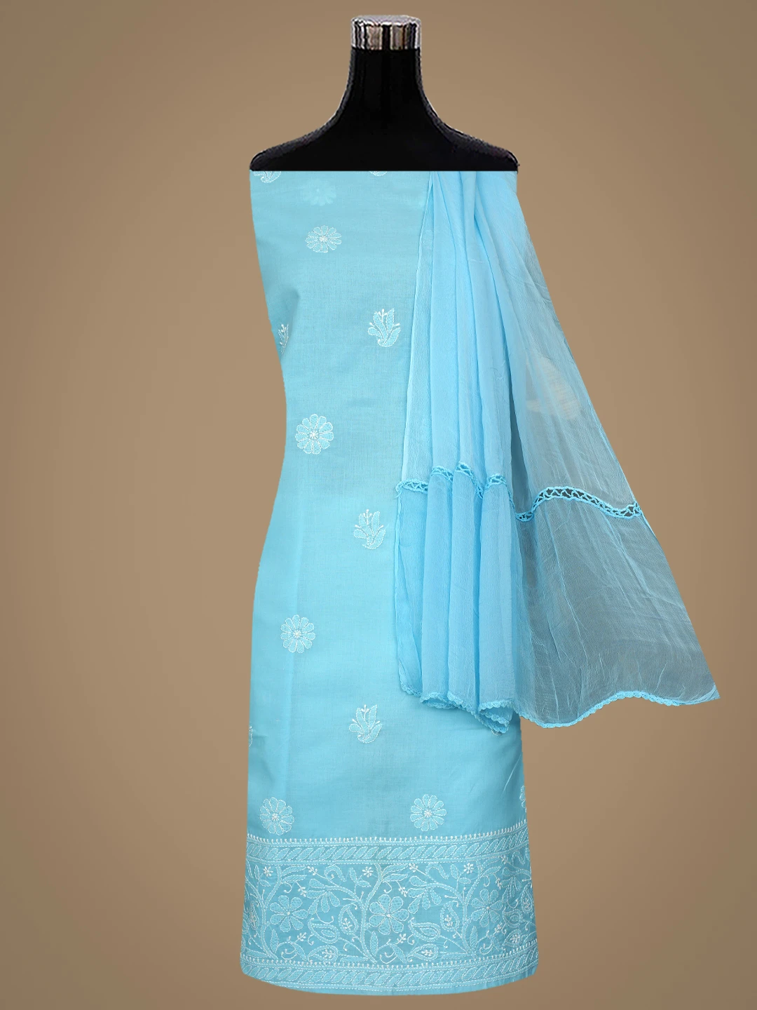 Ada Hand Embroidered Blue Cotton Lucknowi Chikankari Unstitched Suit Piece 01A818701