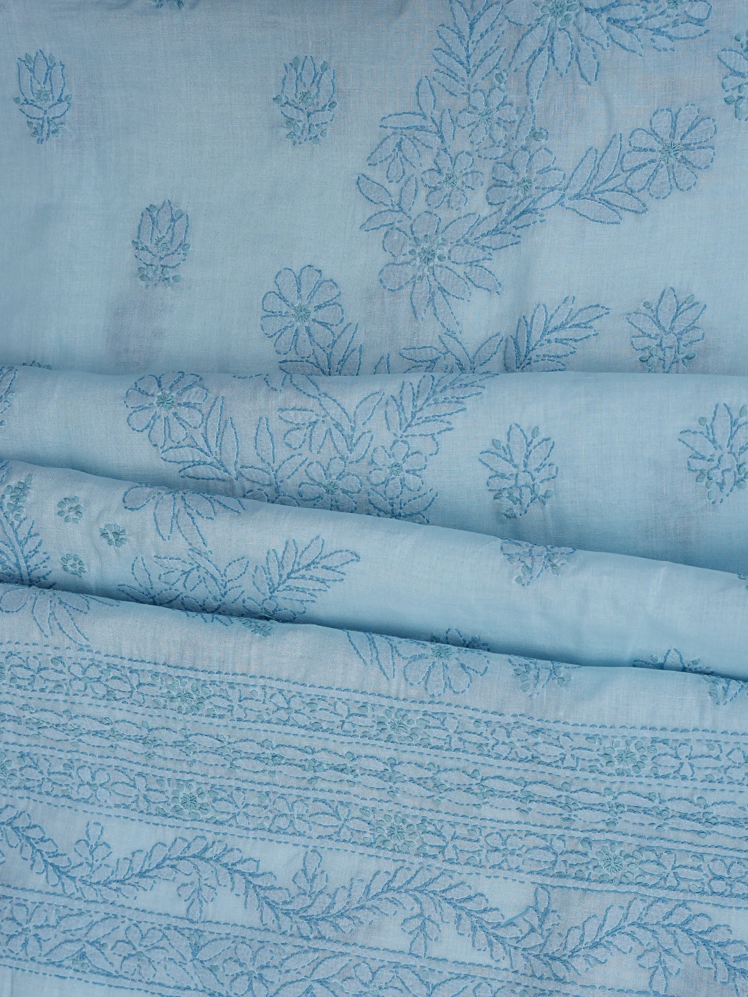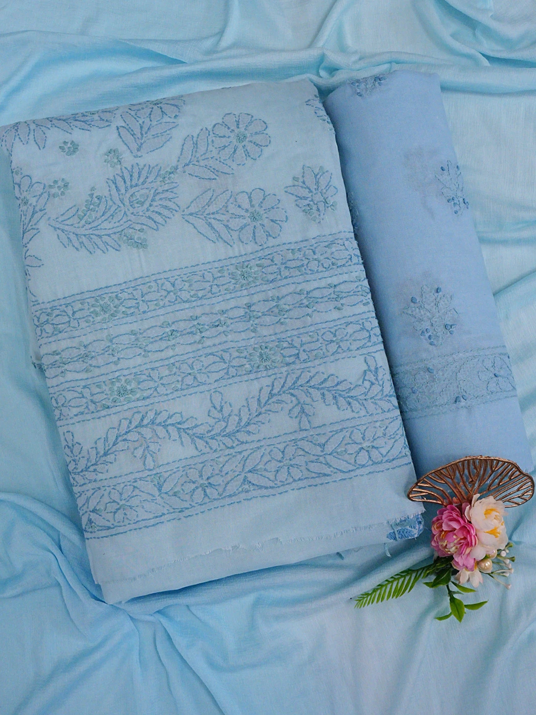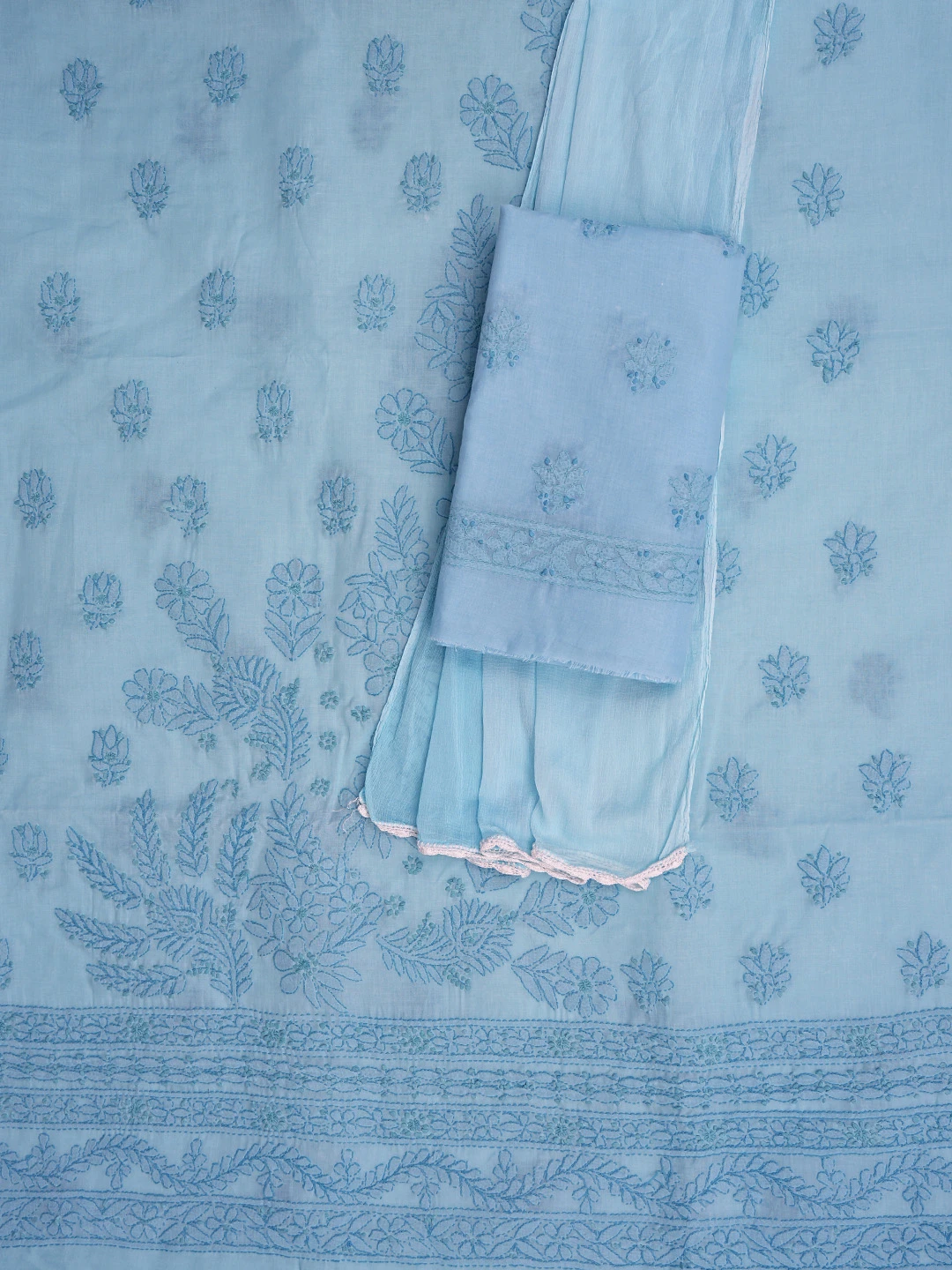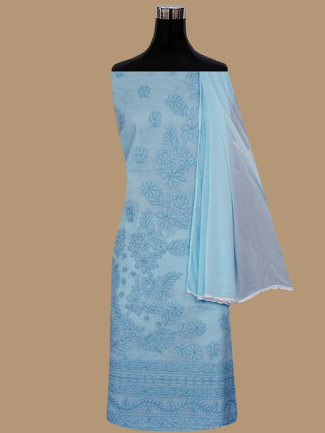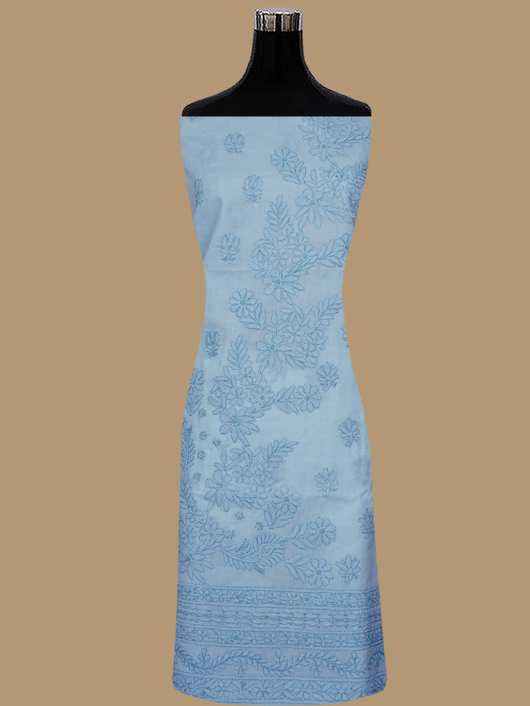 Ada Hand Embroidered Blue Cotton Lucknowi Chikankari Unstitched Suit Piece 01A862922