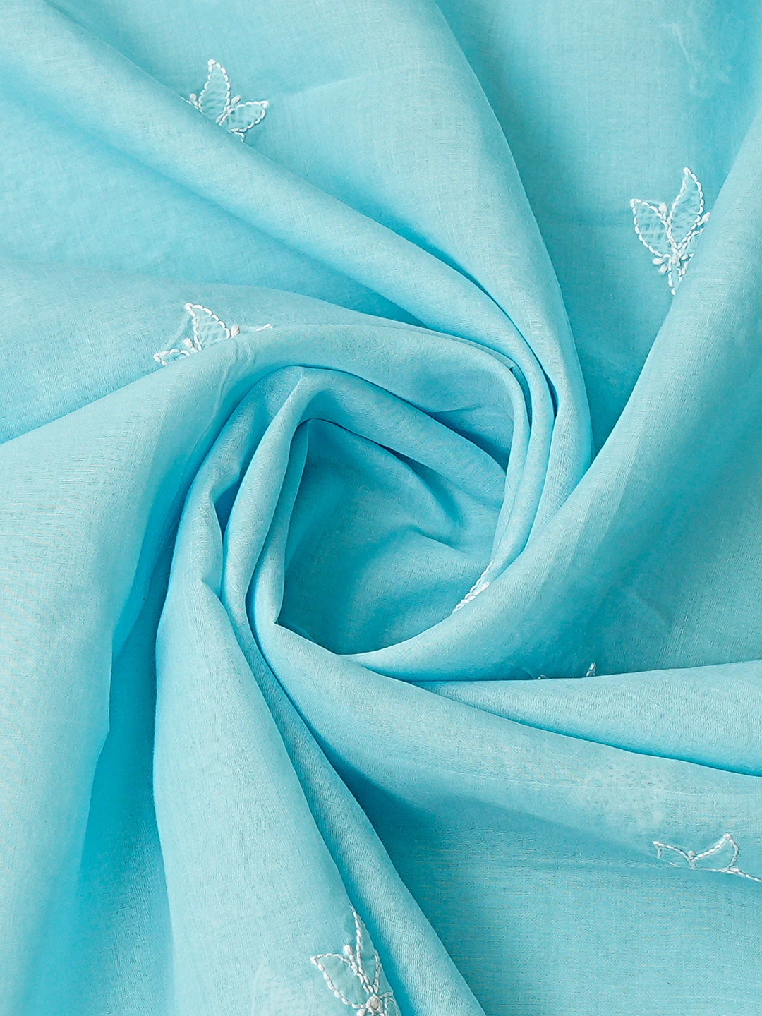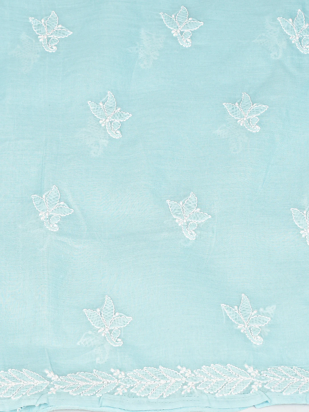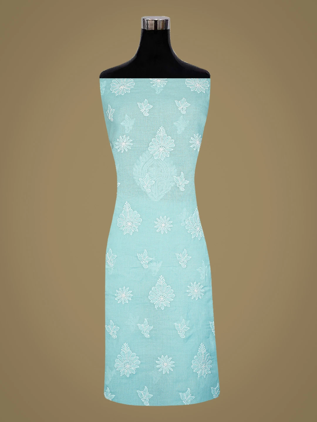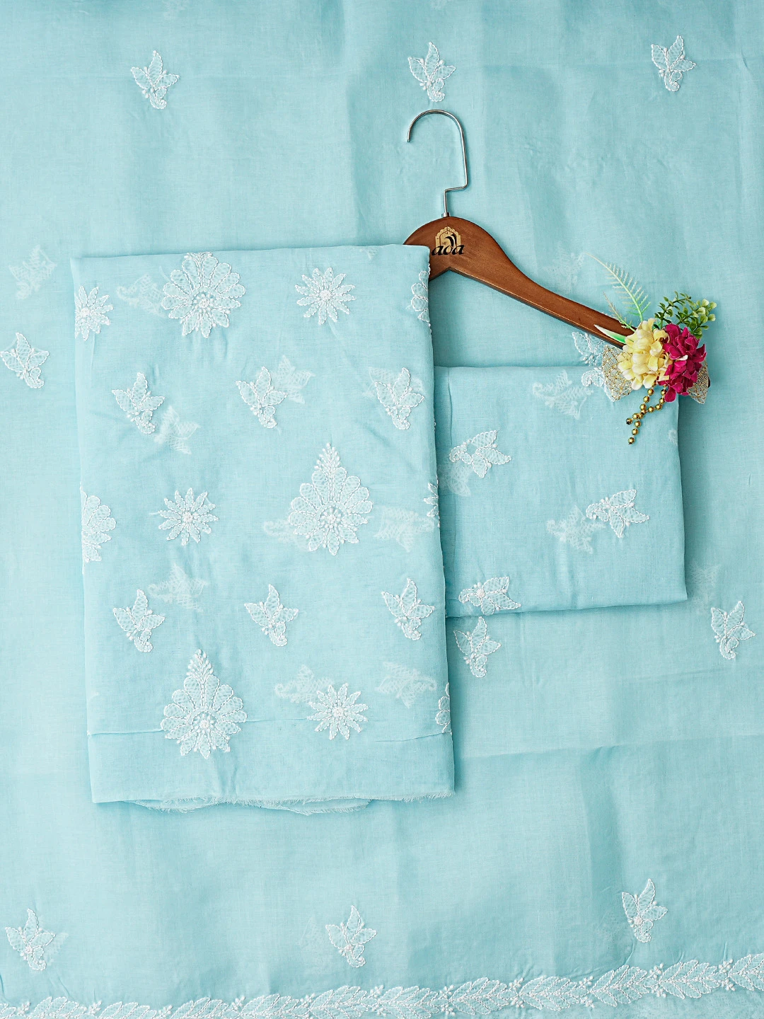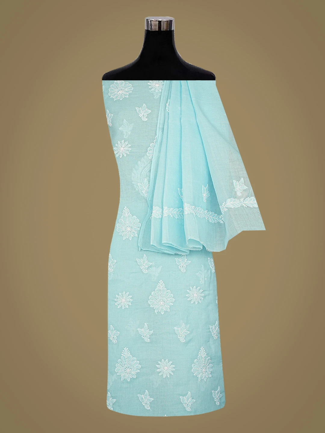 Ada Hand Embroidered Blue Cotton Lucknowi Chikankari Unstitched Suit Piece 01A867745
