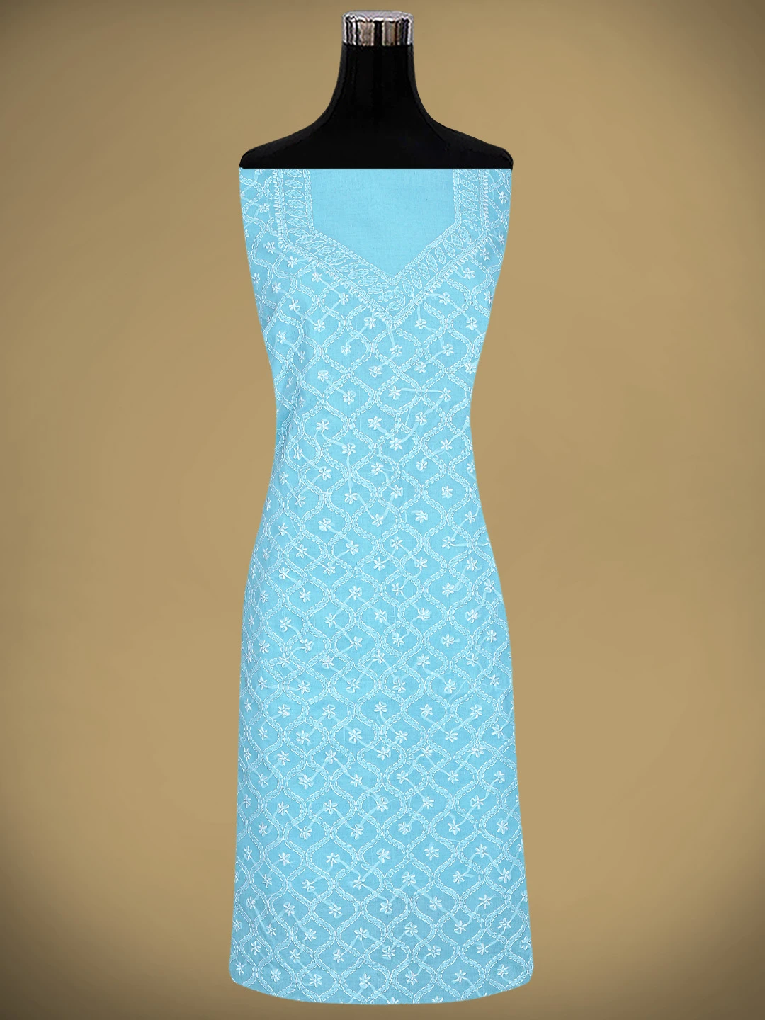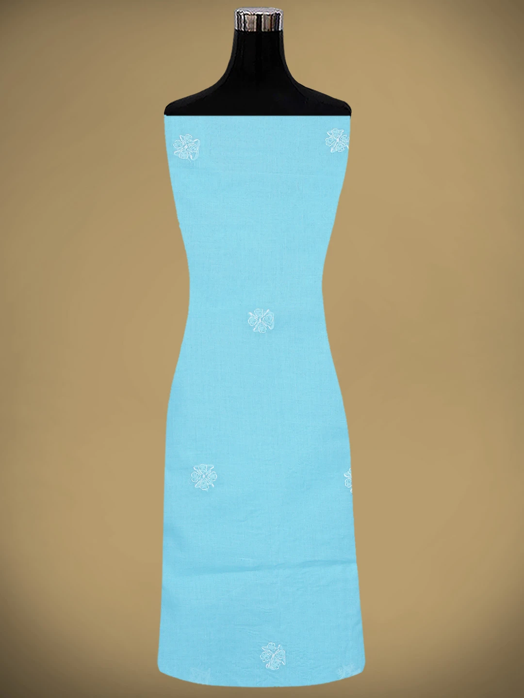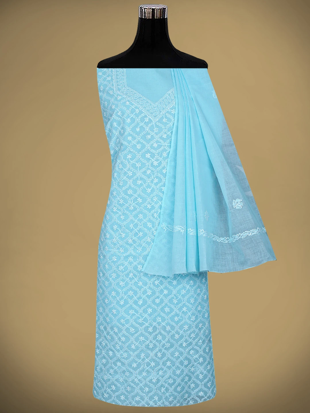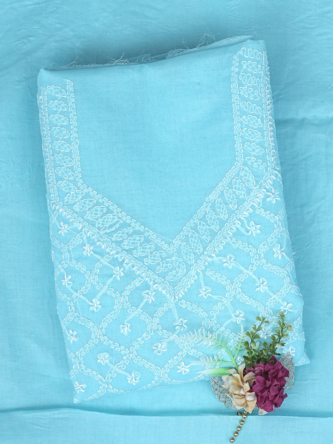 Ada Hand Embroidered Blue Cotton Lucknowi Chikankari Unstitched Suit Piece 01A882353