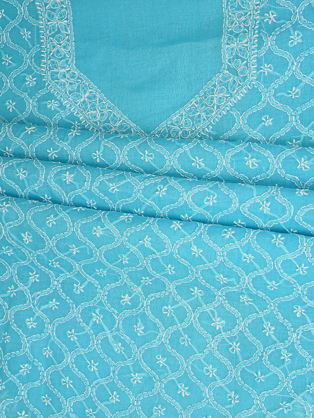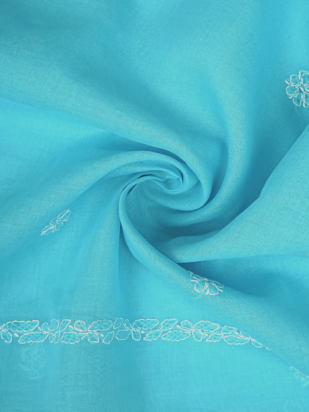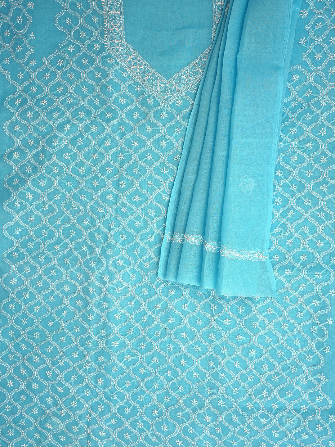 Ada Hand Embroidered Blue Cotton Lucknowi Chikankari Unstitched Suit Piece 01A882355