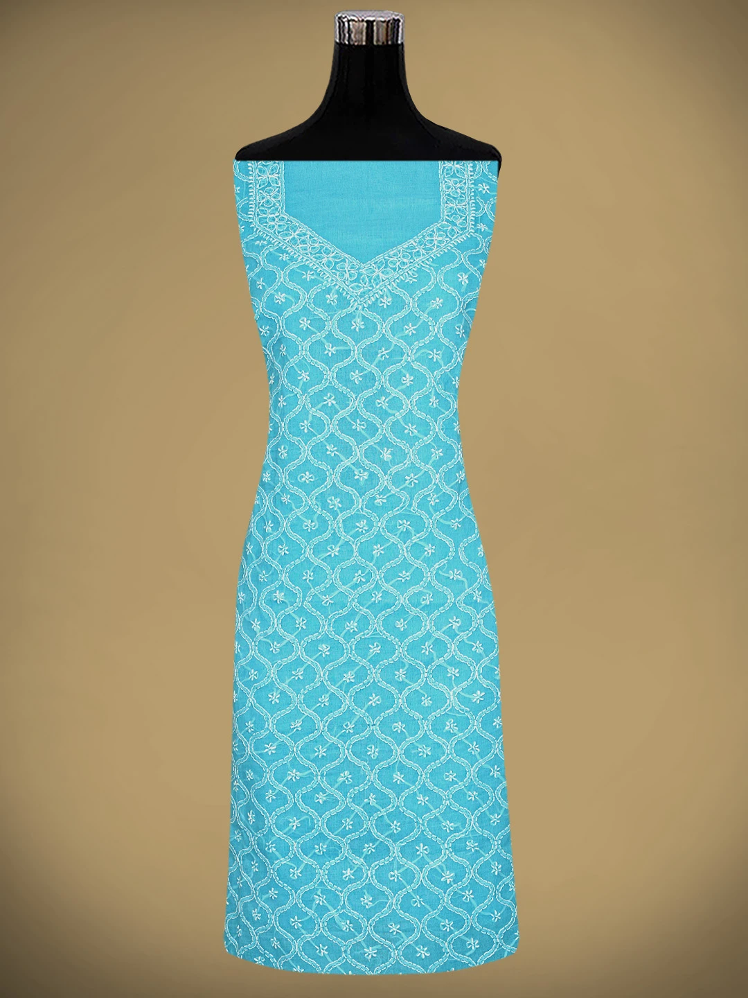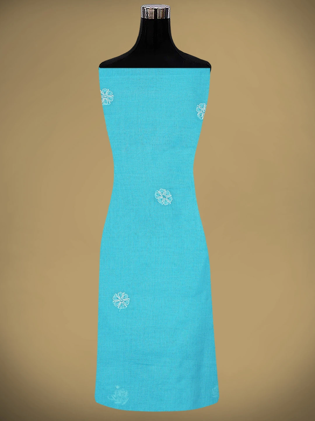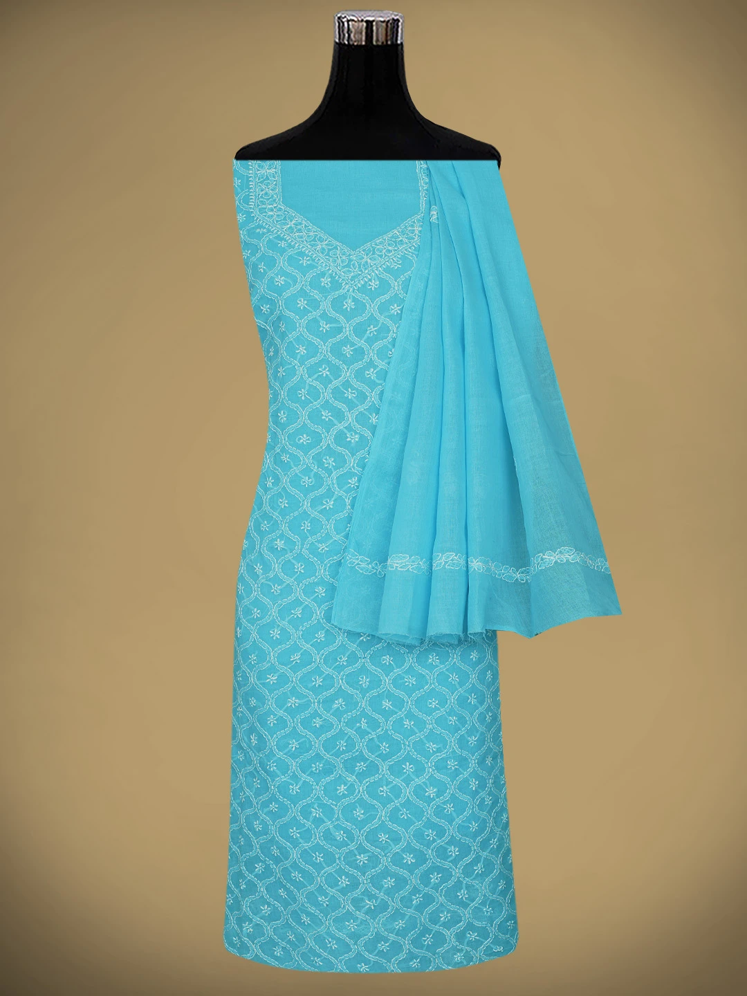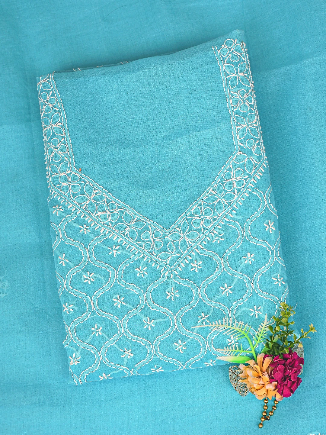 Ada Hand Embroidered Blue Cotton Lucknowi Chikankari Unstitched Suit Piece 01A882355
