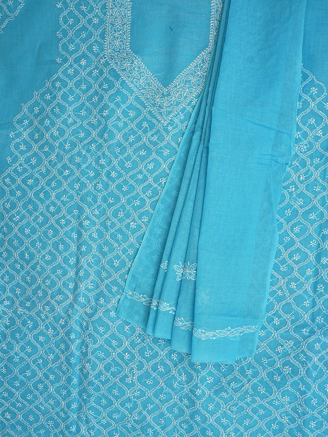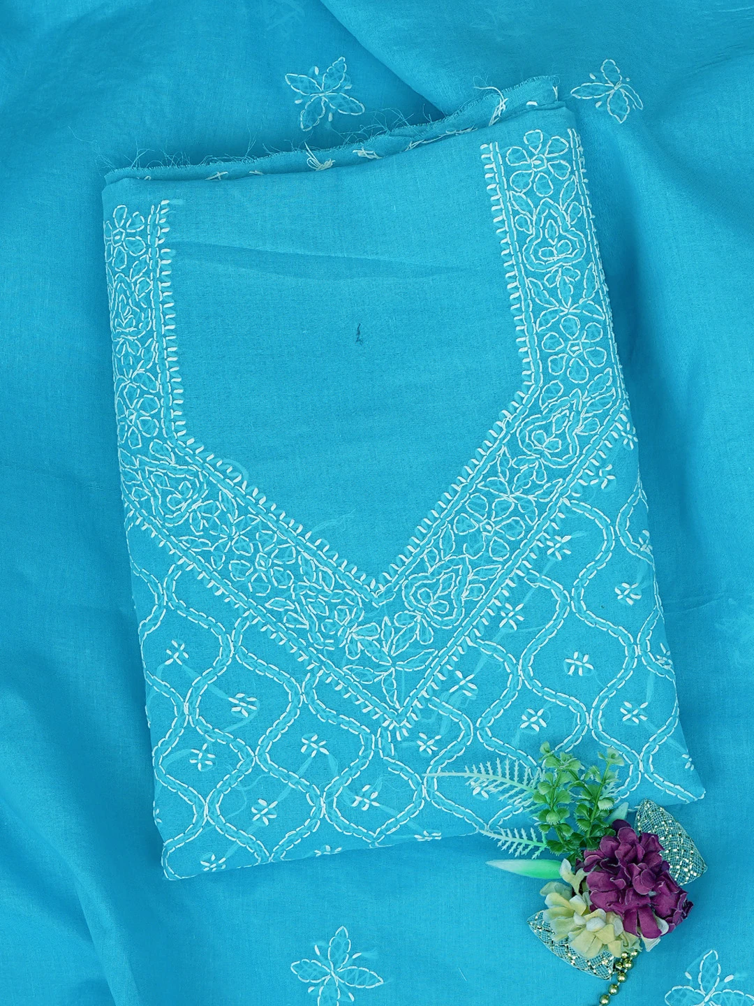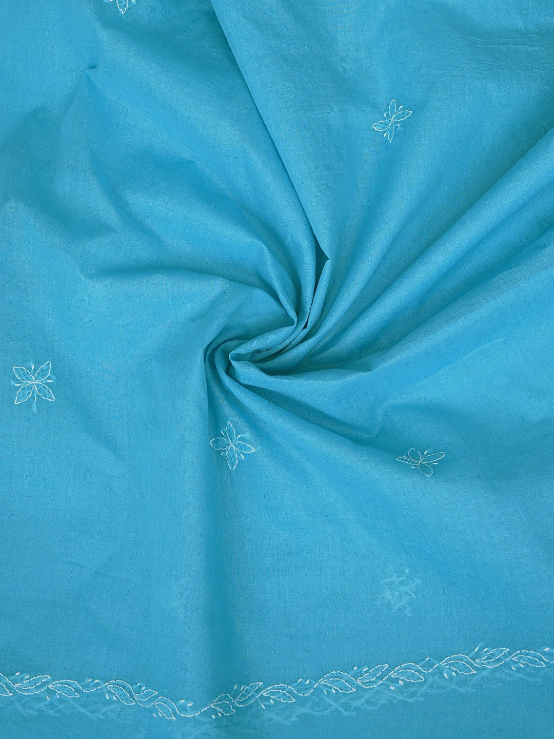 Ada Hand Embroidered Blue Cotton Lucknowi Chikankari Unstitched Suit Piece 01A882357
