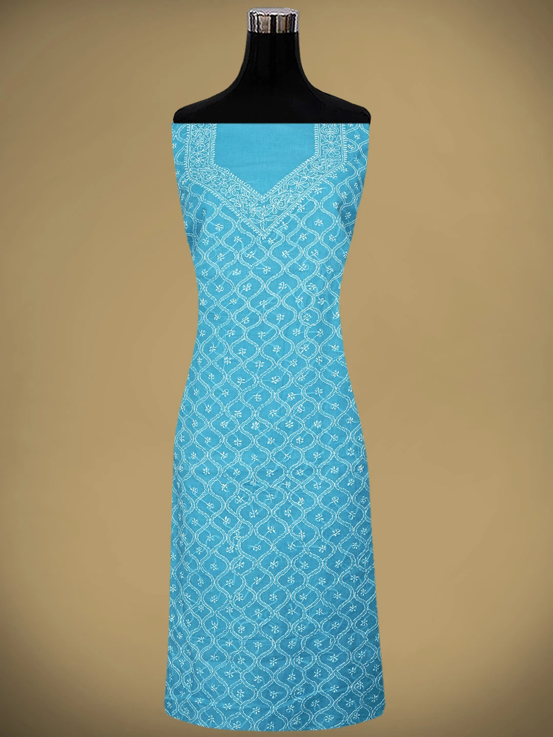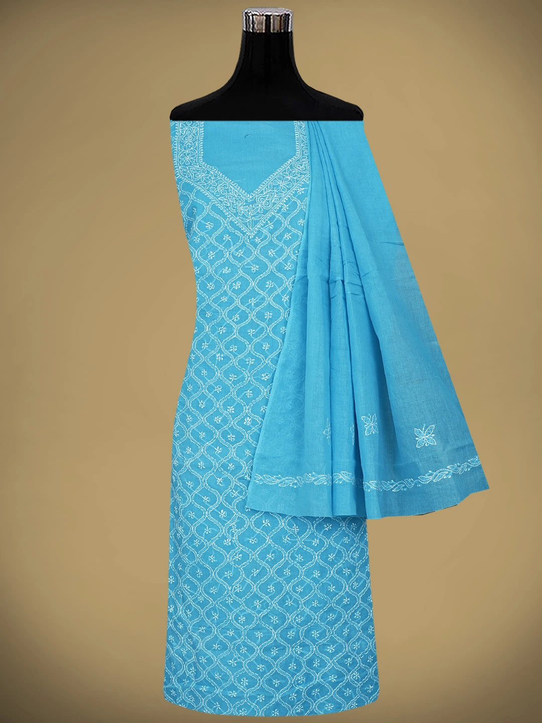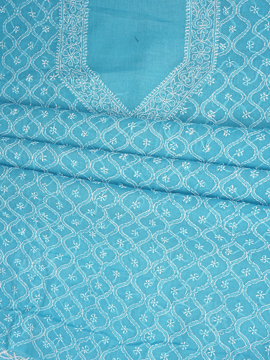 Ada Hand Embroidered Blue Cotton Lucknowi Chikankari Unstitched Suit Piece 01A882357