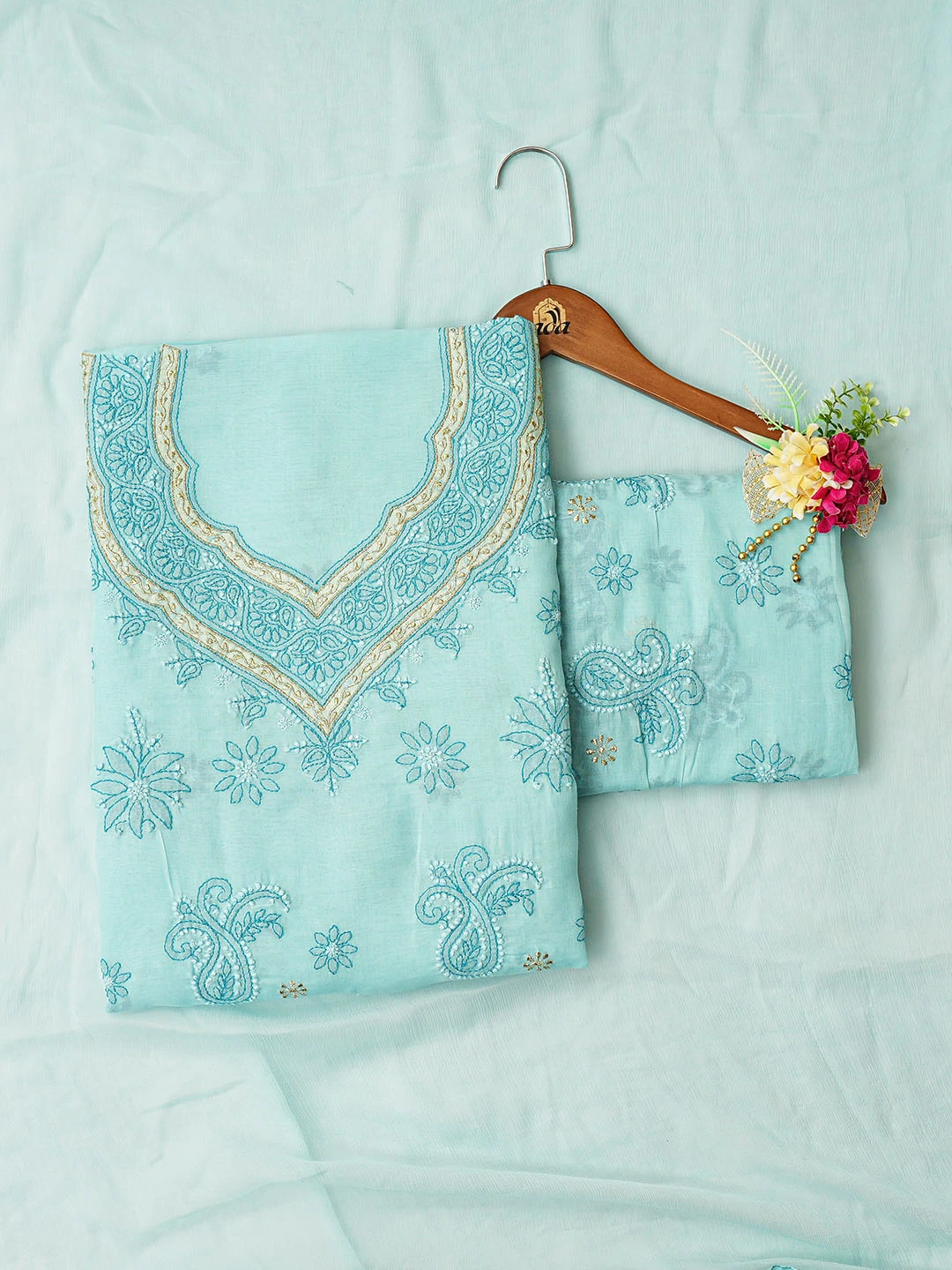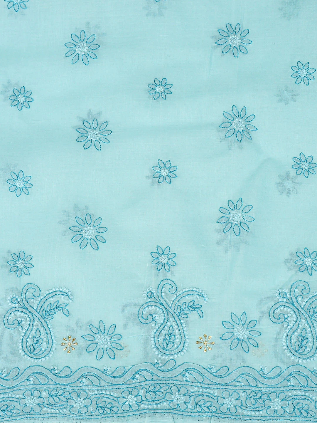 Ada Hand Embroidered Blue Cotton Lucknowi Chikankari Unstitched Suit Piece With Zari Taar Work 01A390501