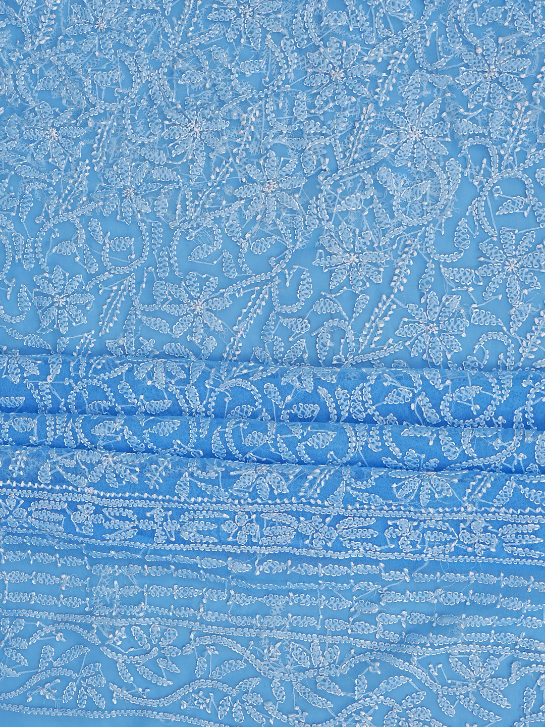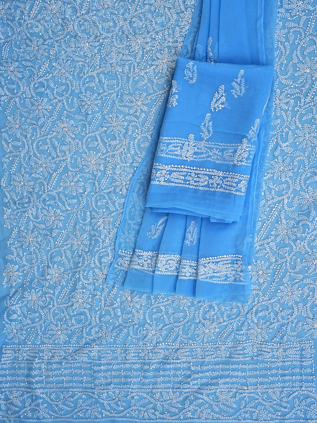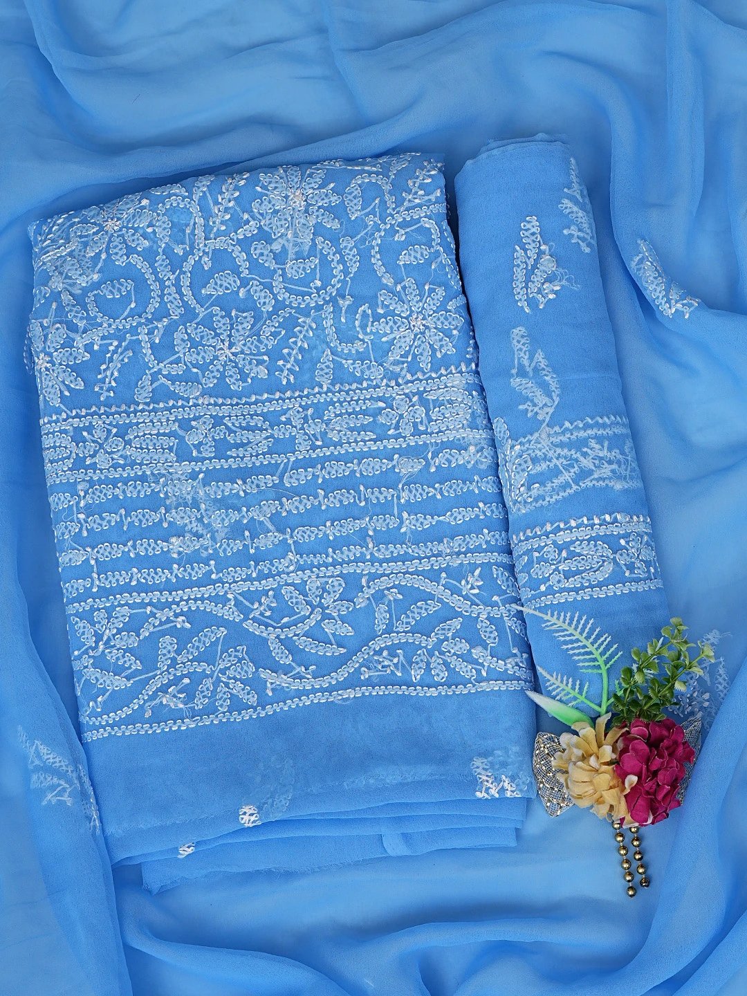 Ada Hand Embroidered Blue Georgette Lucknowi Chikankari Unstitched Suit Piece 01A878917