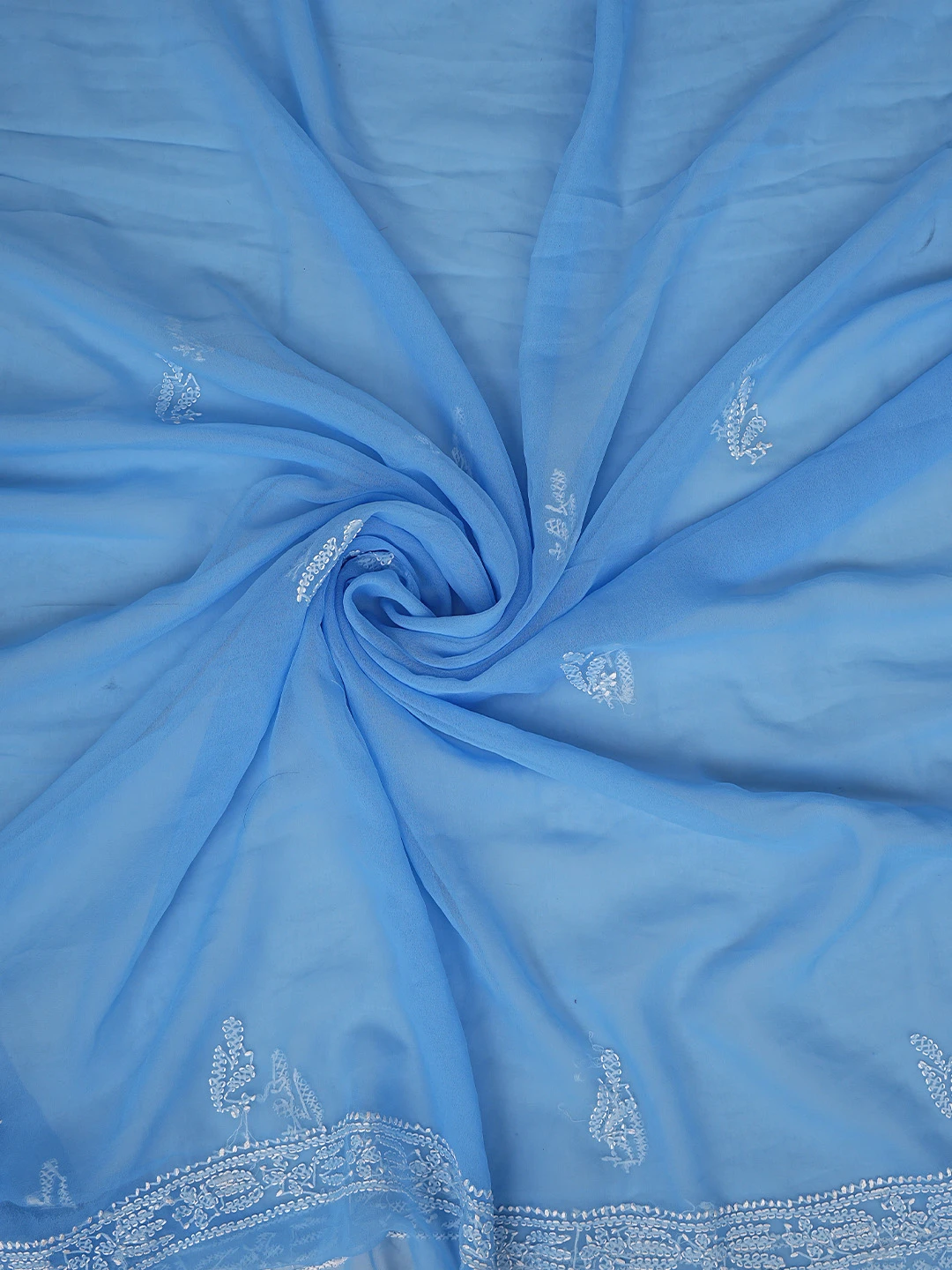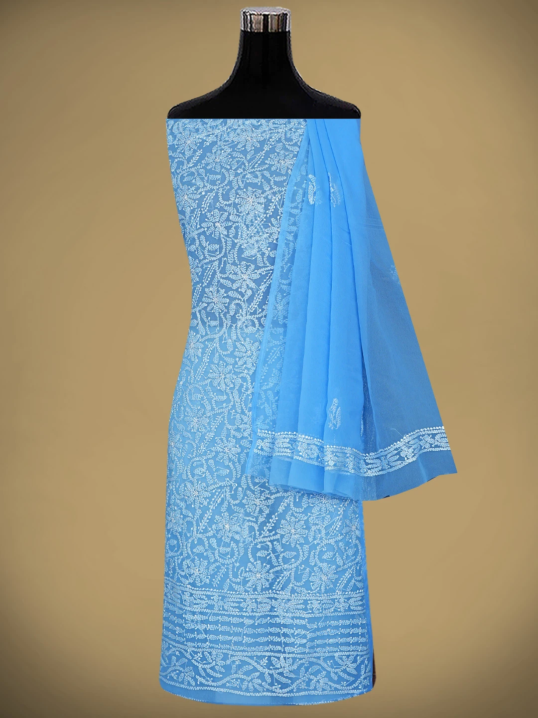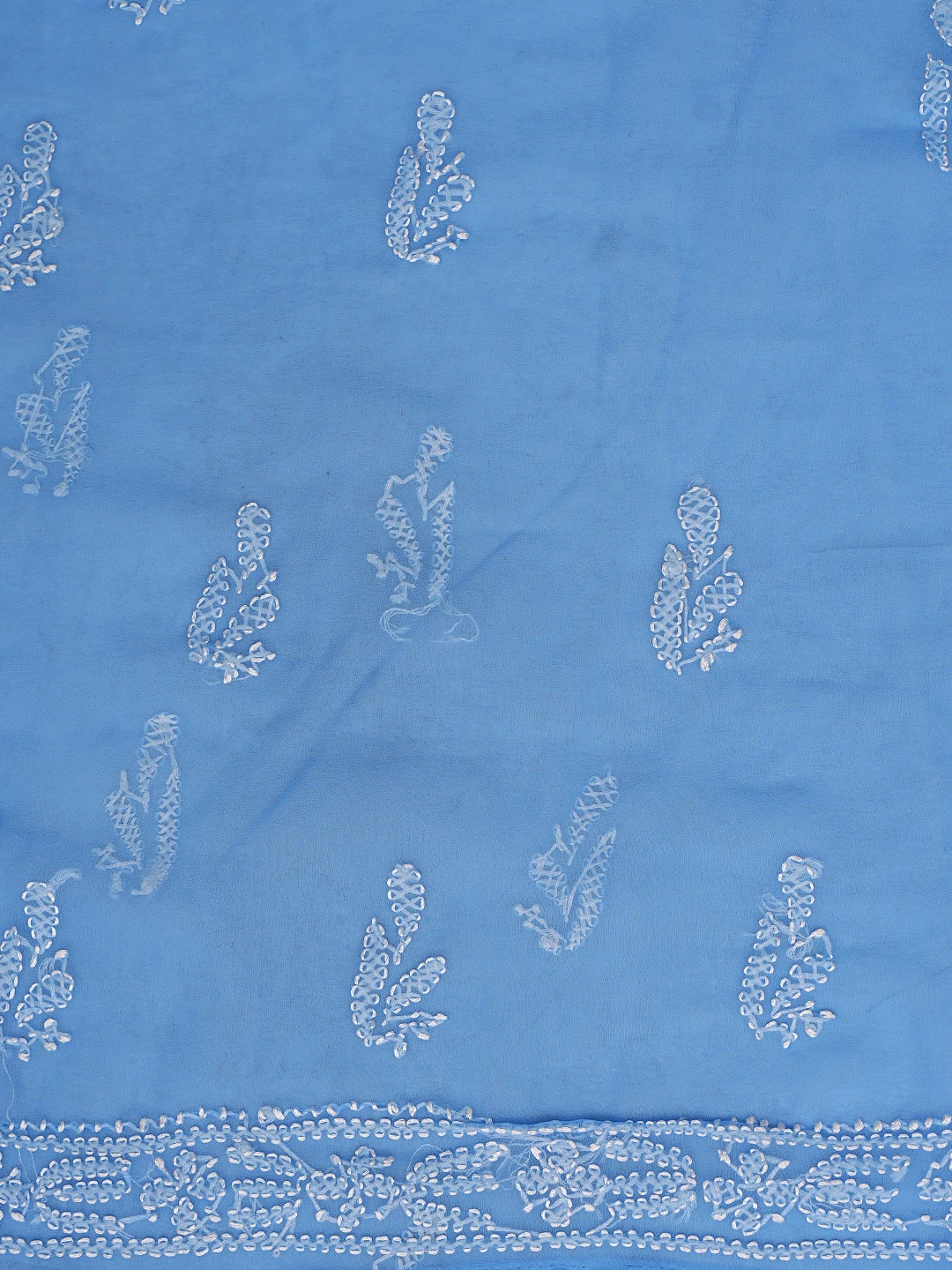 Ada Hand Embroidered Blue Georgette Lucknowi Chikankari Unstitched Suit Piece 01A878917