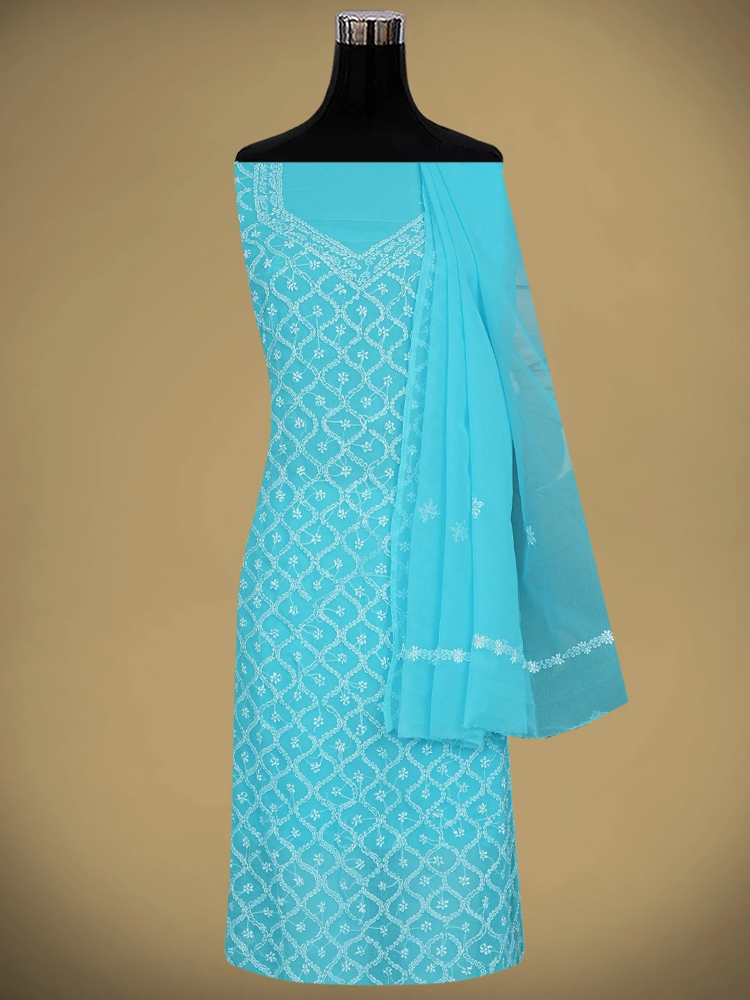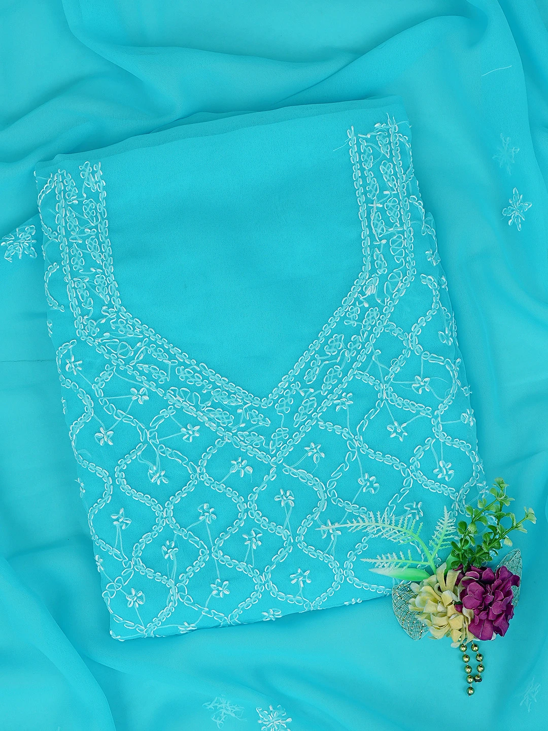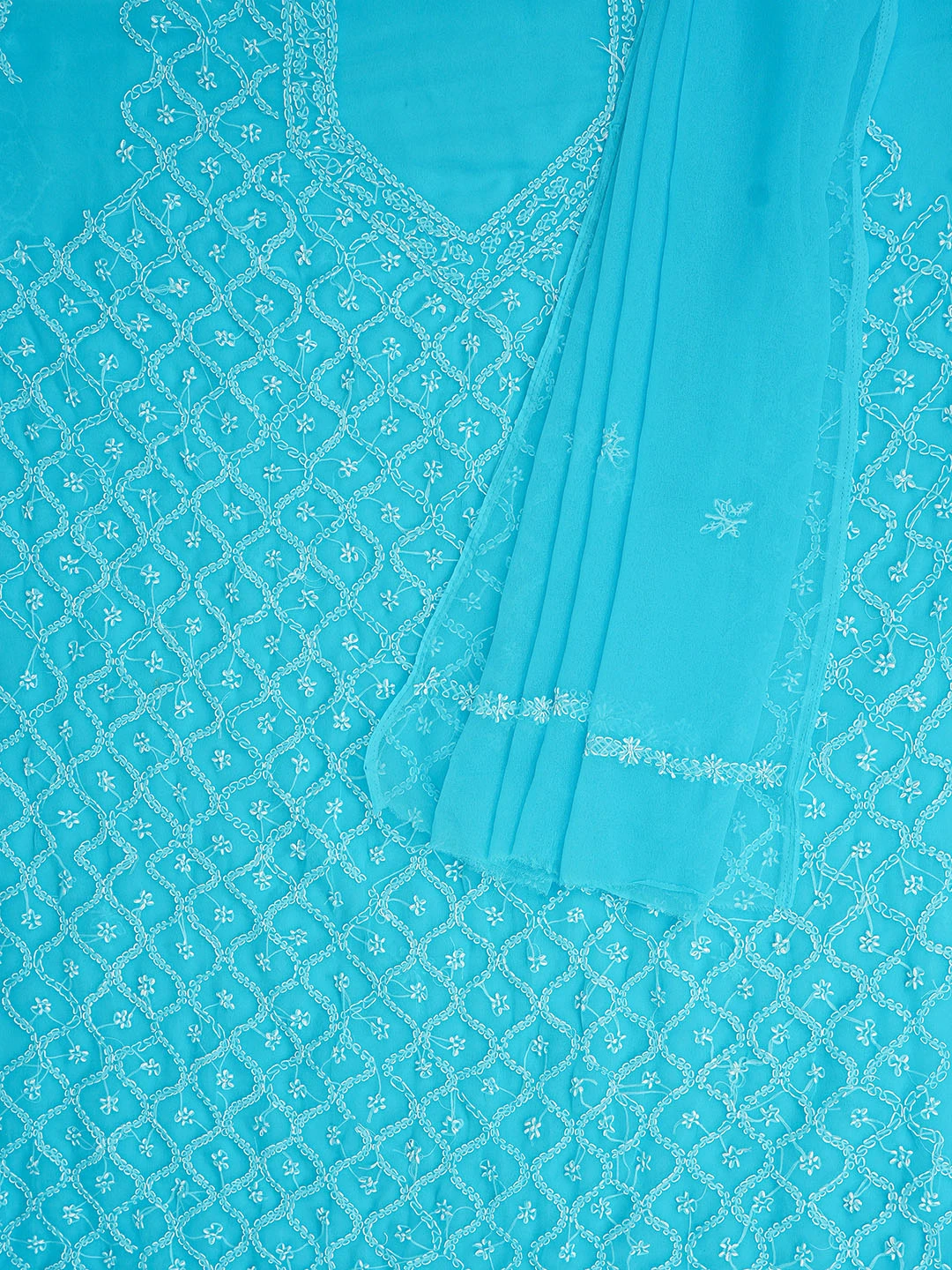 Ada Hand Embroidered Blue Georgette Lucknowi Chikankari Unstitched Suit Piece 01A879216