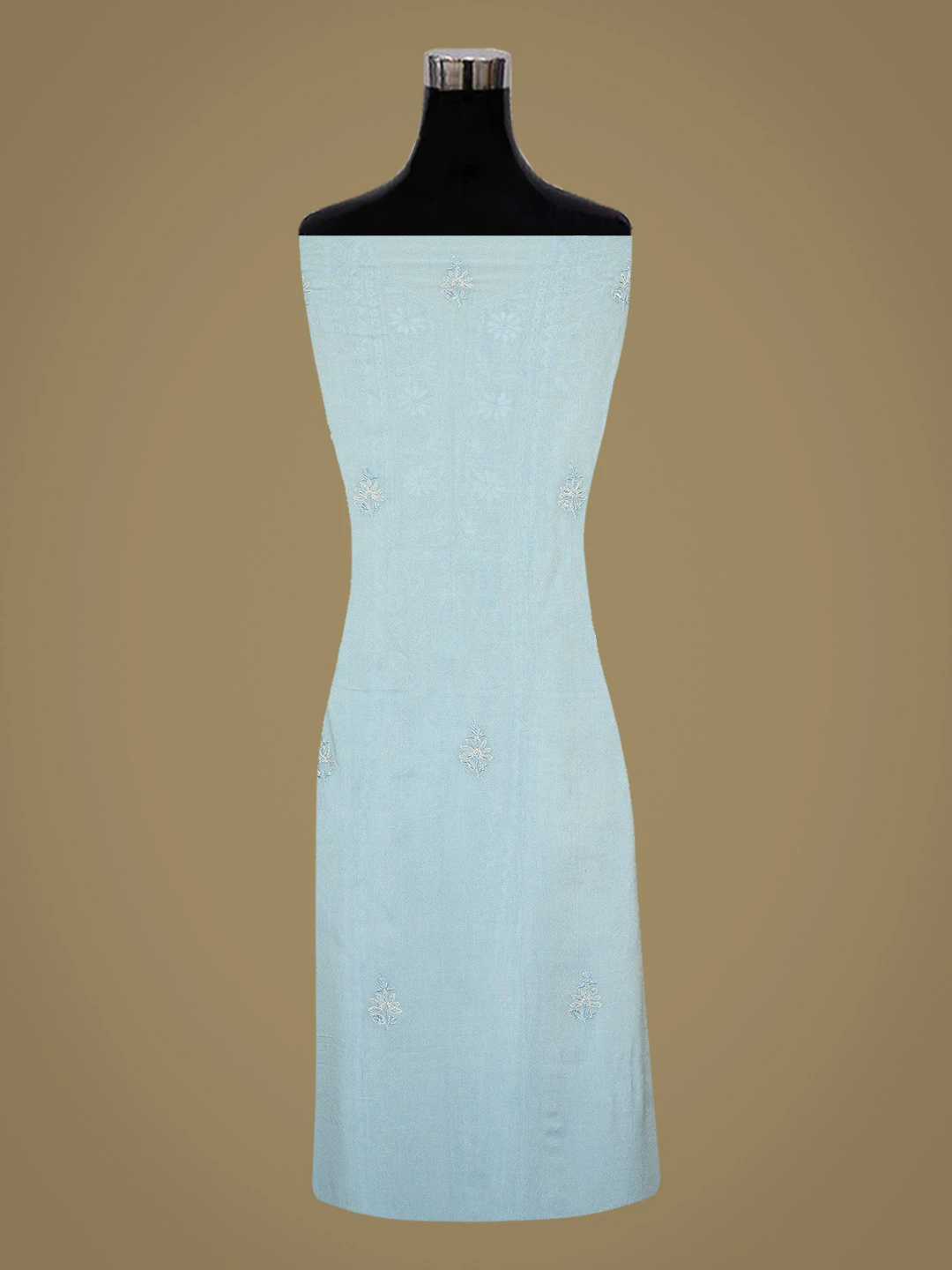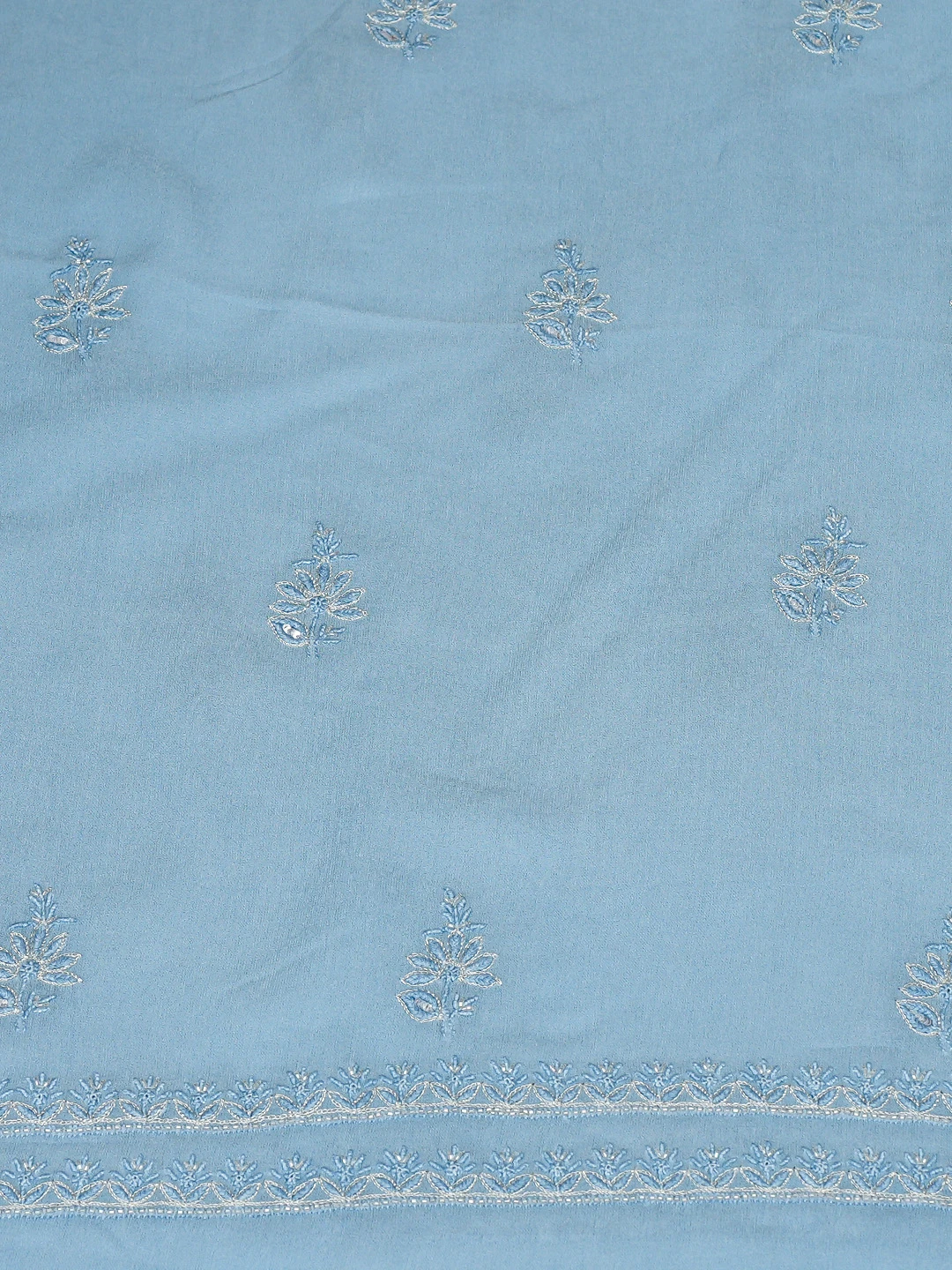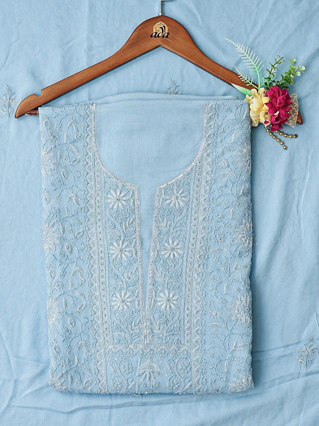 Ada Hand Embroidered Blue Viscose Georgette Lucknowi Chikankari Unstitched Kurta Dupatta Set With Sequinned Work 01A754678
