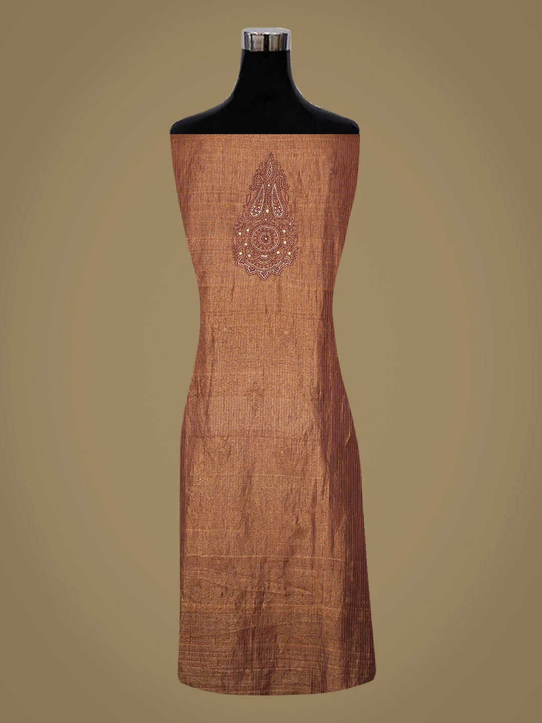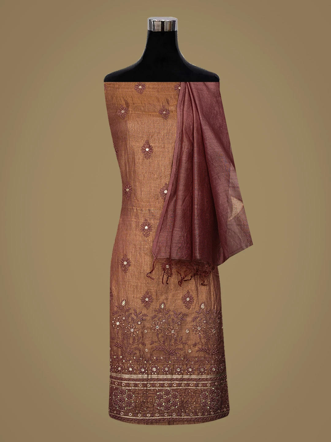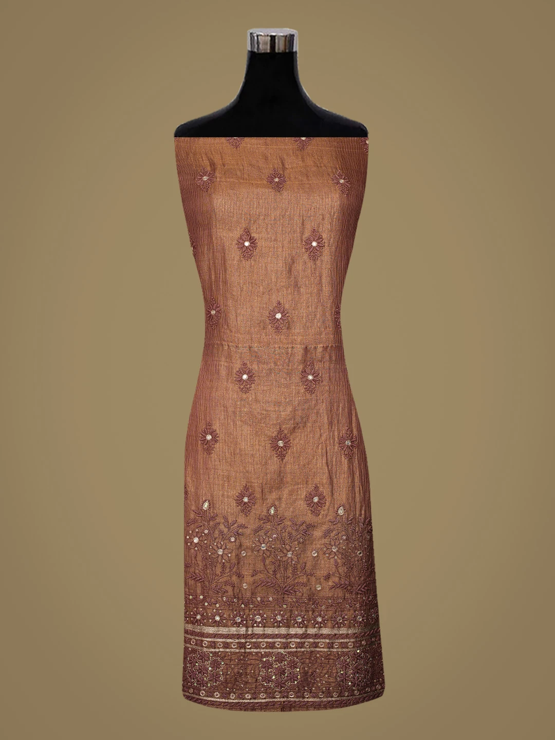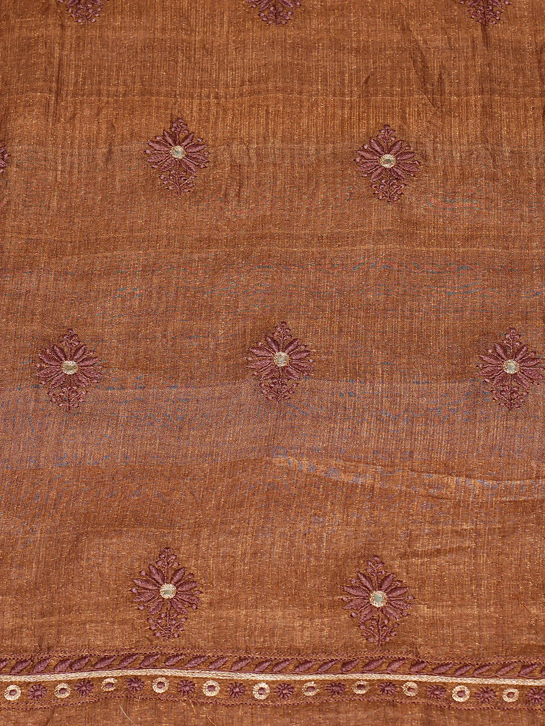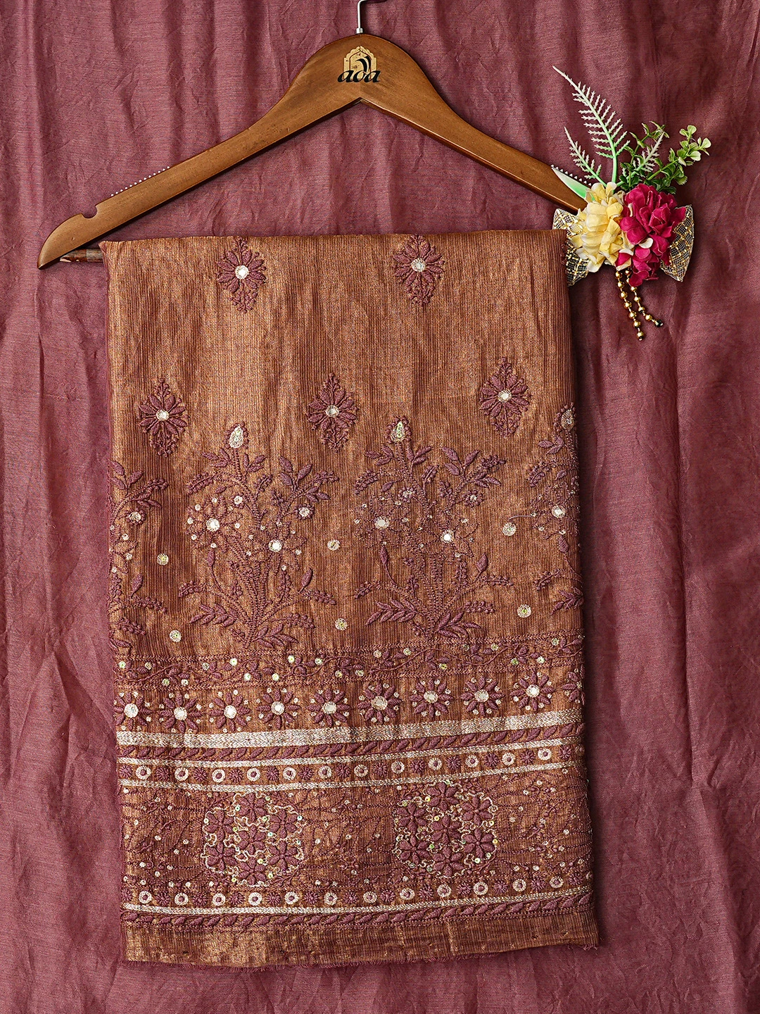 Ada Hand Embroidered Brown Tissue Lucknowi Chikankari Unstitched Kurta Dupatta Set With Mirror Work 01A332228