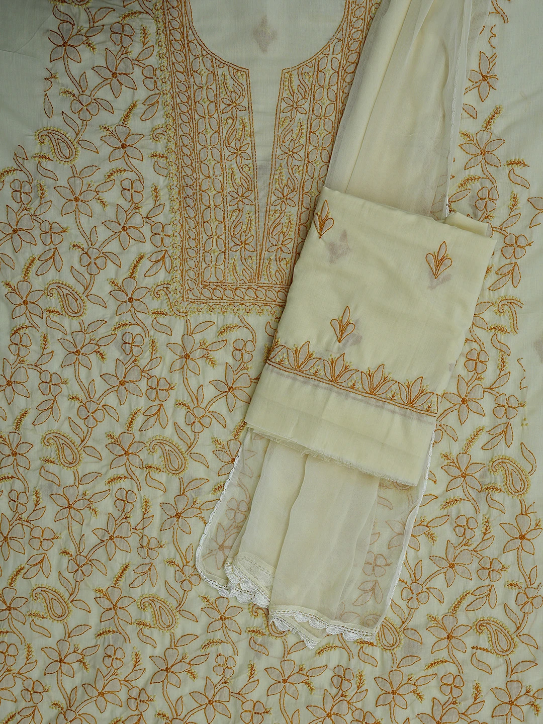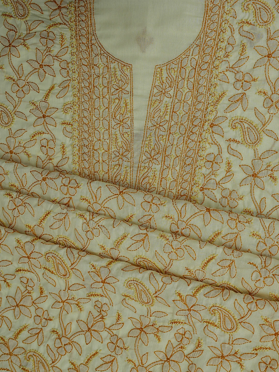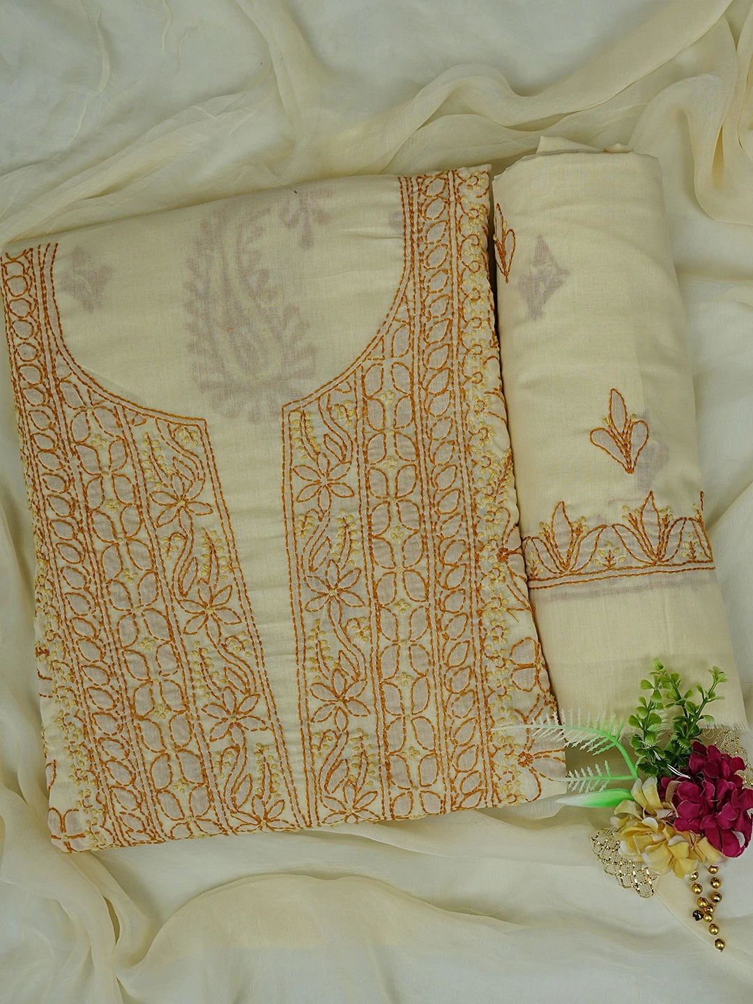 Ada Hand Embroidered Buff Fawn Cotton Lucknowi Chikankari Unstitched Suit Piece 01A829723