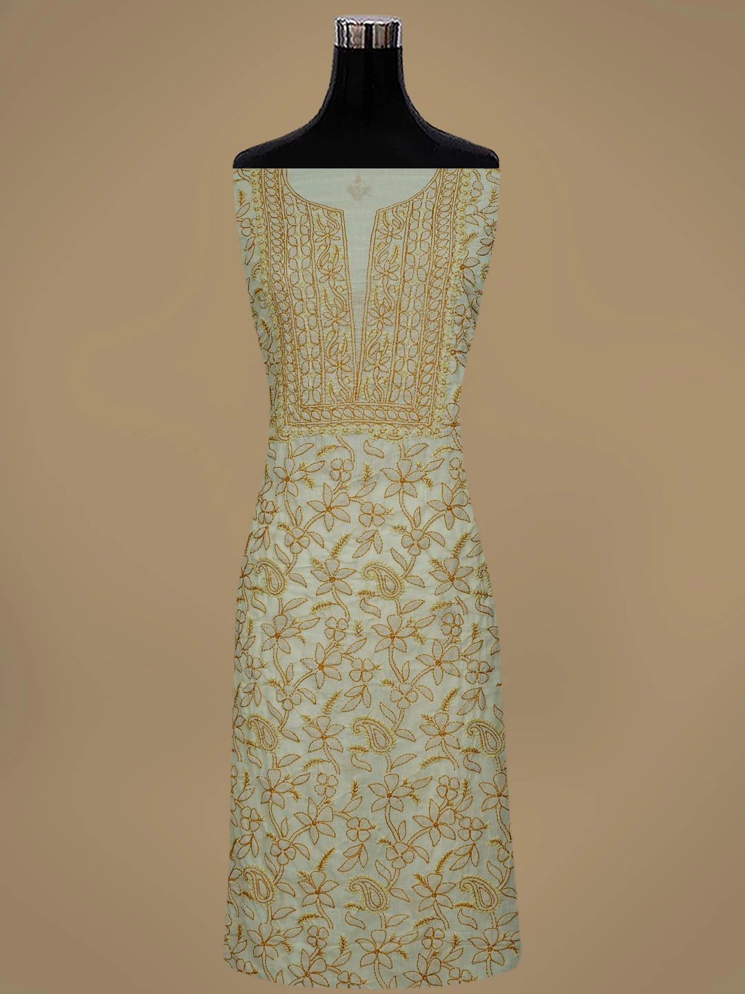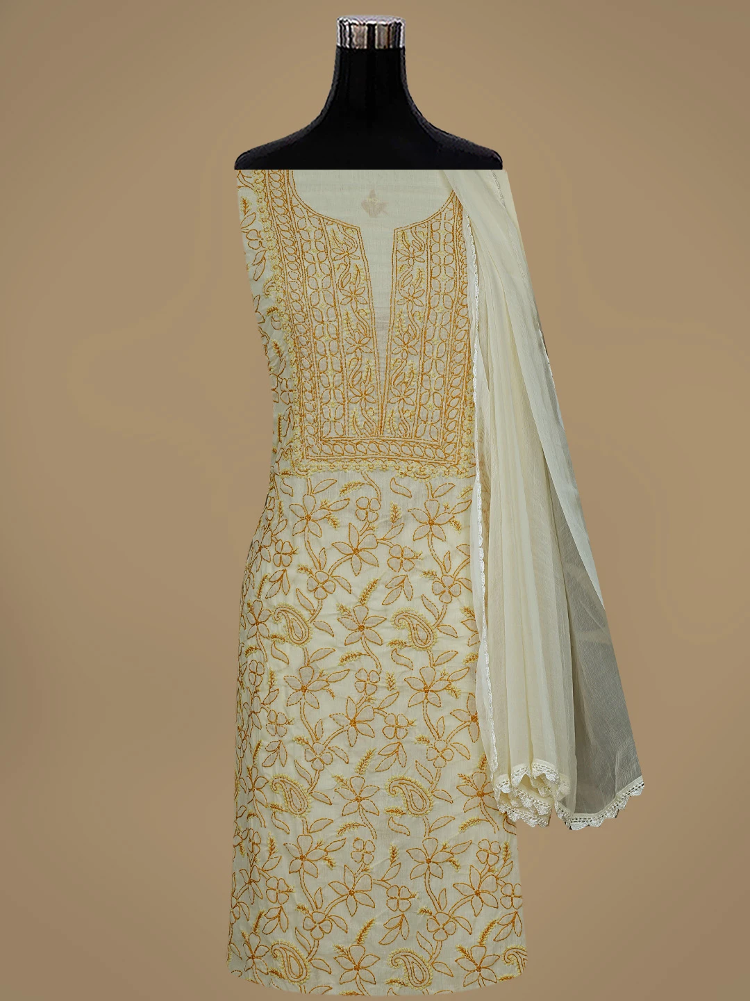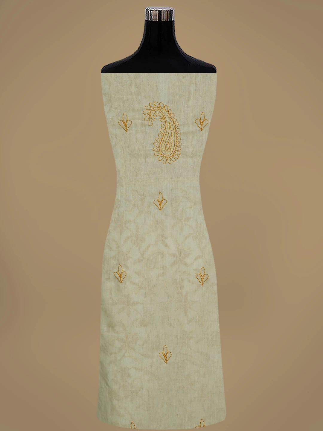 Ada Hand Embroidered Buff Fawn Cotton Lucknowi Chikankari Unstitched Suit Piece 01A829723
