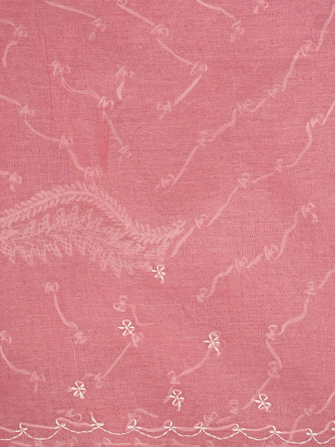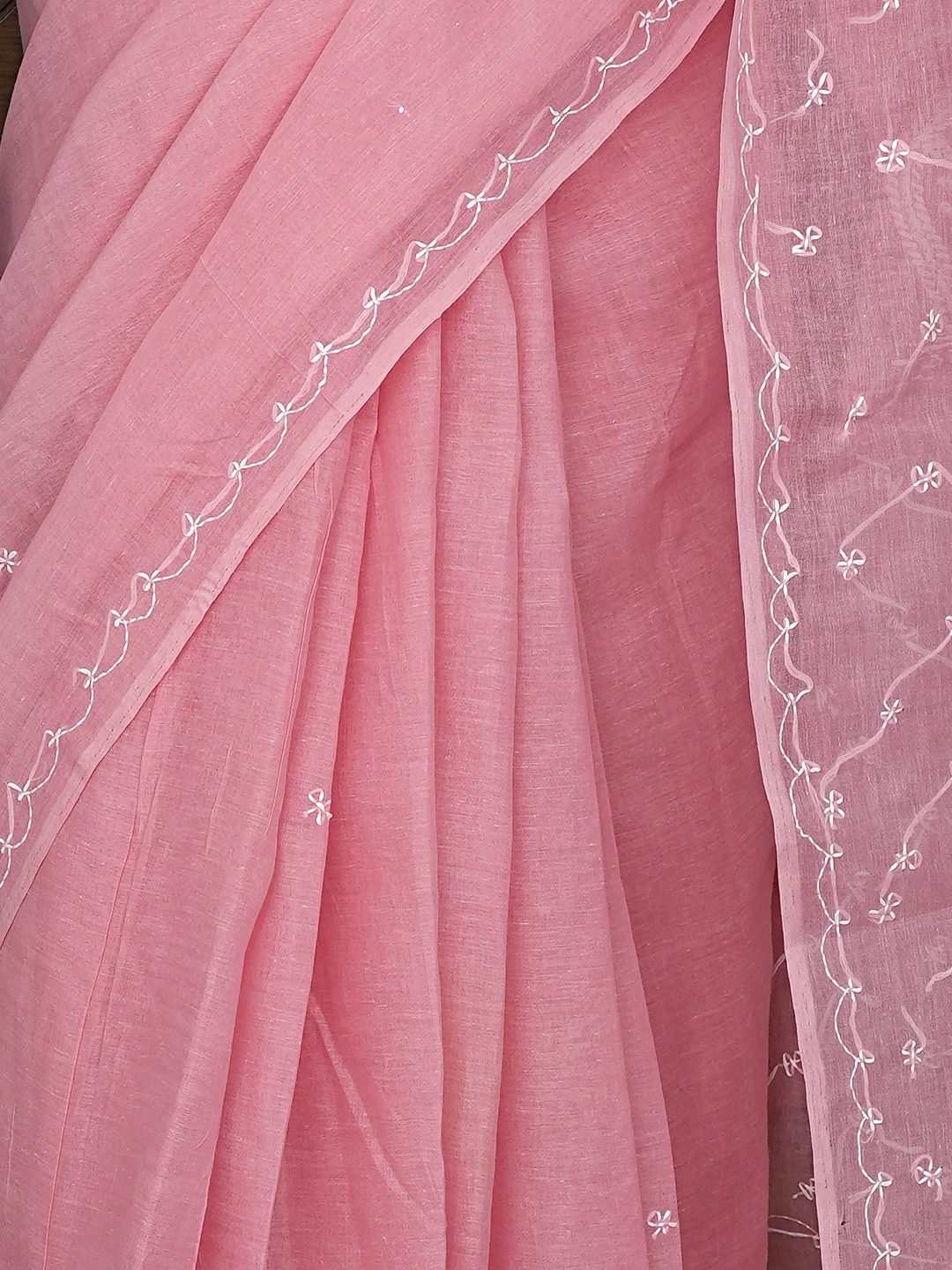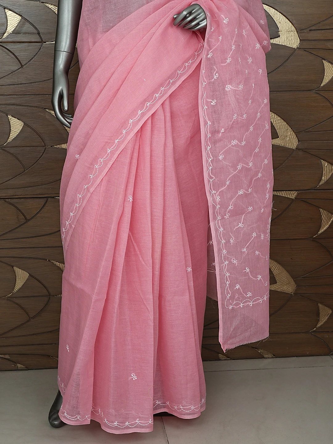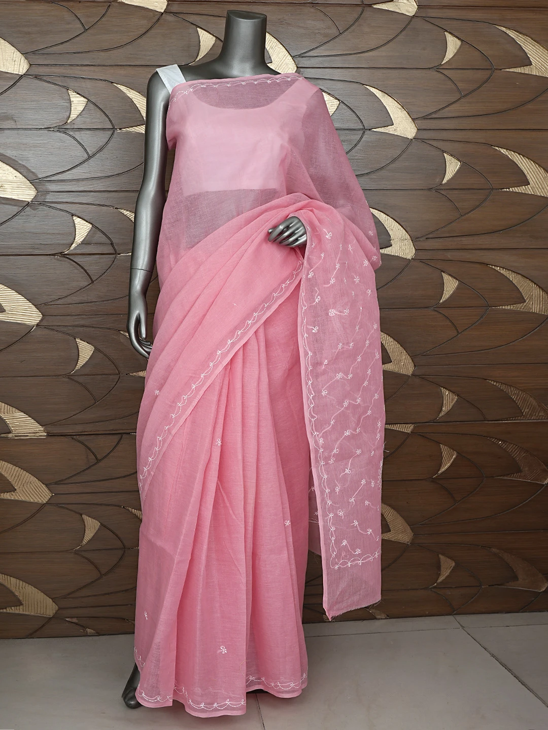 Ada Hand Embroidered Carrot Pink Cotton Lucknowi Chikankari Saree and Blouse 01A882911