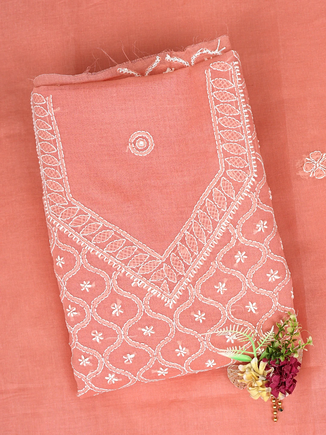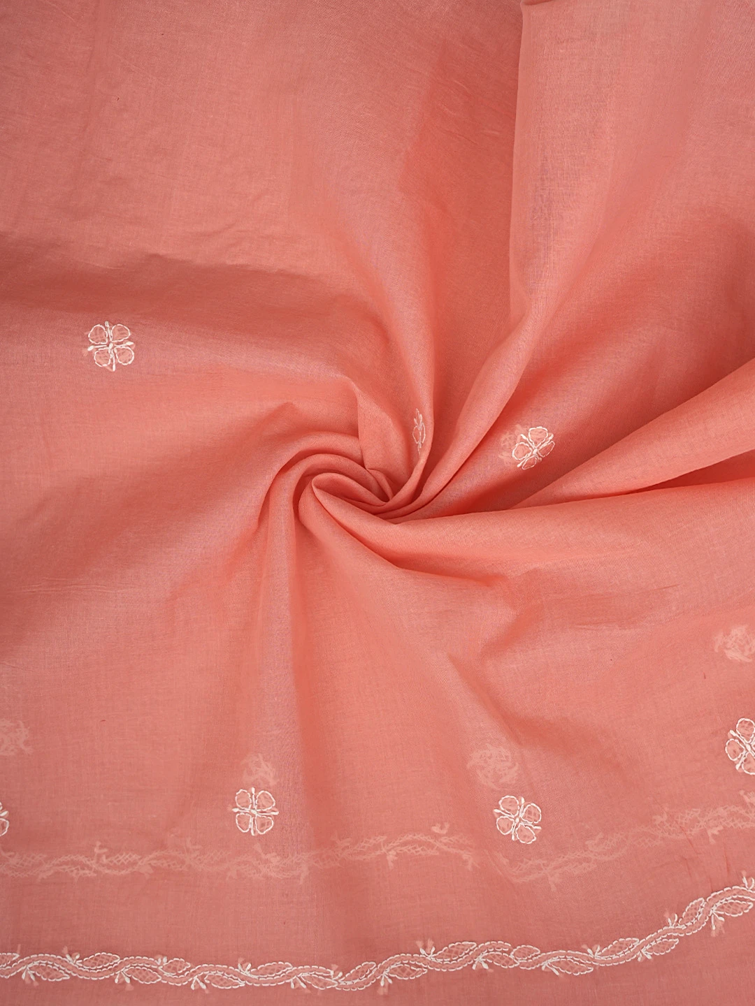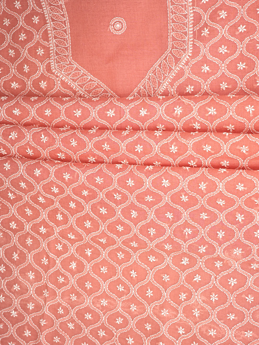 Ada Hand Embroidered Carrot Pink Cotton Lucknowi Chikankari Unstitched Suit Piece 01A882349