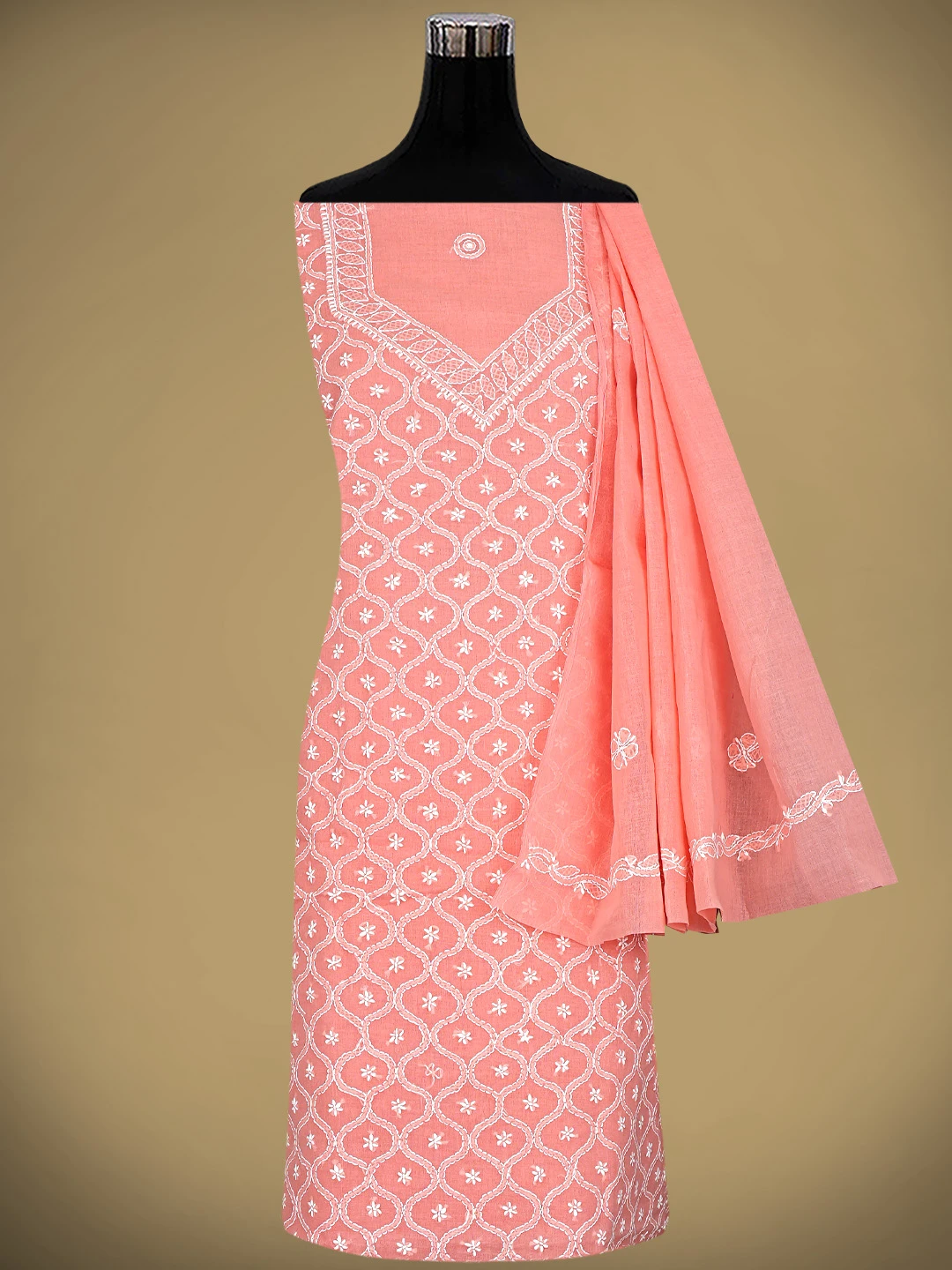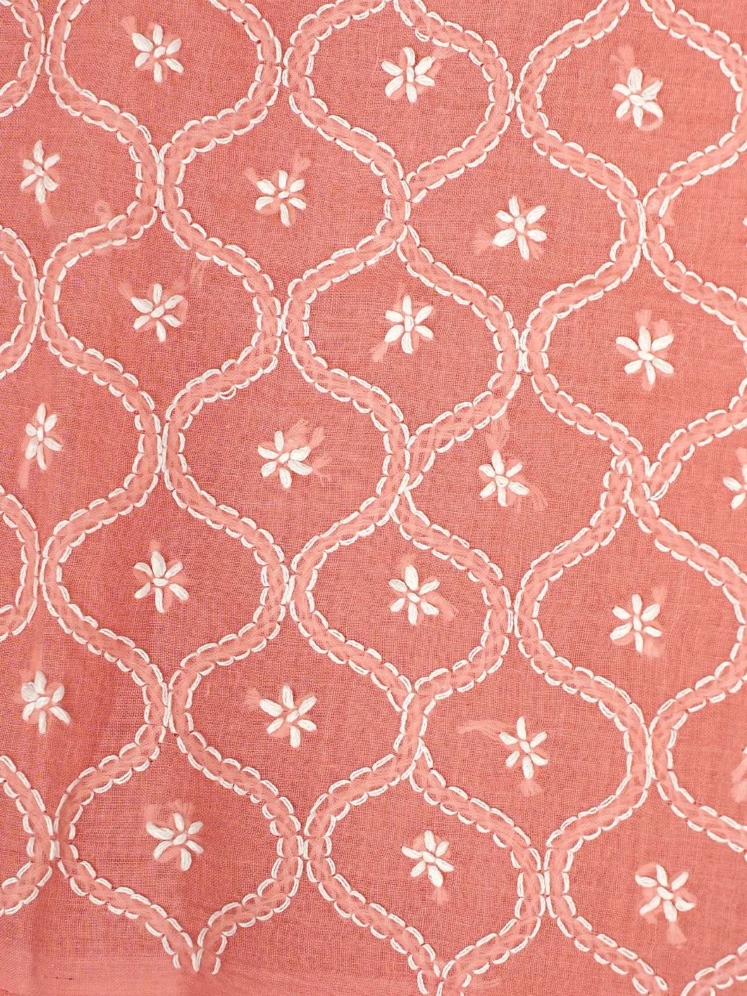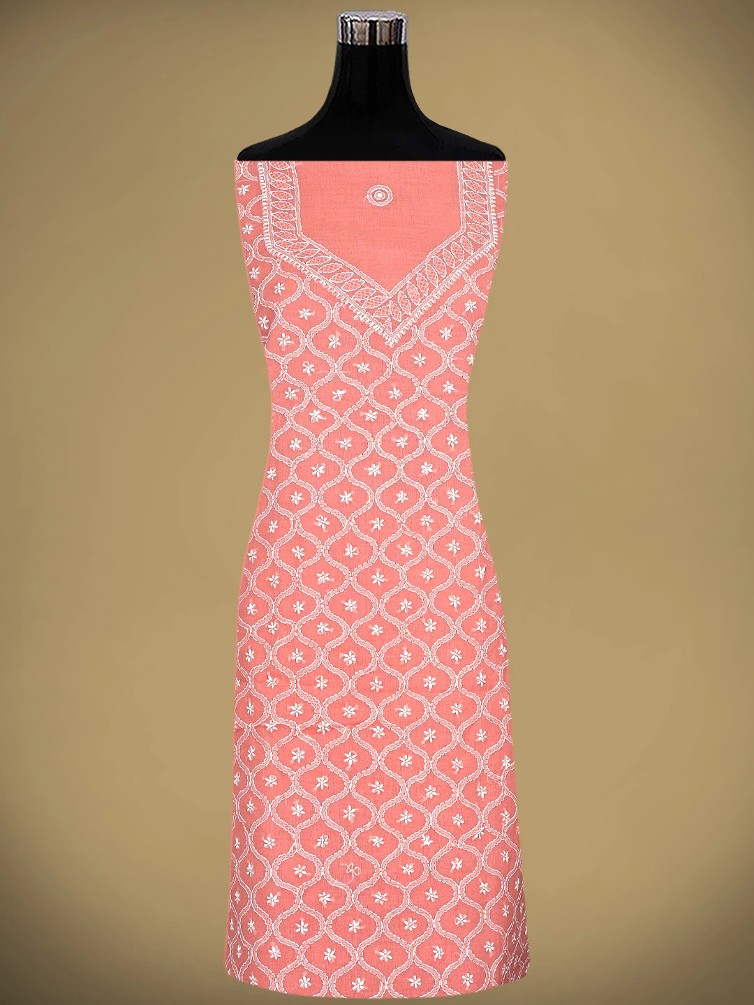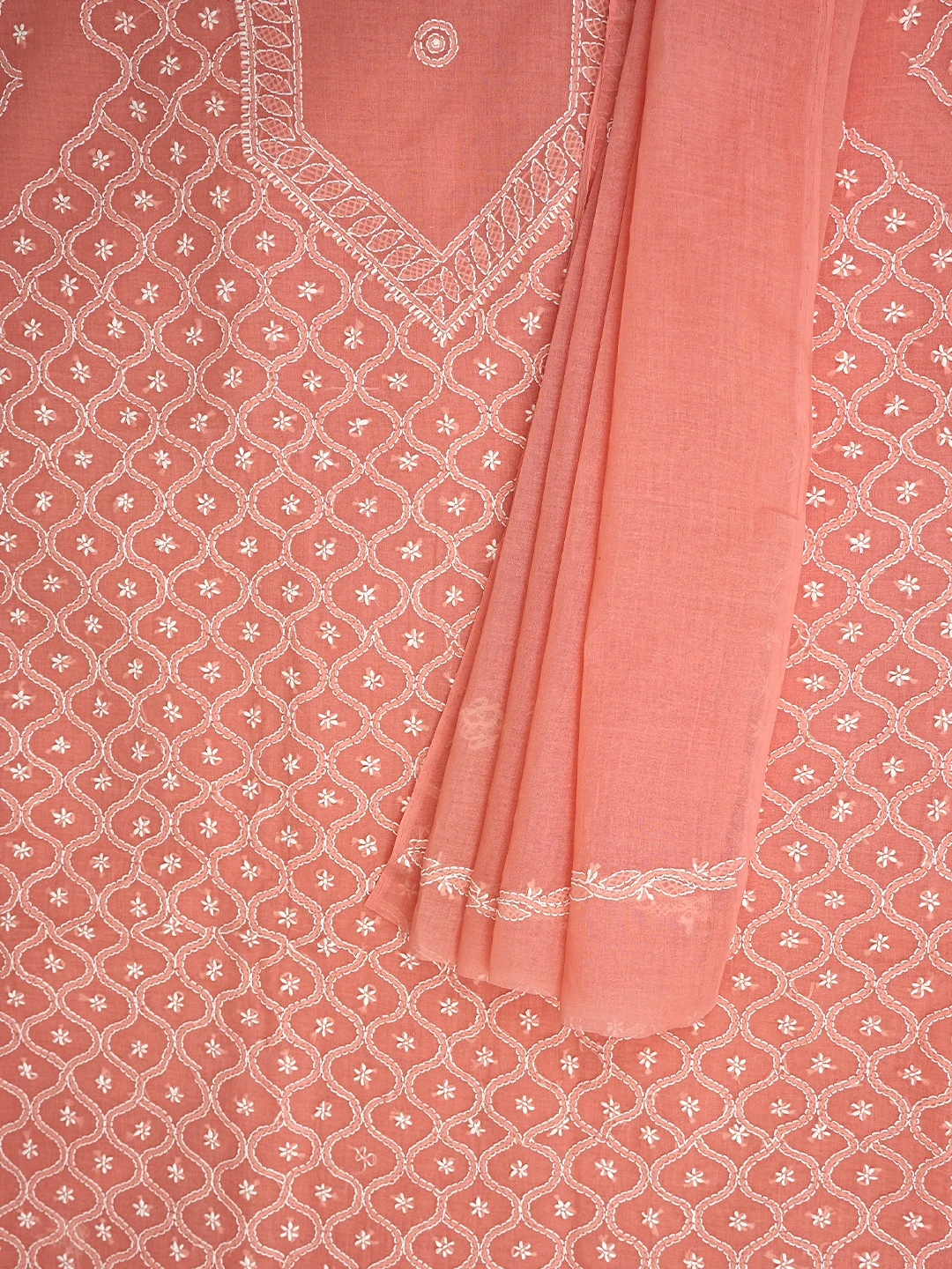 Ada Hand Embroidered Carrot Pink Cotton Lucknowi Chikankari Unstitched Suit Piece 01A882349