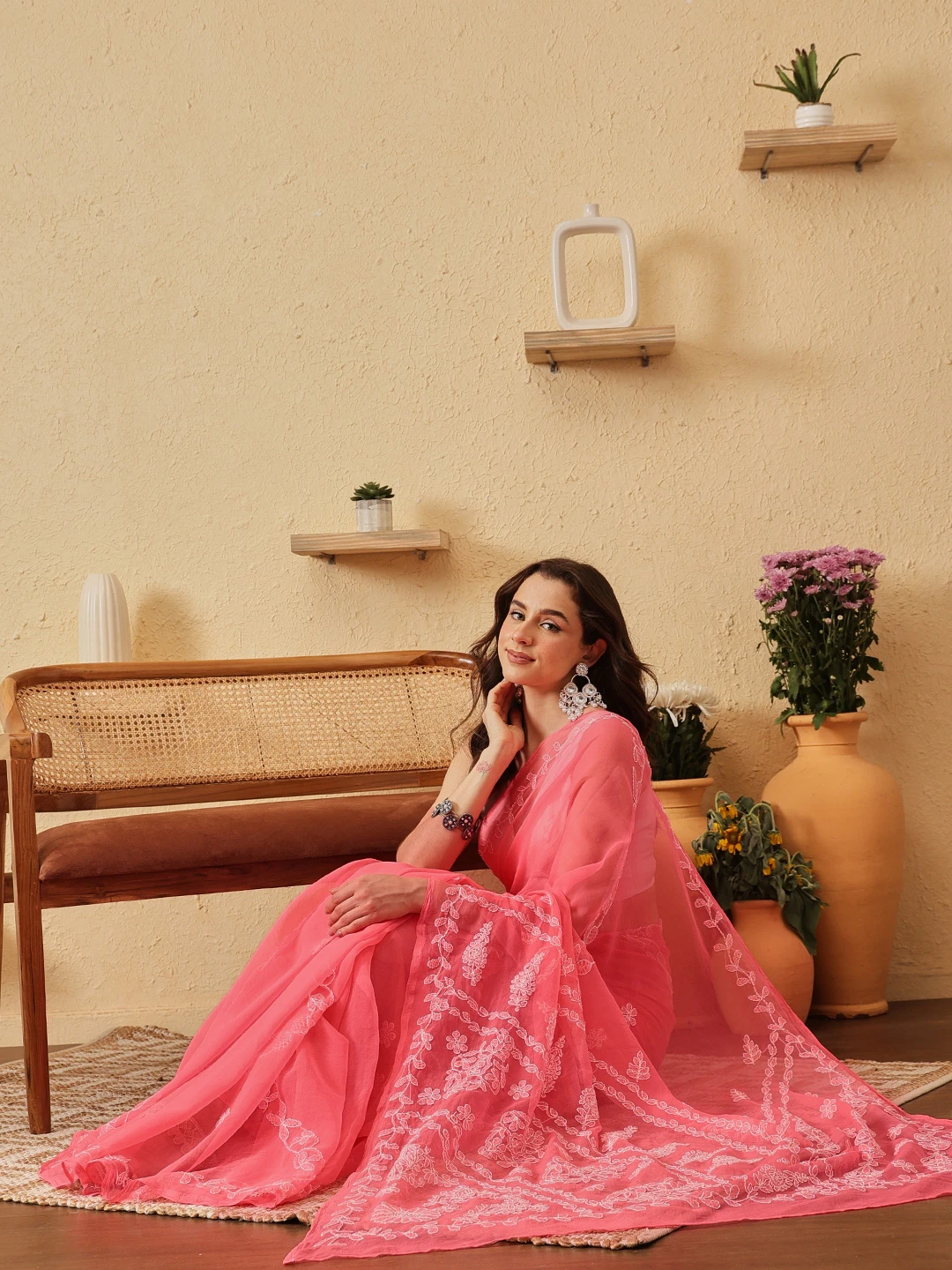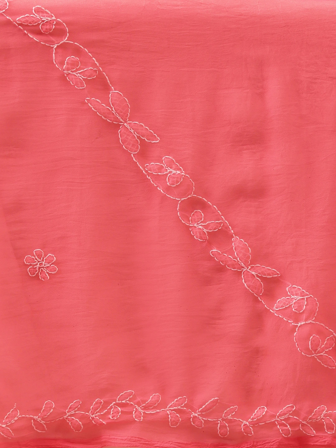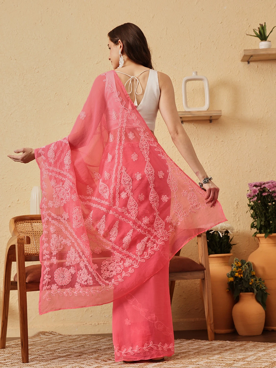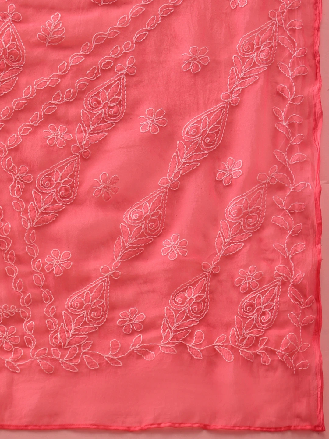 Ada Hand Embroidered Carrot Pink Georgette Lucknowi Chikankari Saree With Blouse 01A853813