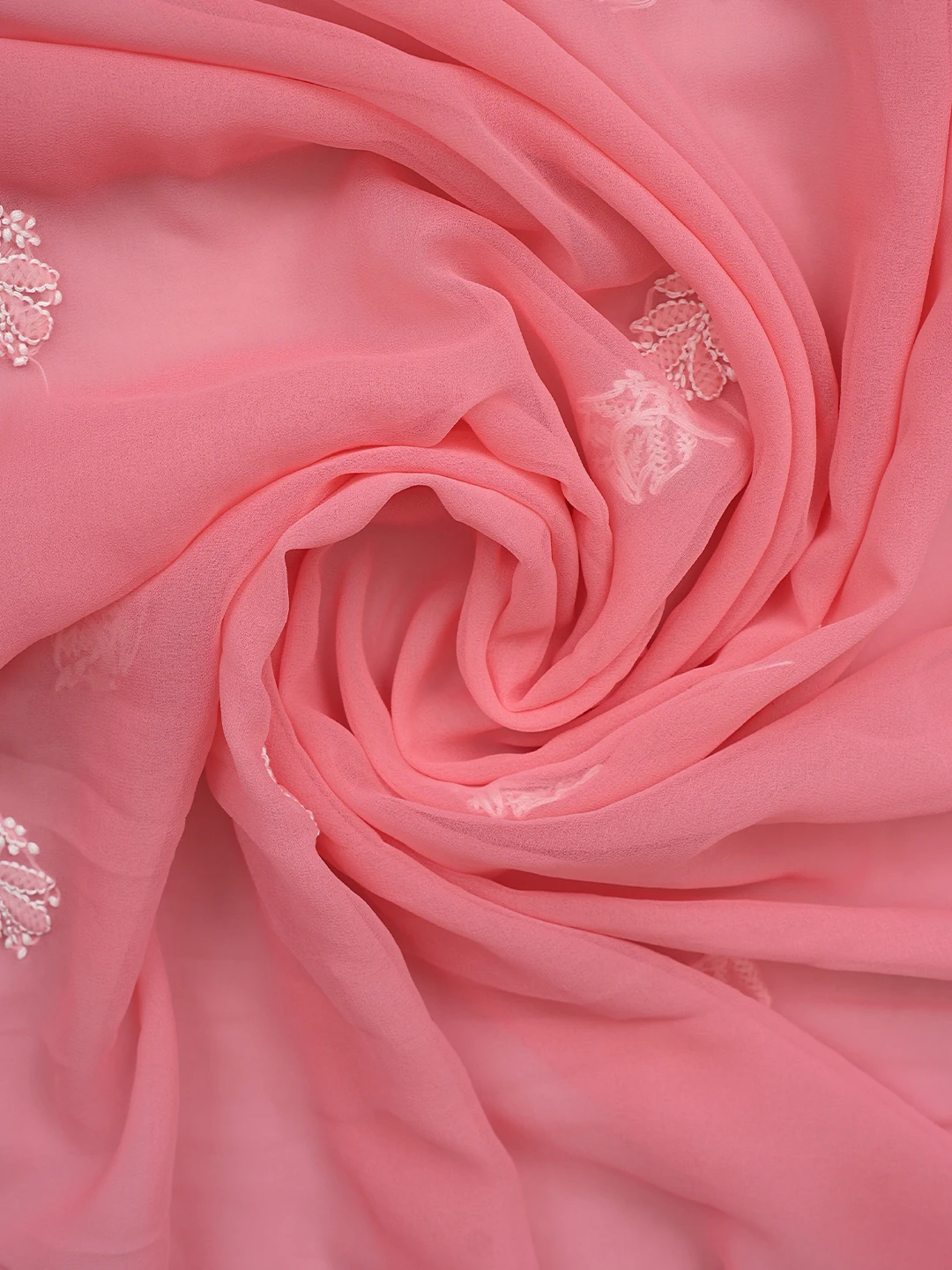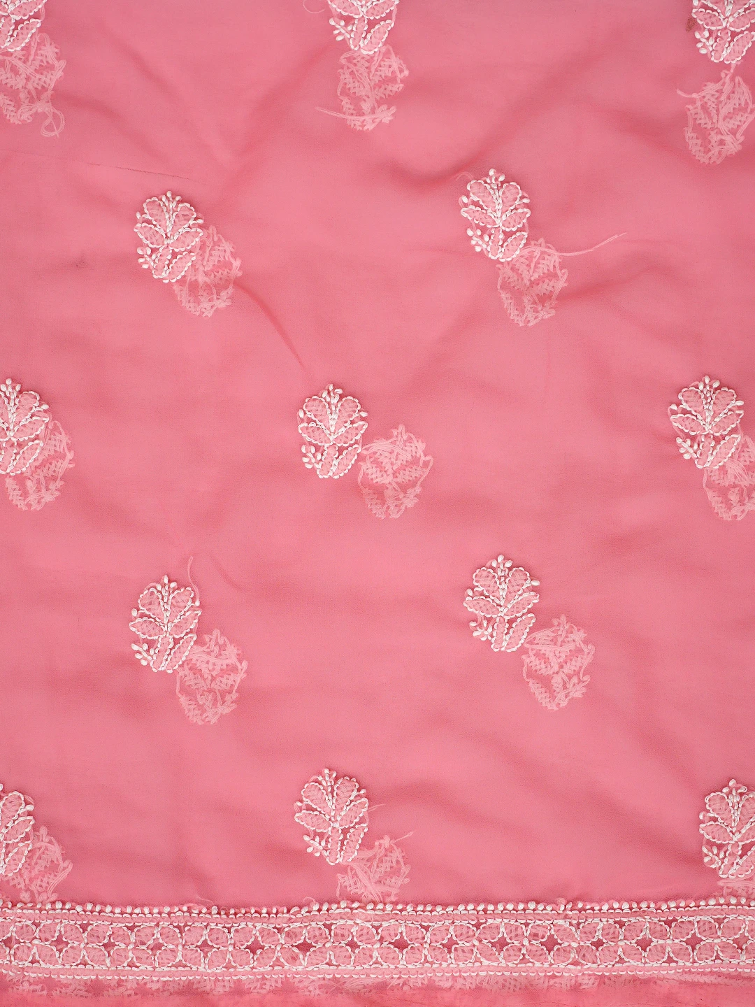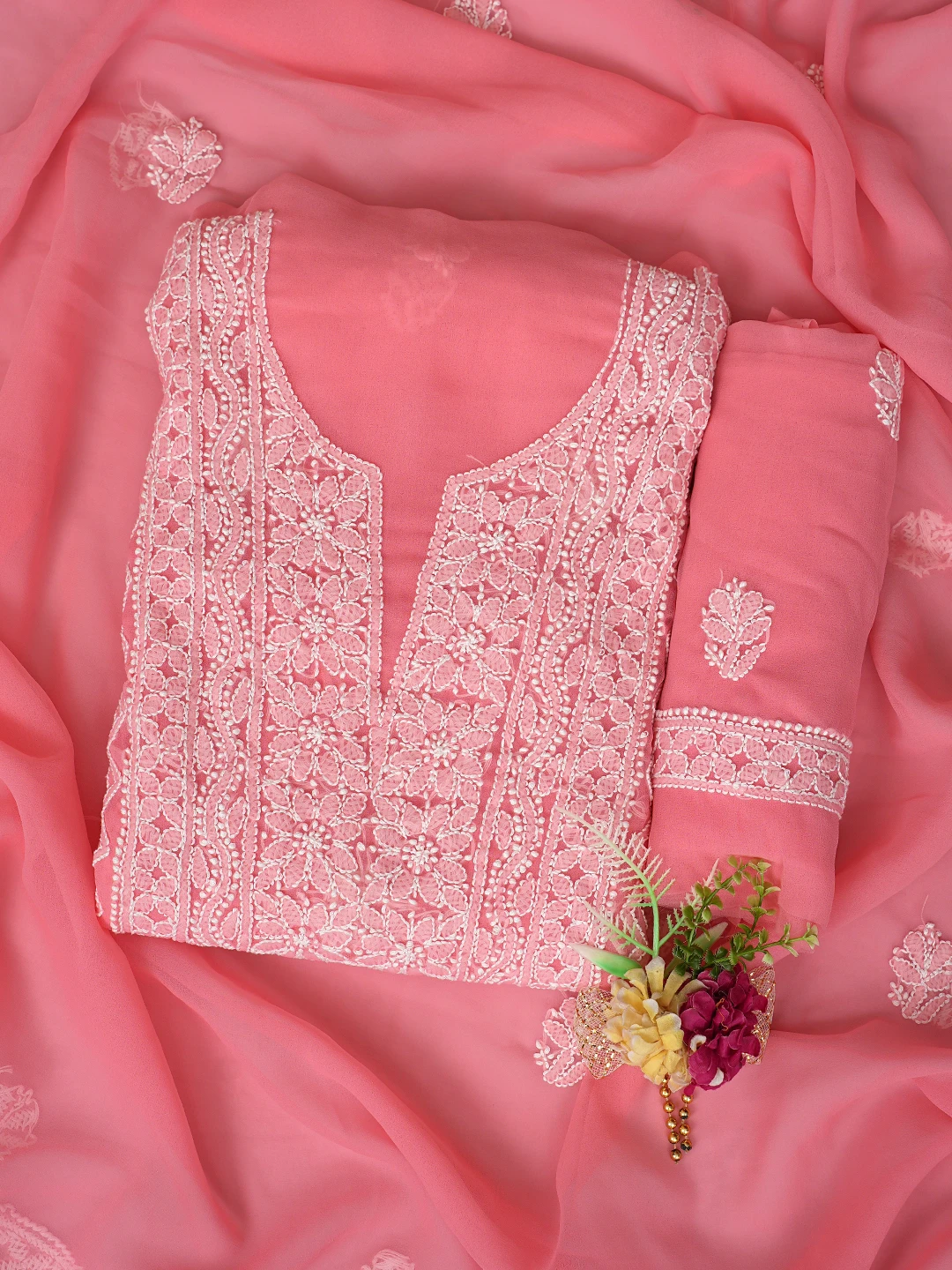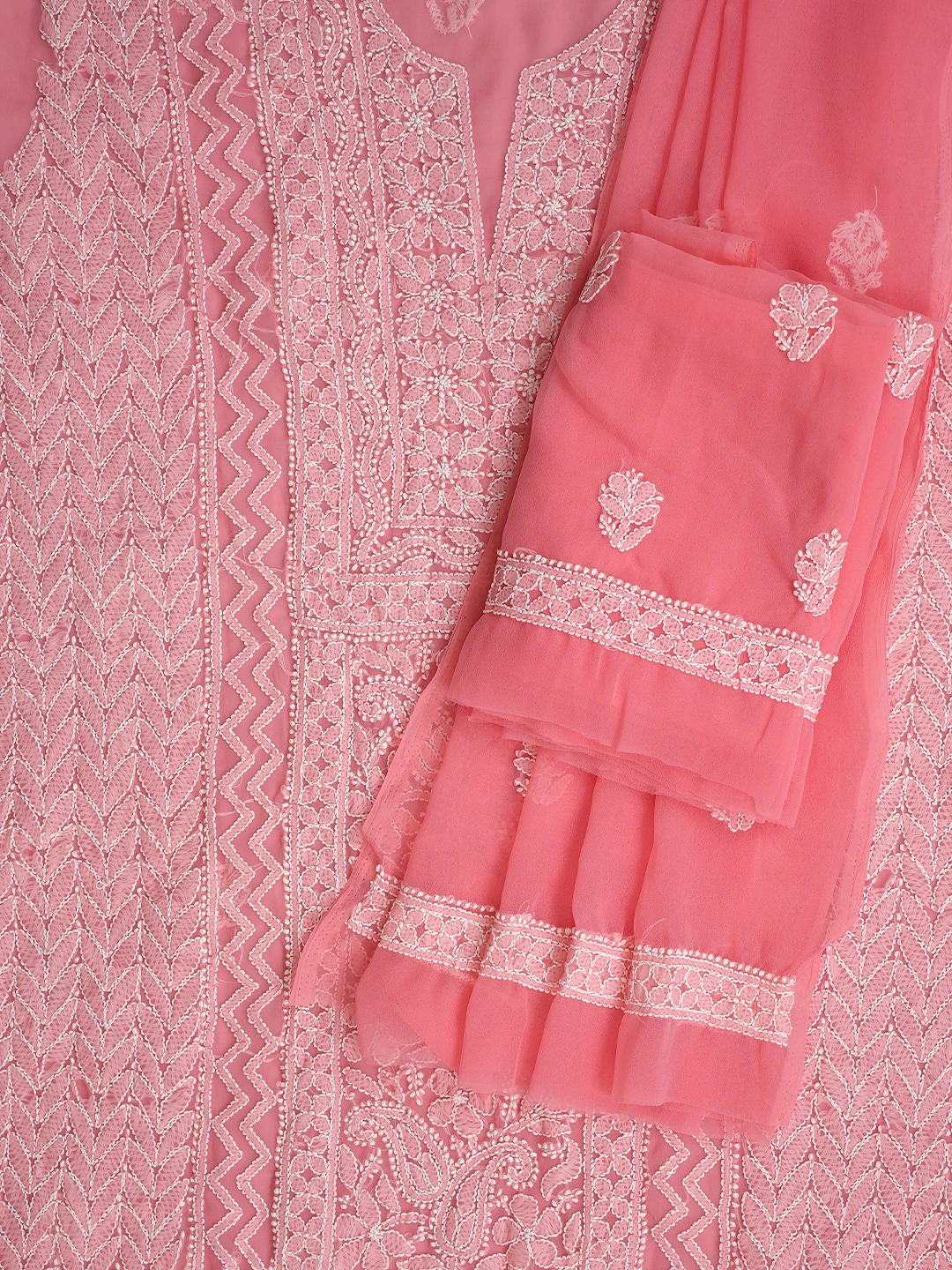 Ada Hand Embroidered Carrot Pink Georgette Lucknowi Chikankari Unstitched Suit Piece 01A866981