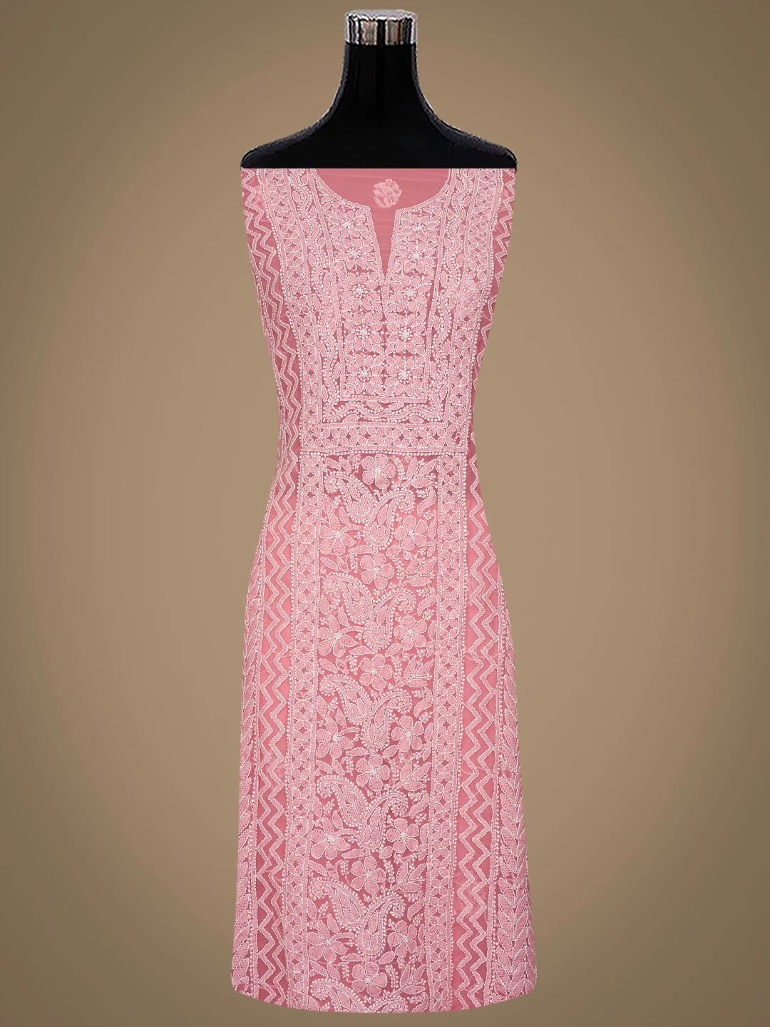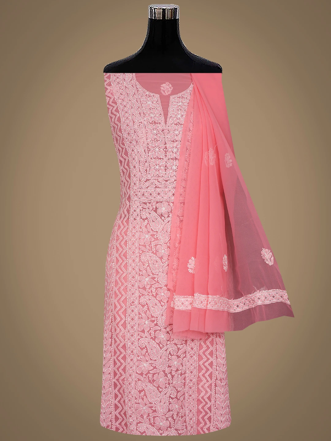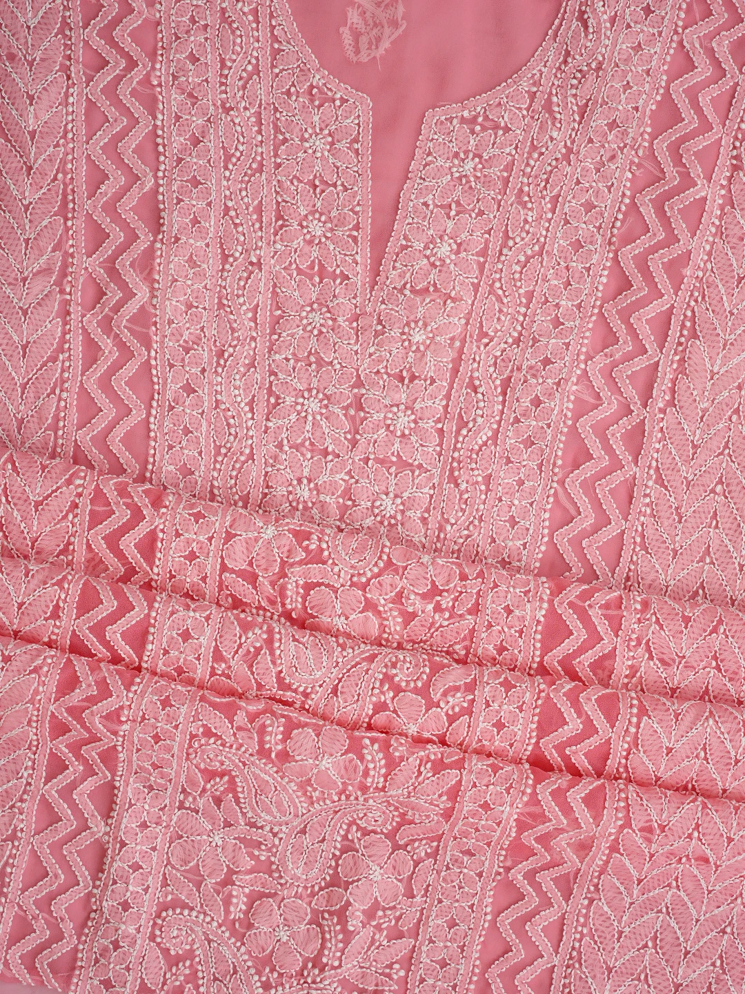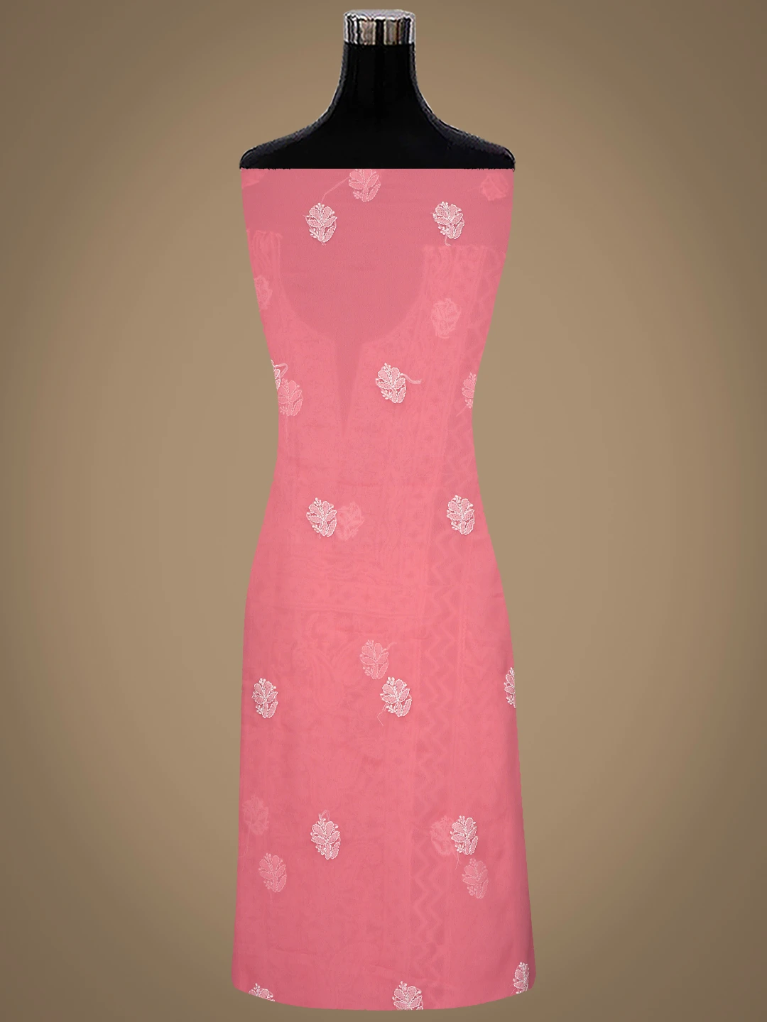 Ada Hand Embroidered Carrot Pink Georgette Lucknowi Chikankari Unstitched Suit Piece 01A866981