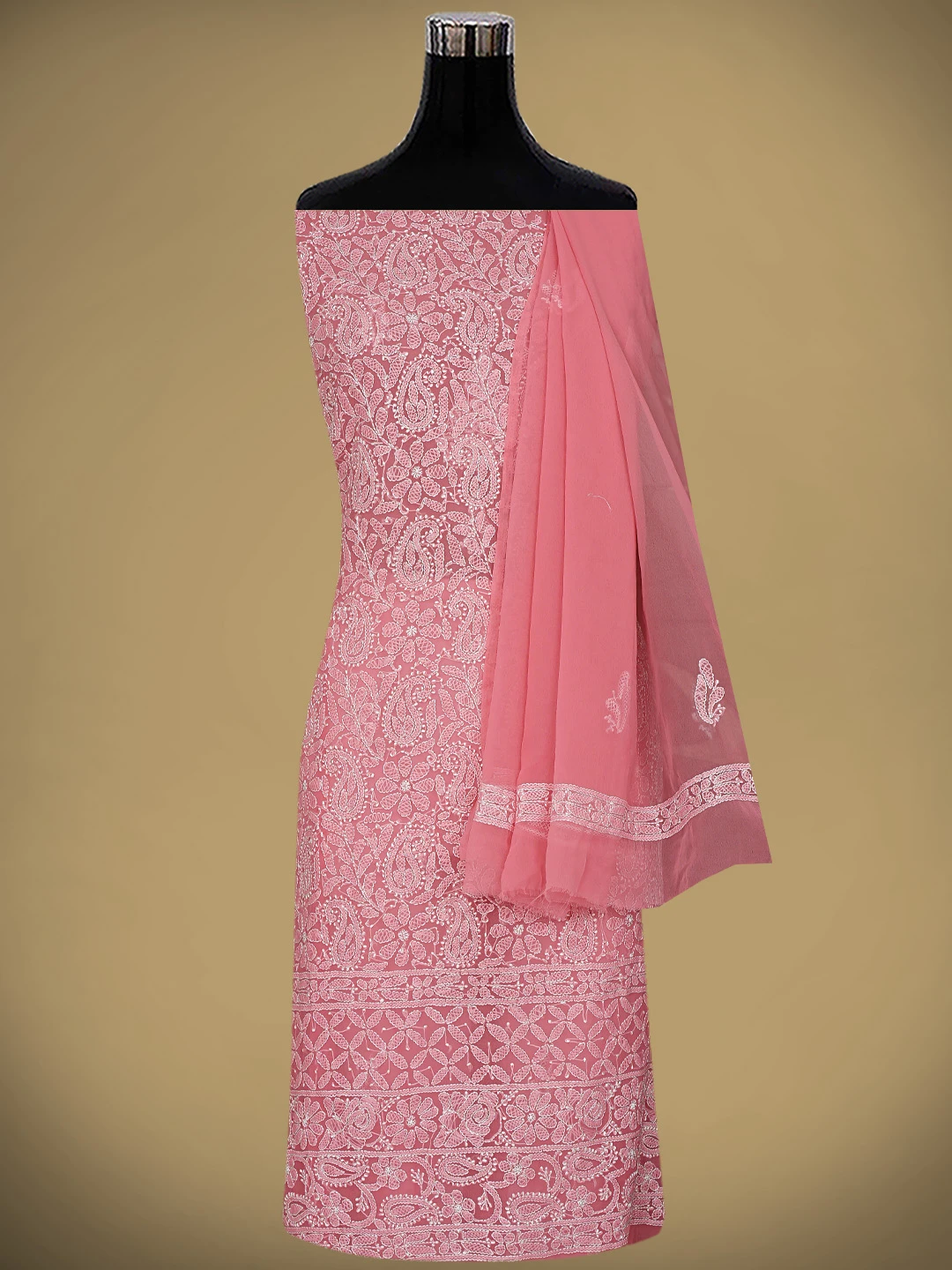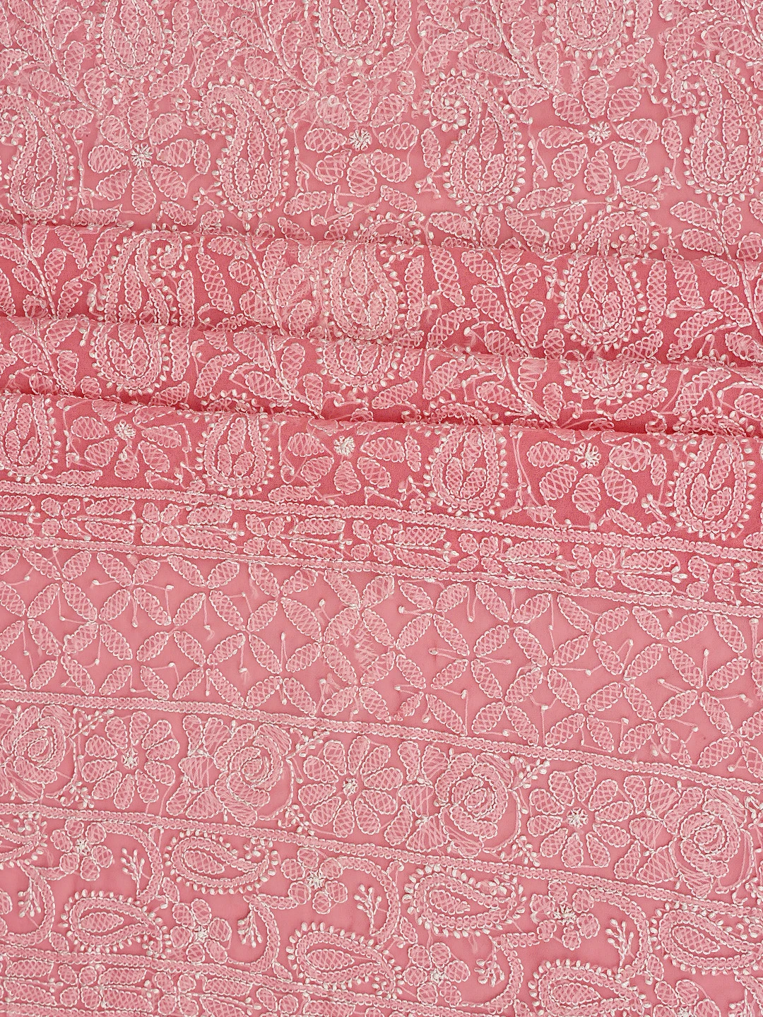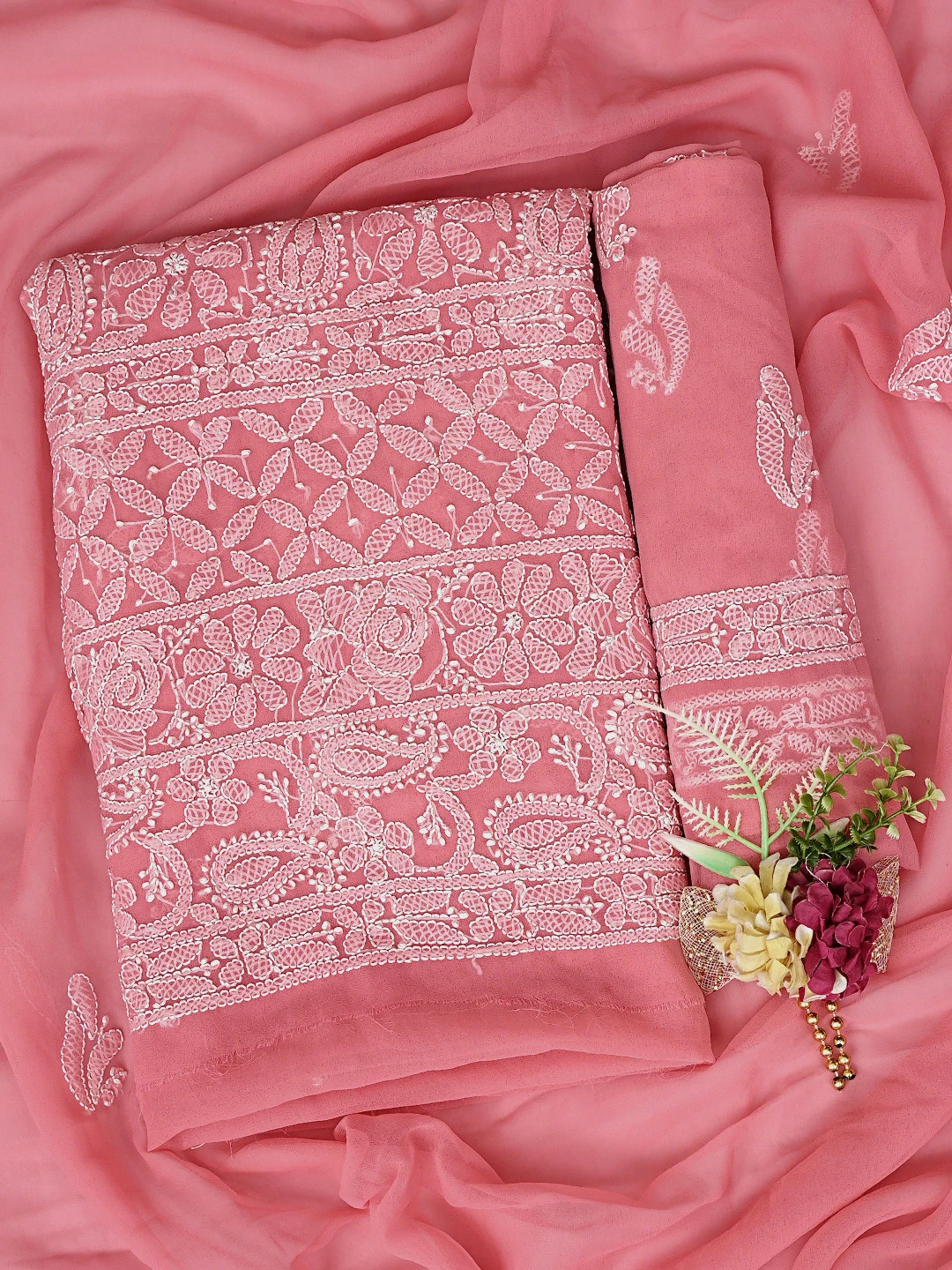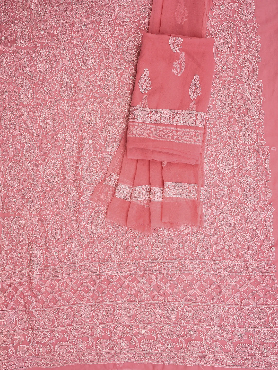 Ada Hand Embroidered Carrot Pink Georgette Lucknowi Chikankari Unstitched Suit Piece 01A878898