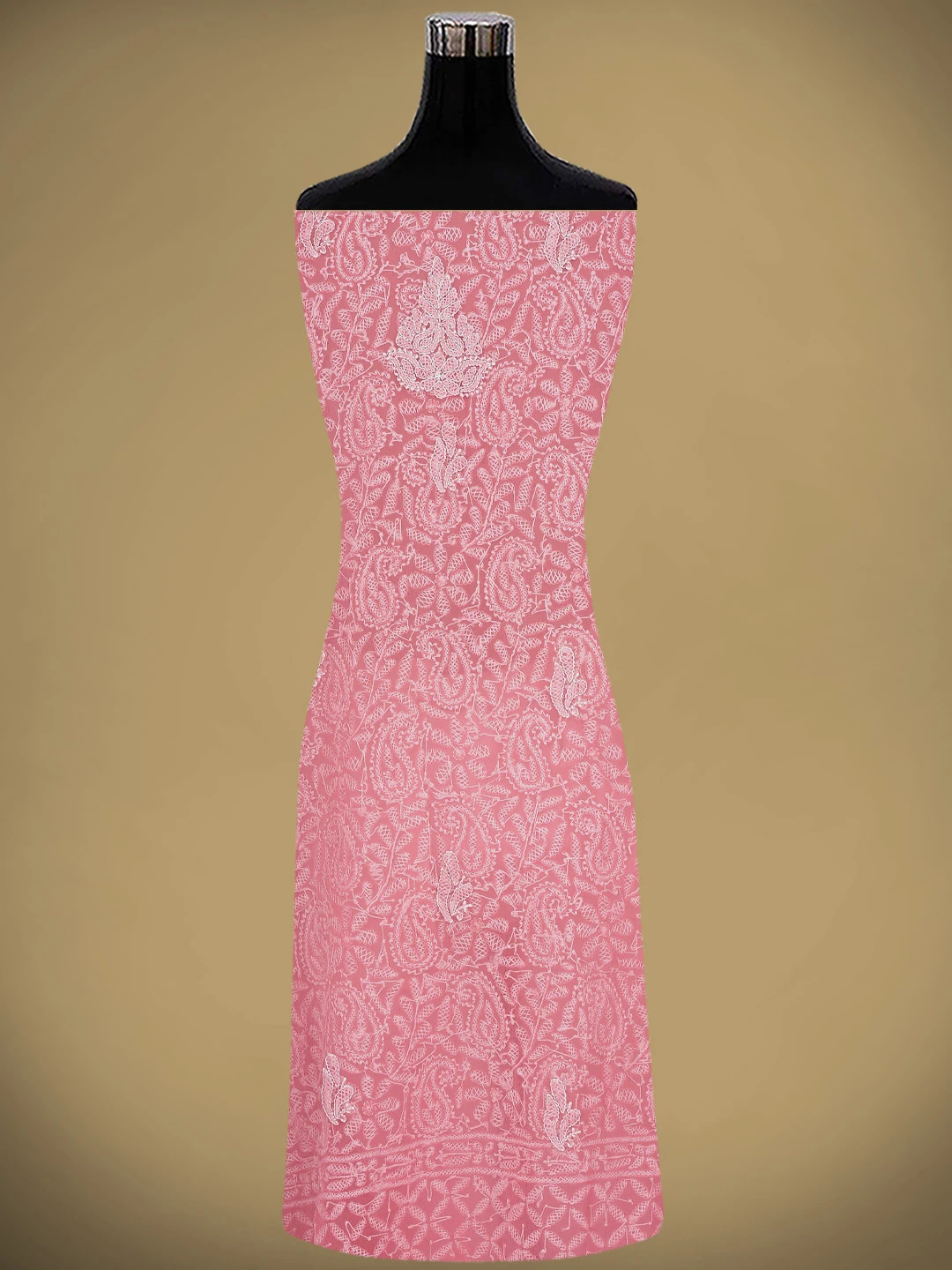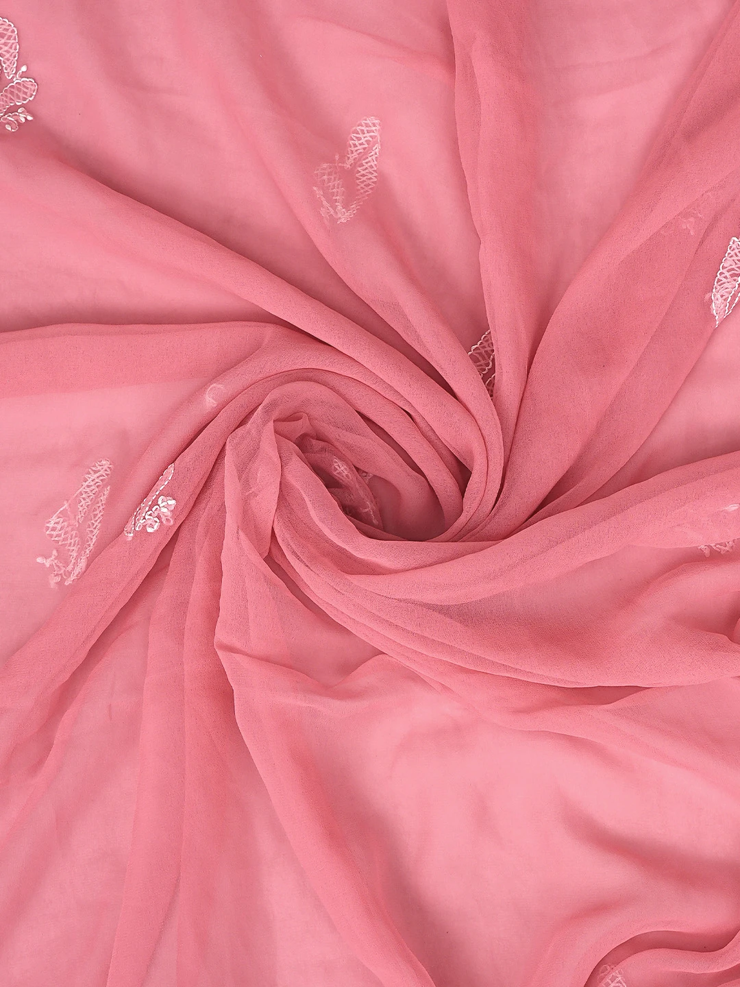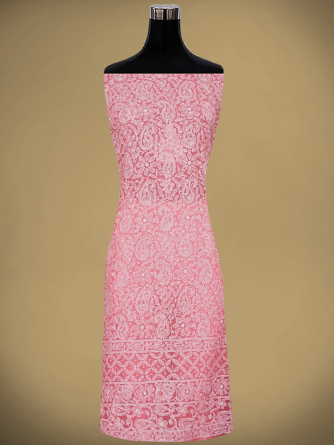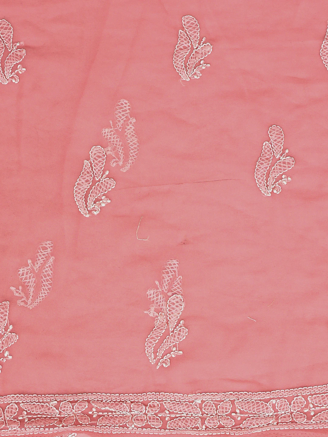 Ada Hand Embroidered Carrot Pink Georgette Lucknowi Chikankari Unstitched Suit Piece 01A878898