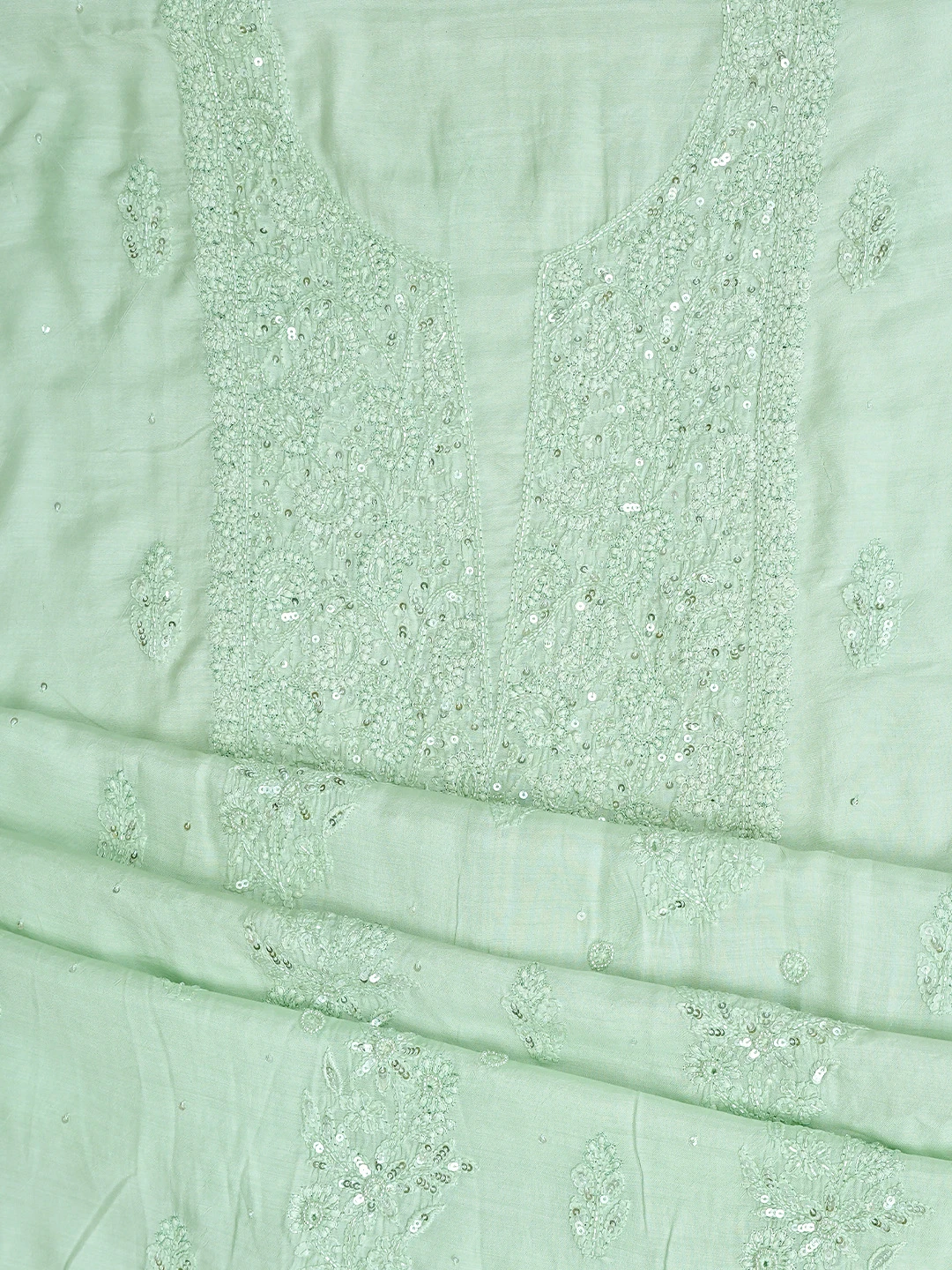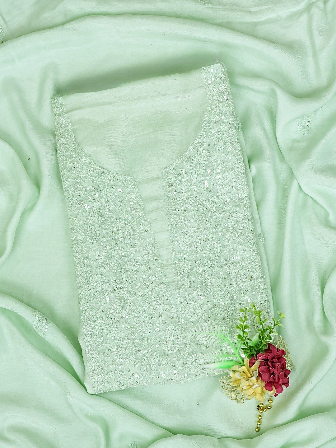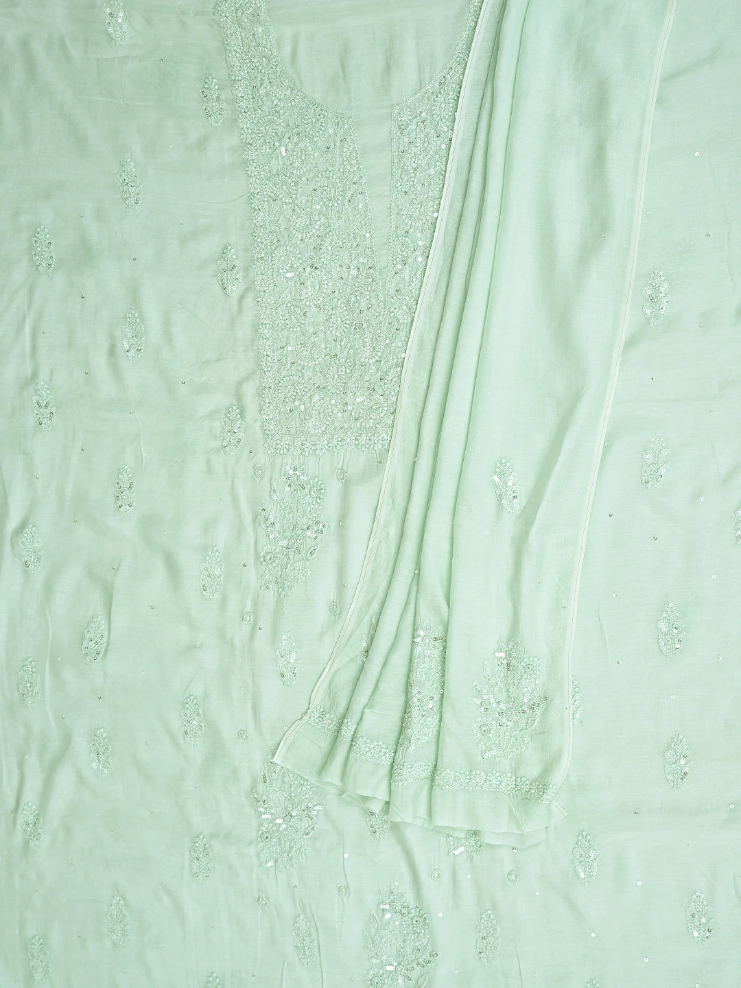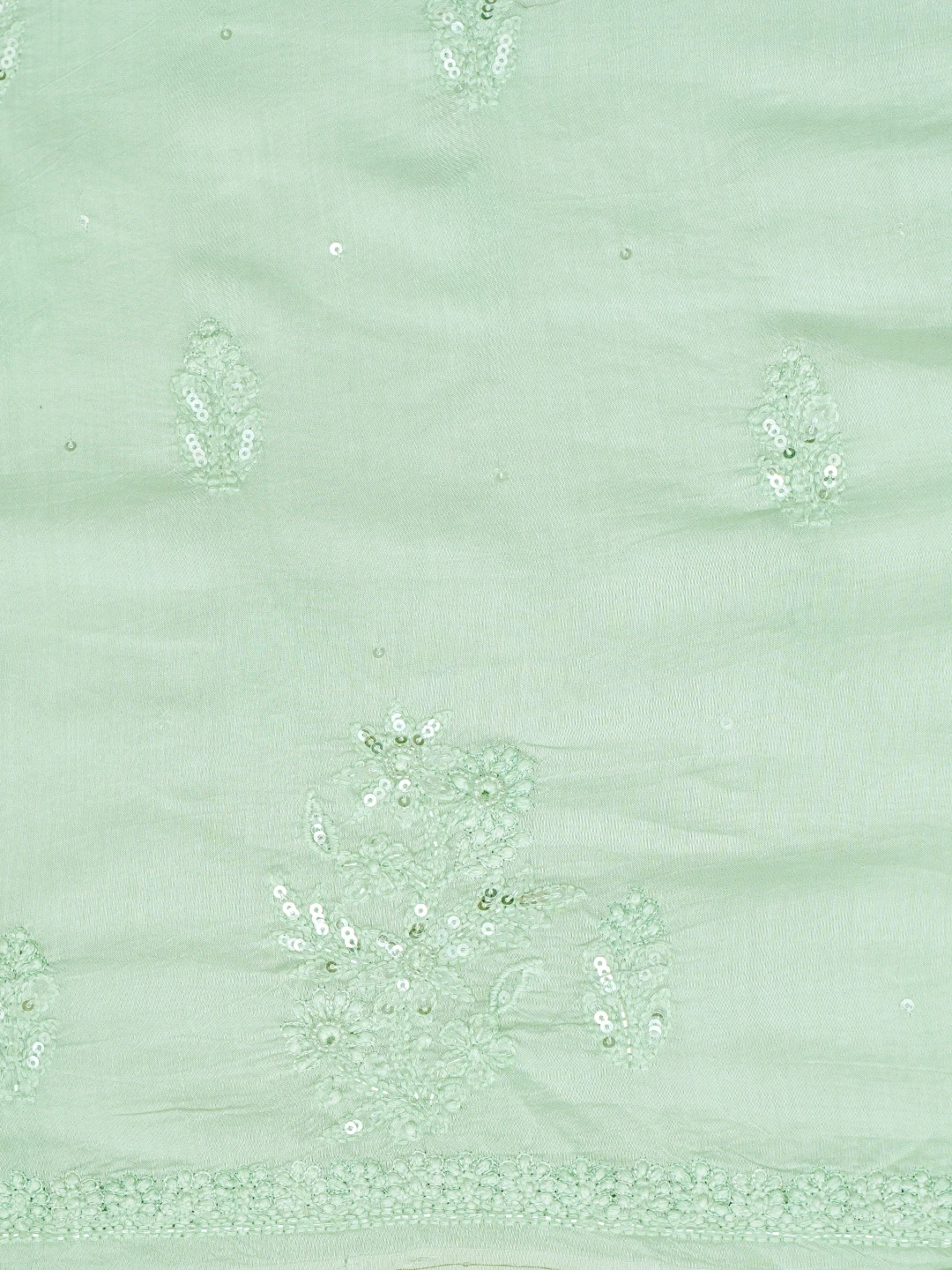 Ada Hand Embroidered Celedon Green Muslin Lucknowi Chikankari Unstitched Kurta Dupatta Set With Cutdana Work 01A643340