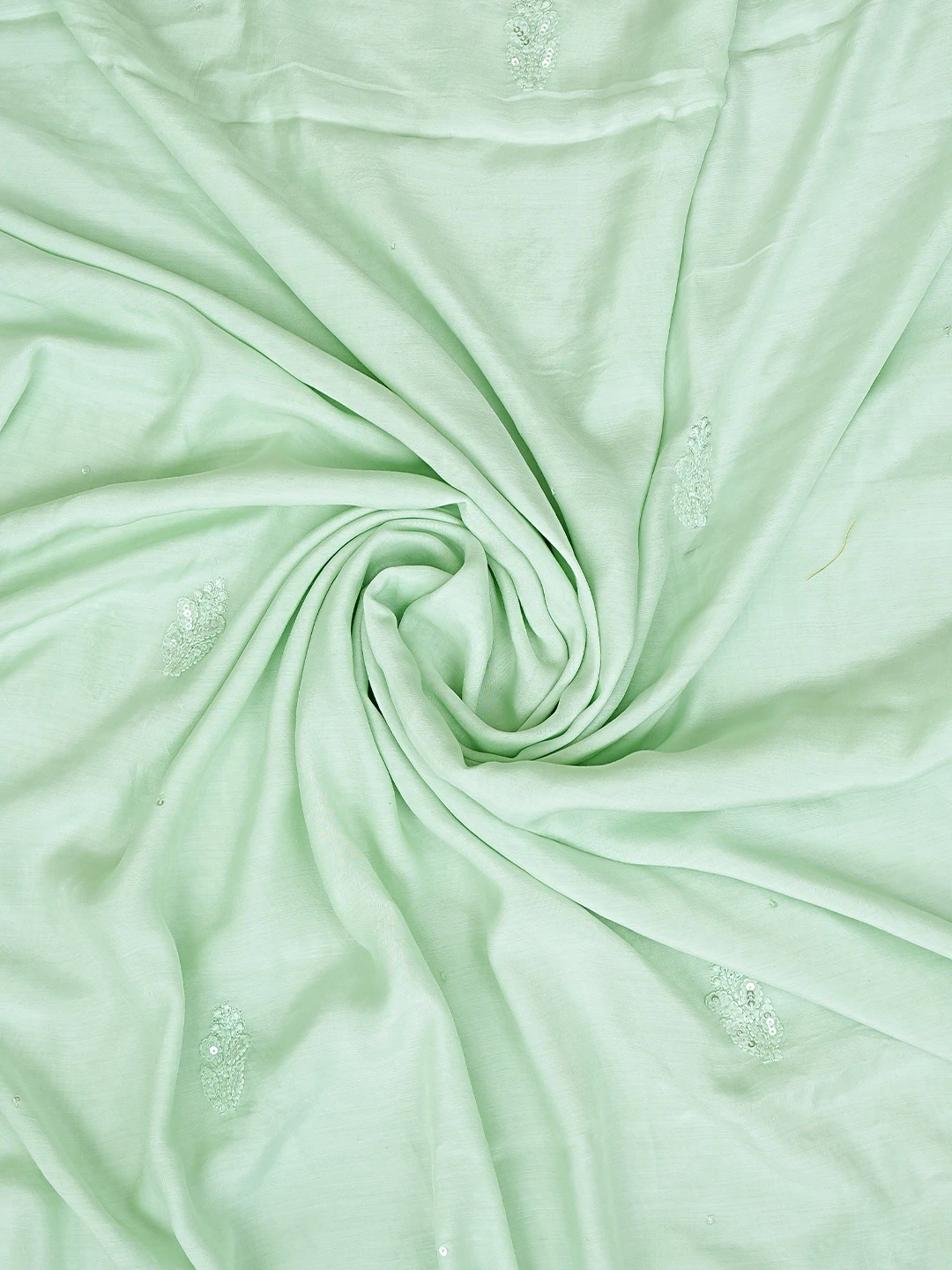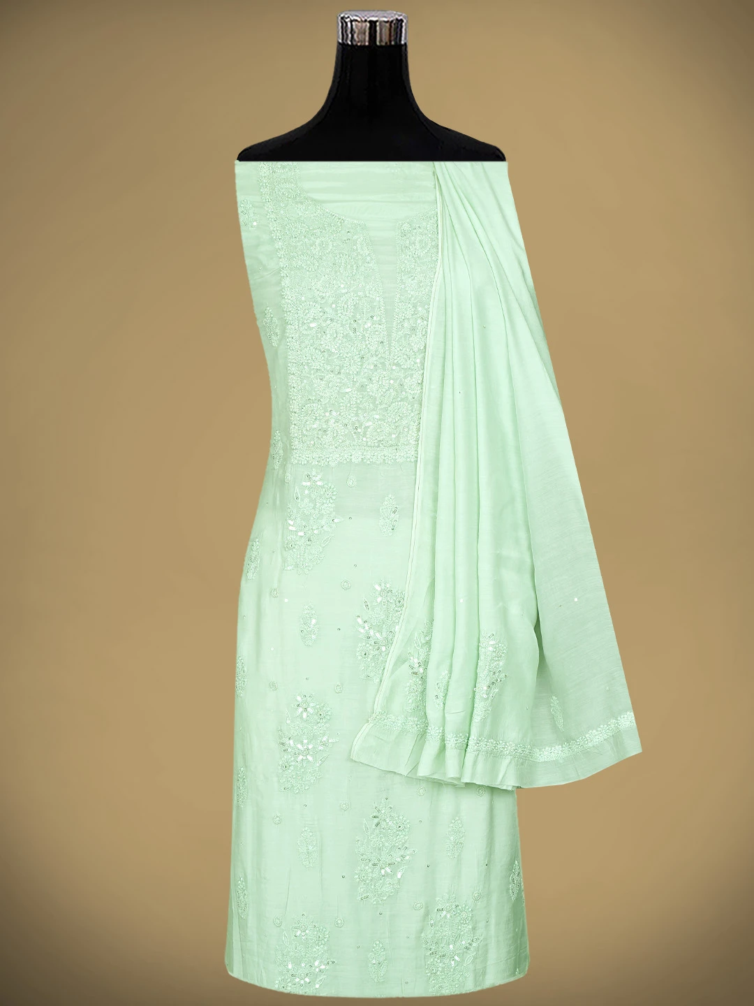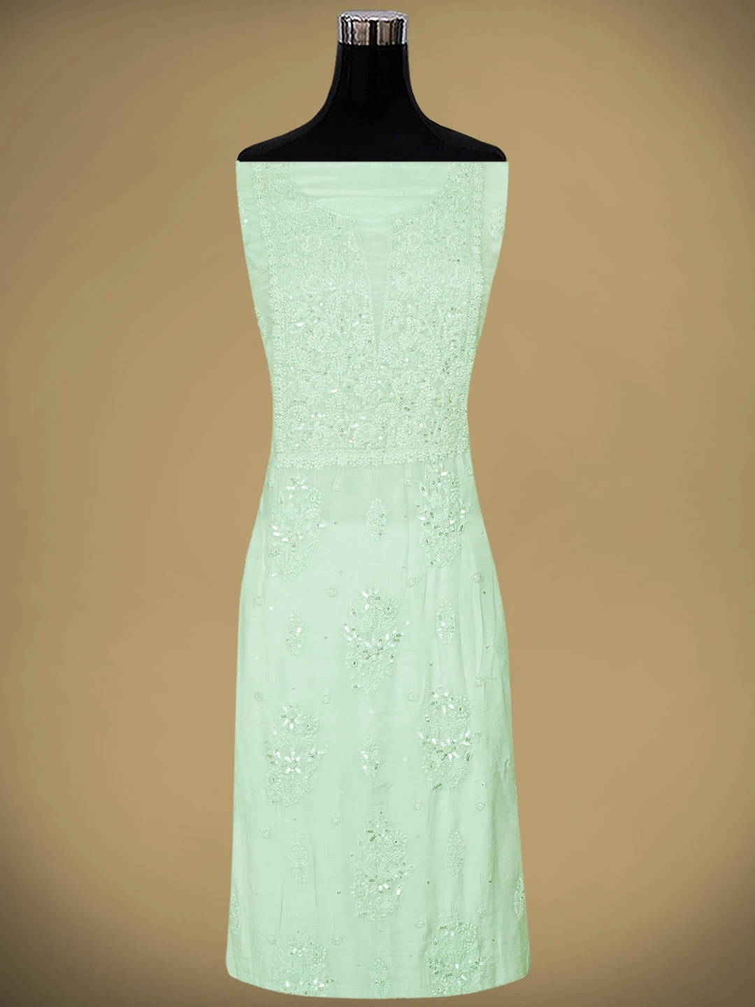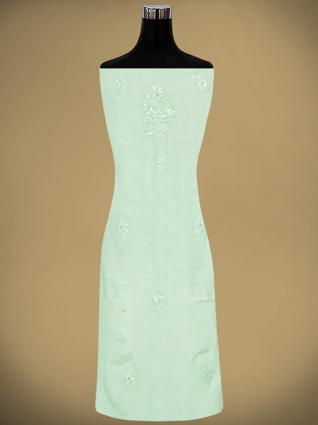 Ada Hand Embroidered Celedon Green Muslin Lucknowi Chikankari Unstitched Kurta Dupatta Set With Cutdana Work 01A643340